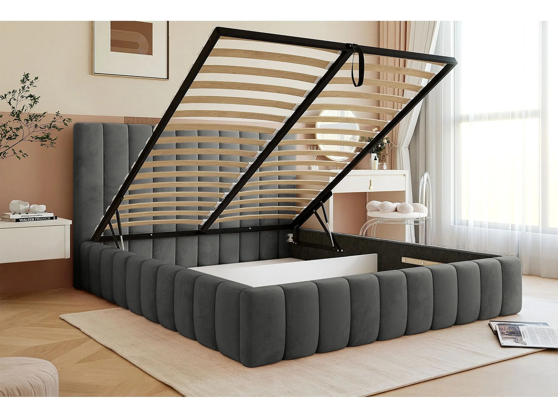 Lit coffre - 160x200 cm - en tissu velours gris - FIARRO