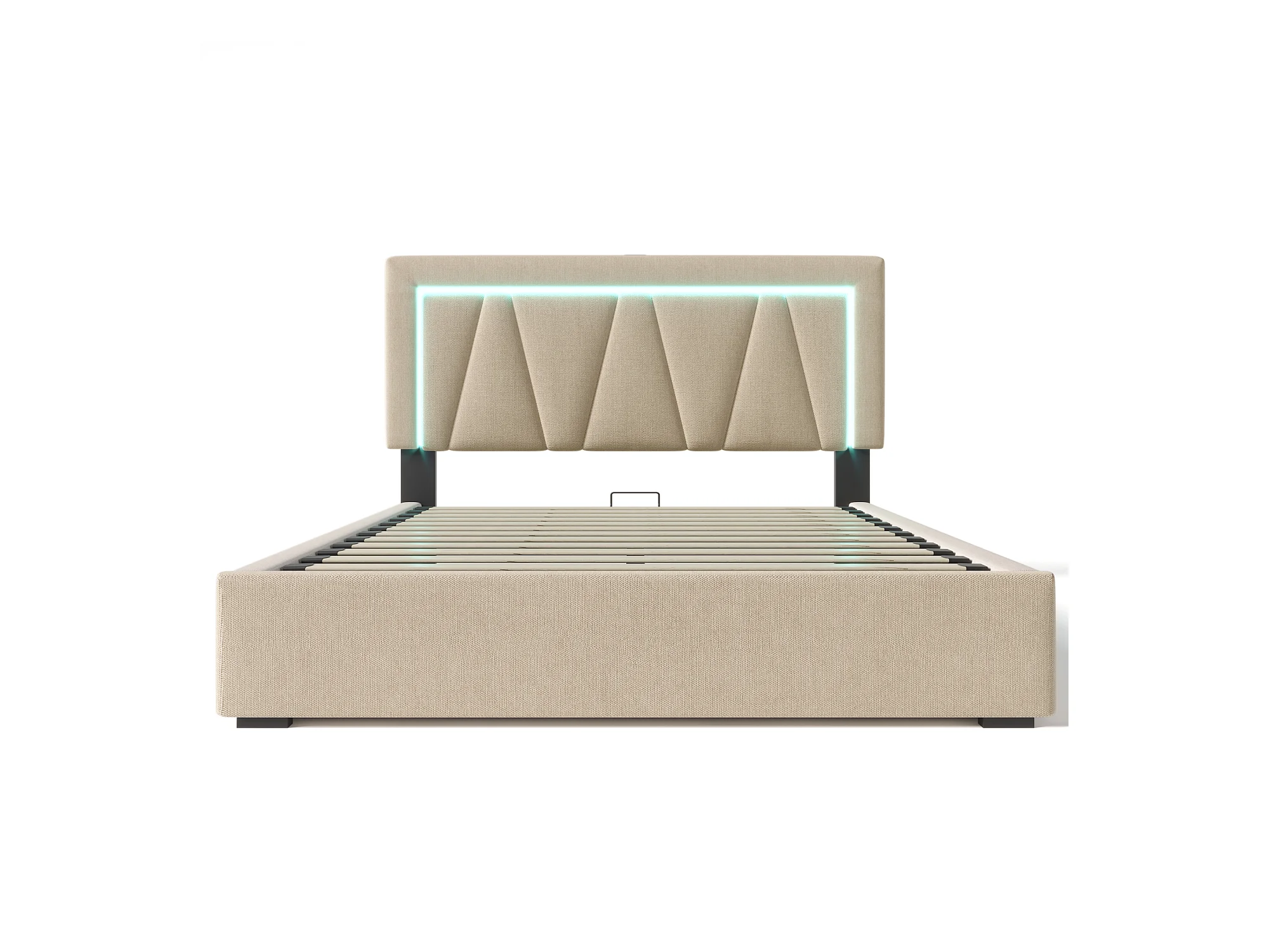 Lit coffre 160x200 cm - Lit adulte avec éclairage LED et recharge USB - lin beige - sans matelas