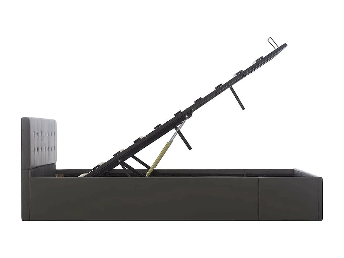 Lit coffre 160x200 simili cuir gris foncé capitonné Rundi