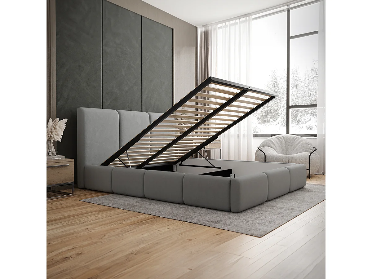 Lit coffre 160x200 sommier inclus Alto Gris