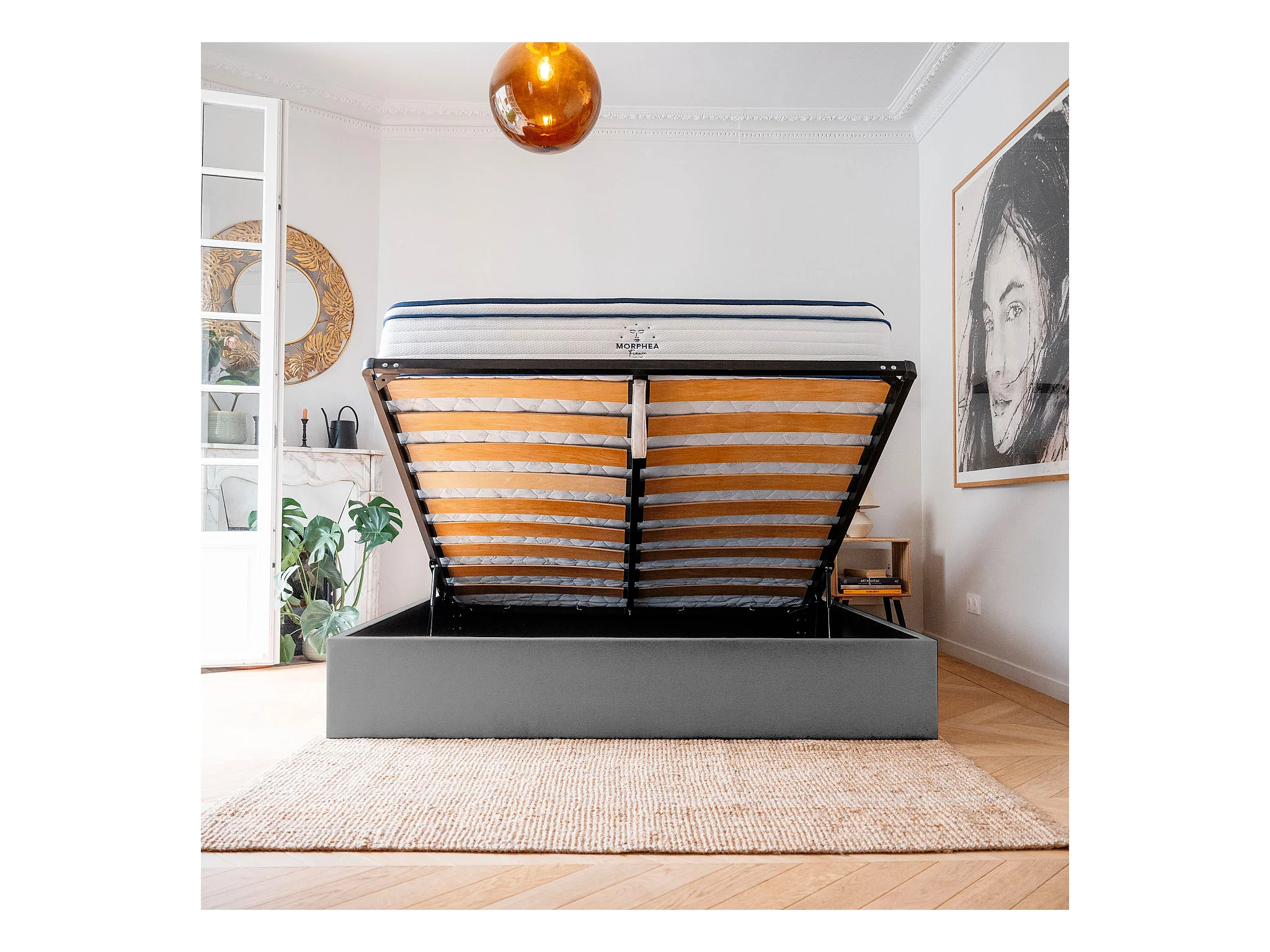 Lit coffre et tissu chiné anthracite 160x200 cm