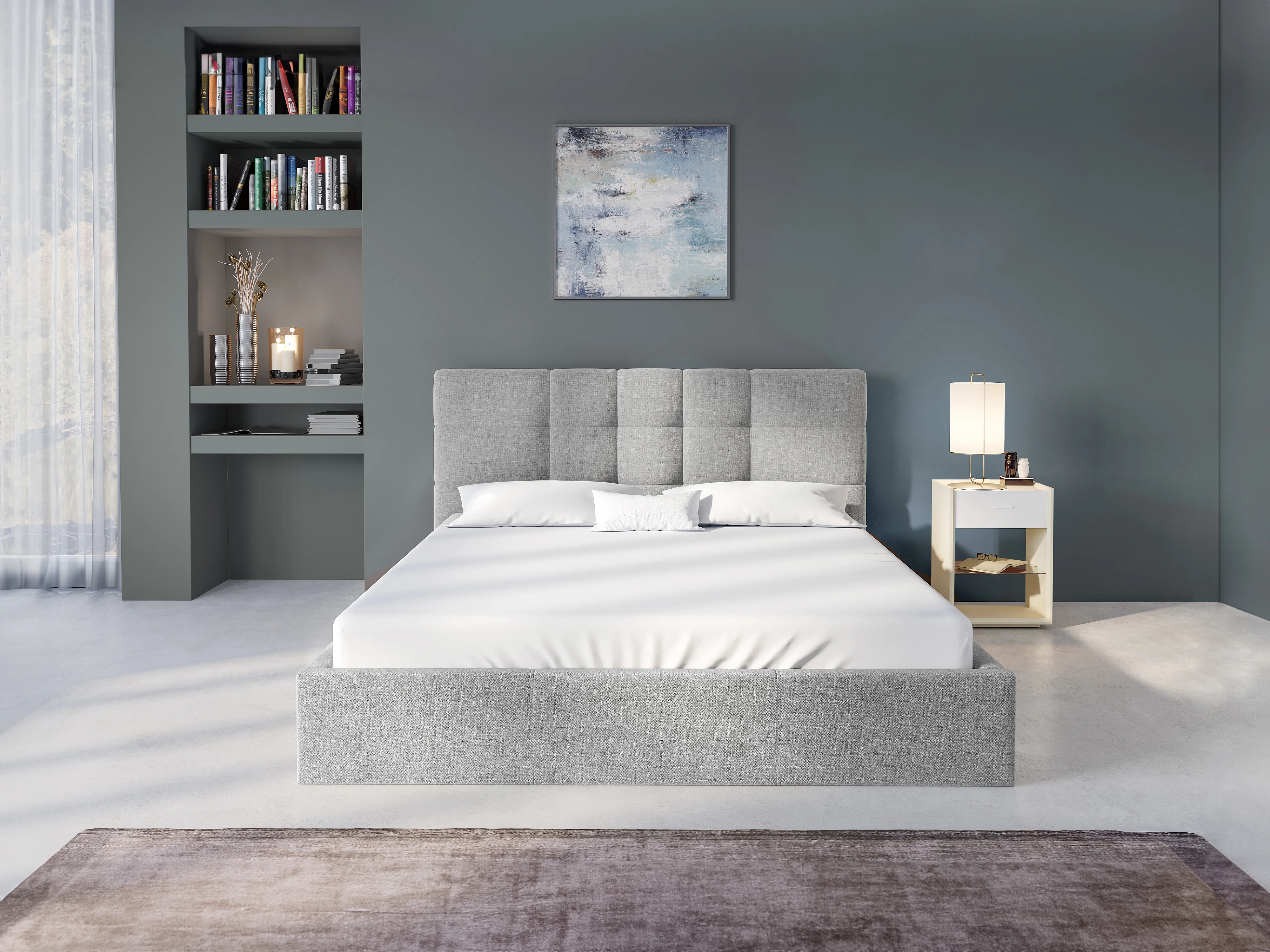 Lit coffre 180 x 200 cm - Tissu - Gris + Matelas - ELIAVA de Pascal Morabito