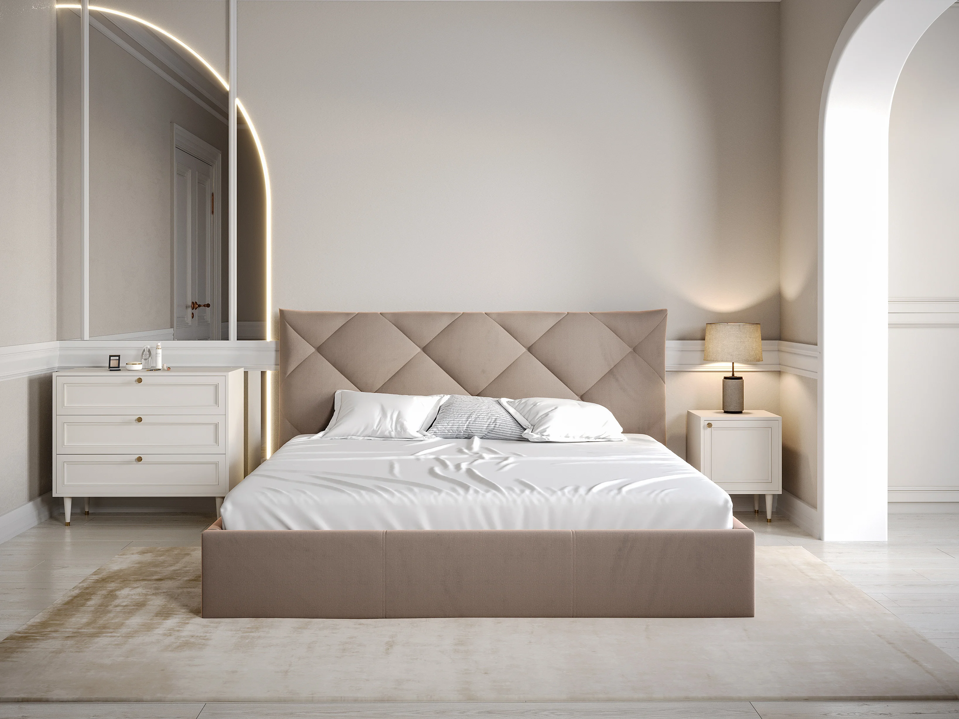 Lit coffre 180 x 200 cm - Velours - Beige - STARI de Pascal Morabito