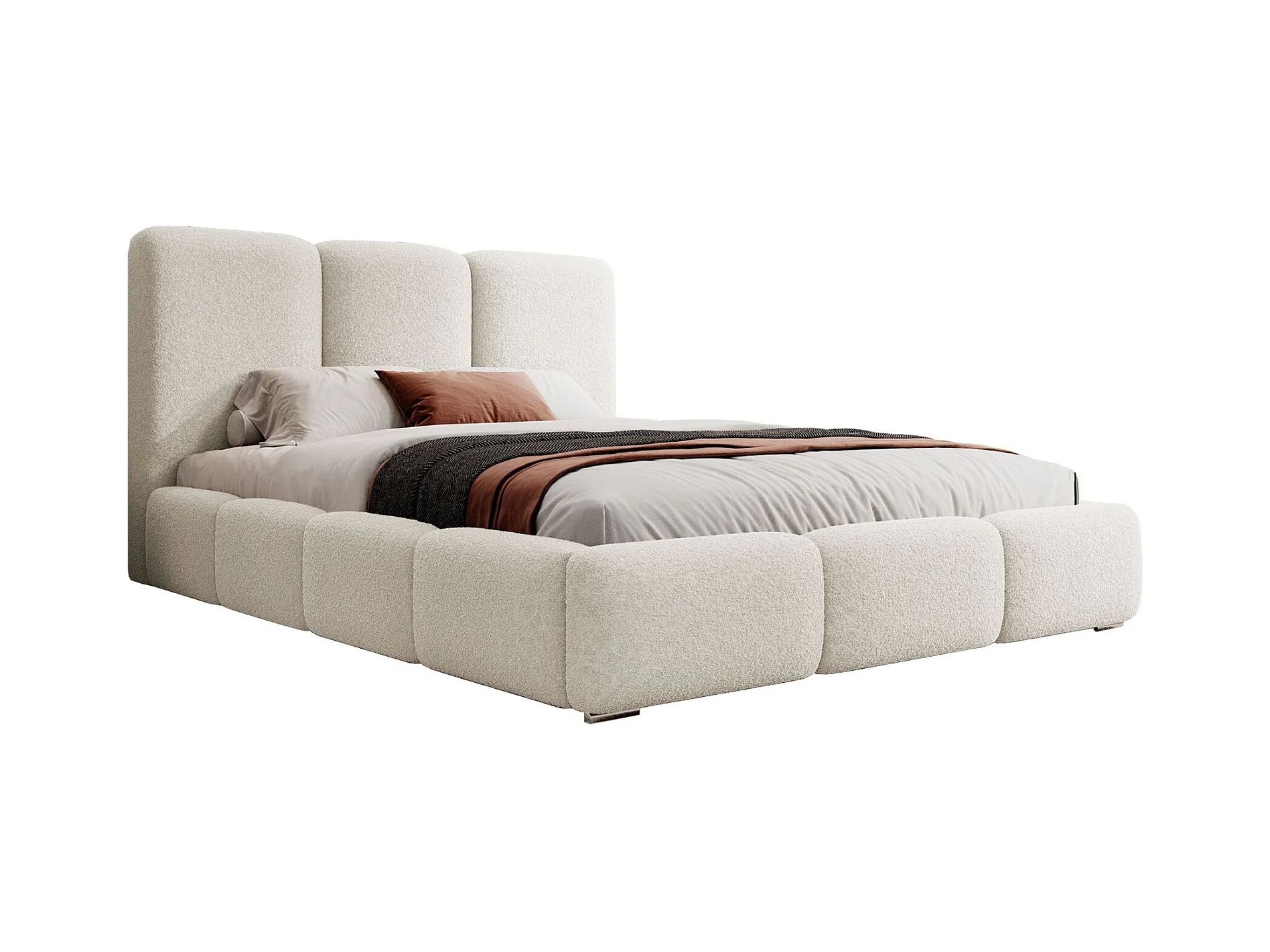 Lit coffre - 180x200 cm - en bouclette écru jesche - BAURO