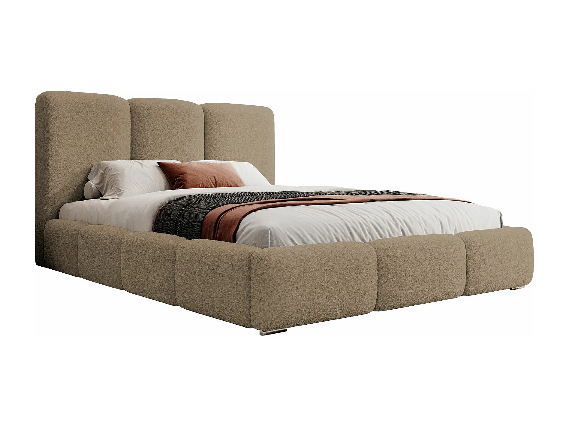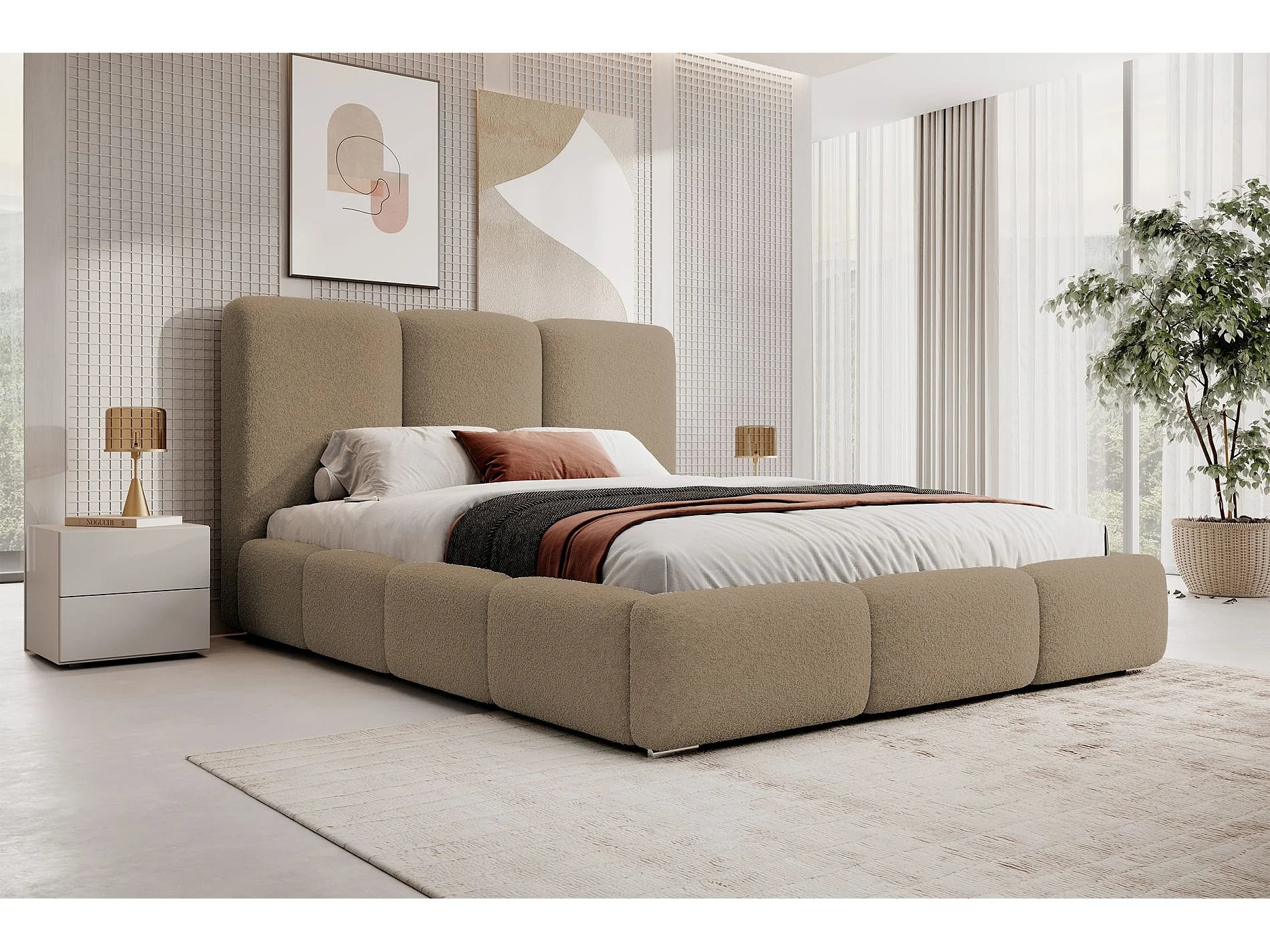 Lit coffre - 180x200 cm - en bouclette marron clair - BAURO