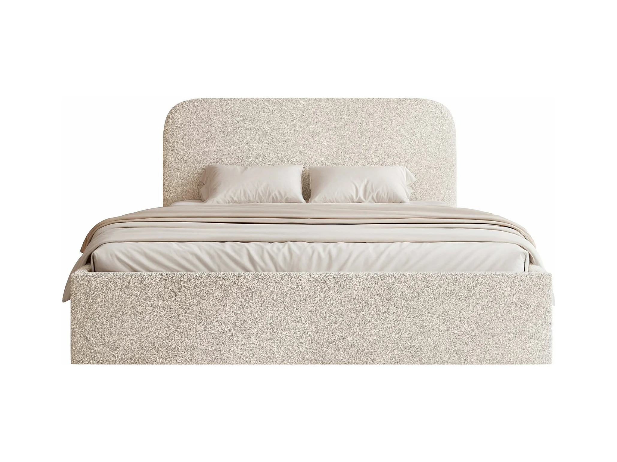 Lit coffre - 180x200 cm - en tissu bouclette crème - SONVIVO