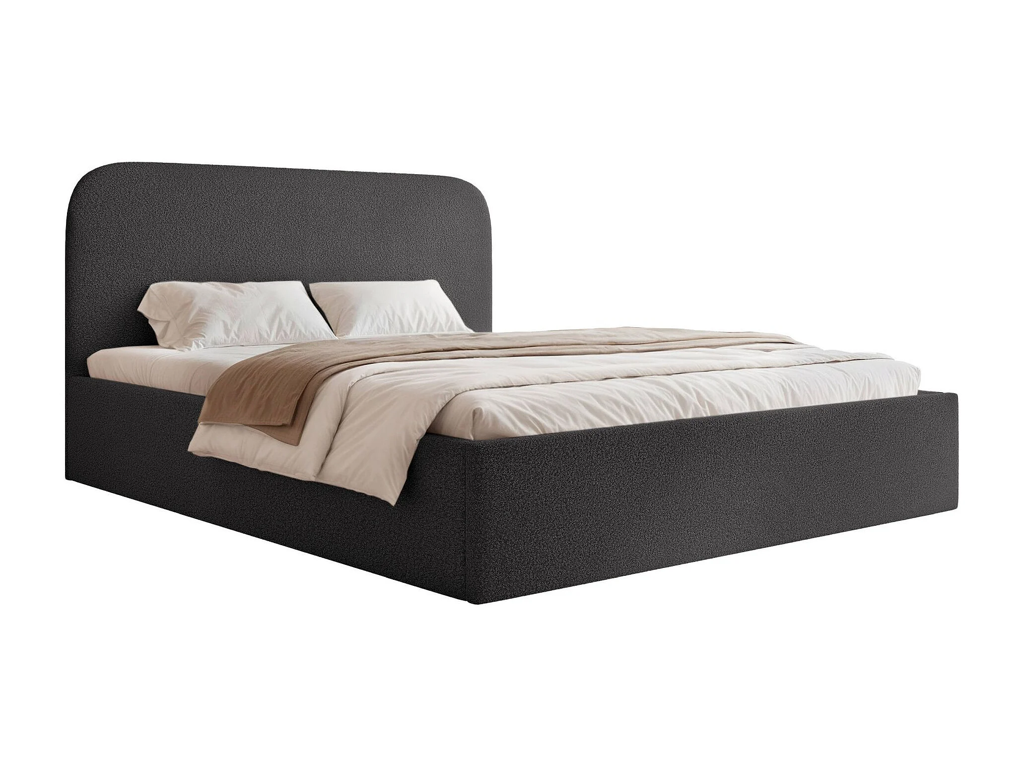 Lit coffre - 180x200 cm - en tissu bouclette graphite - SONVIVO