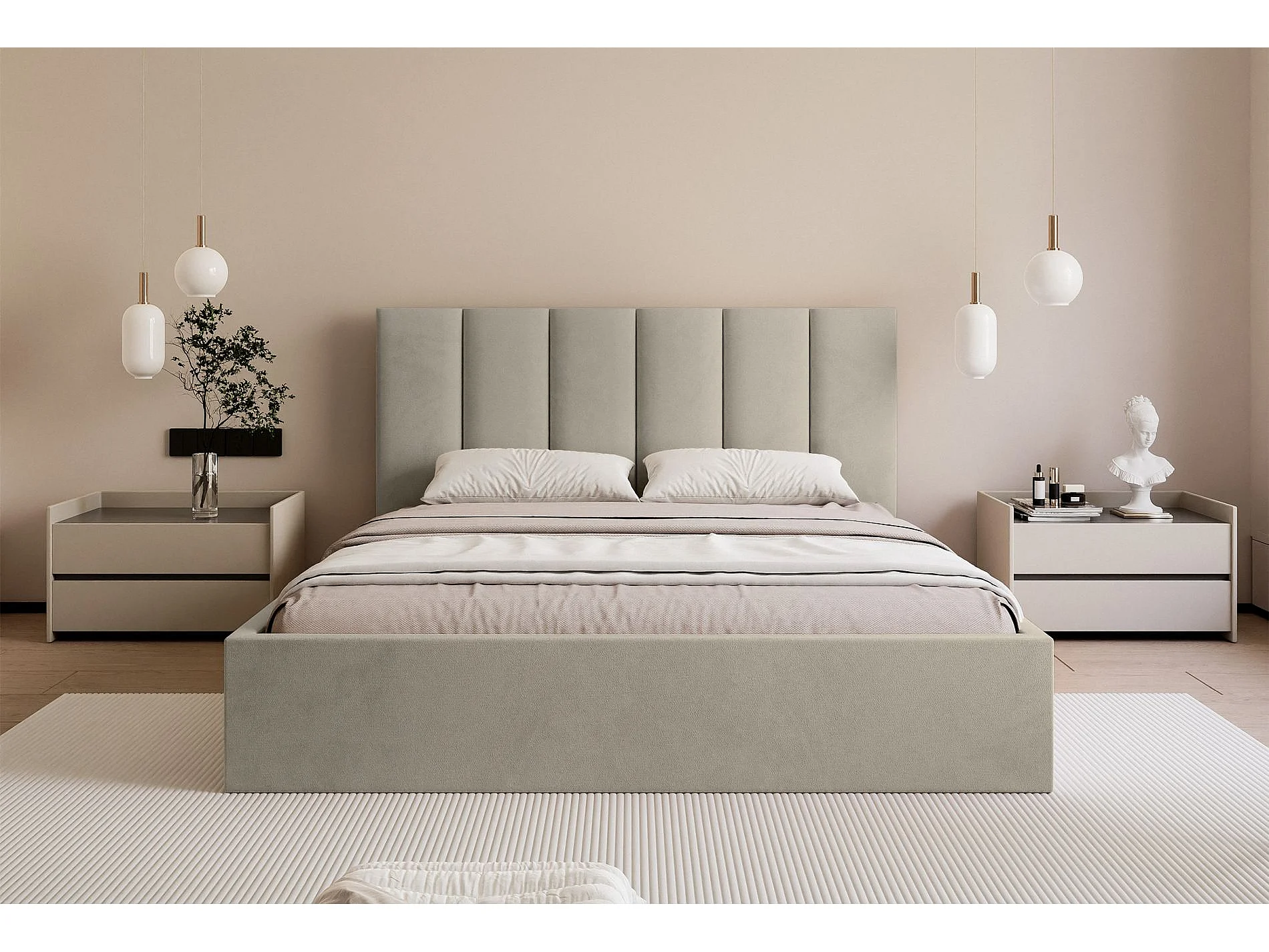 Lit coffre - 180x200 cm - en tissu velours beige clair - MASEGO