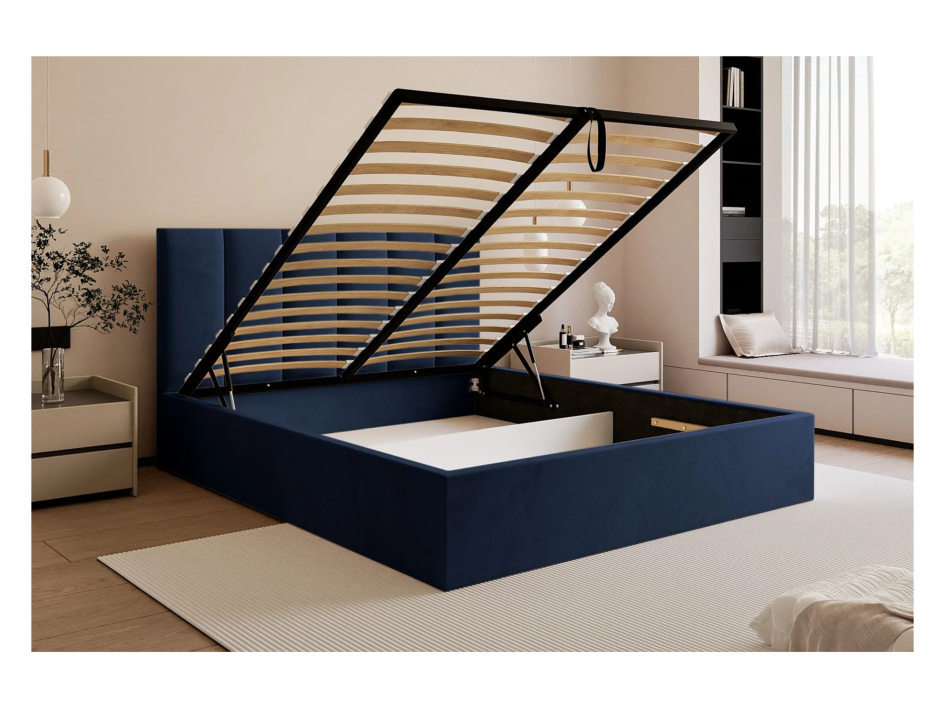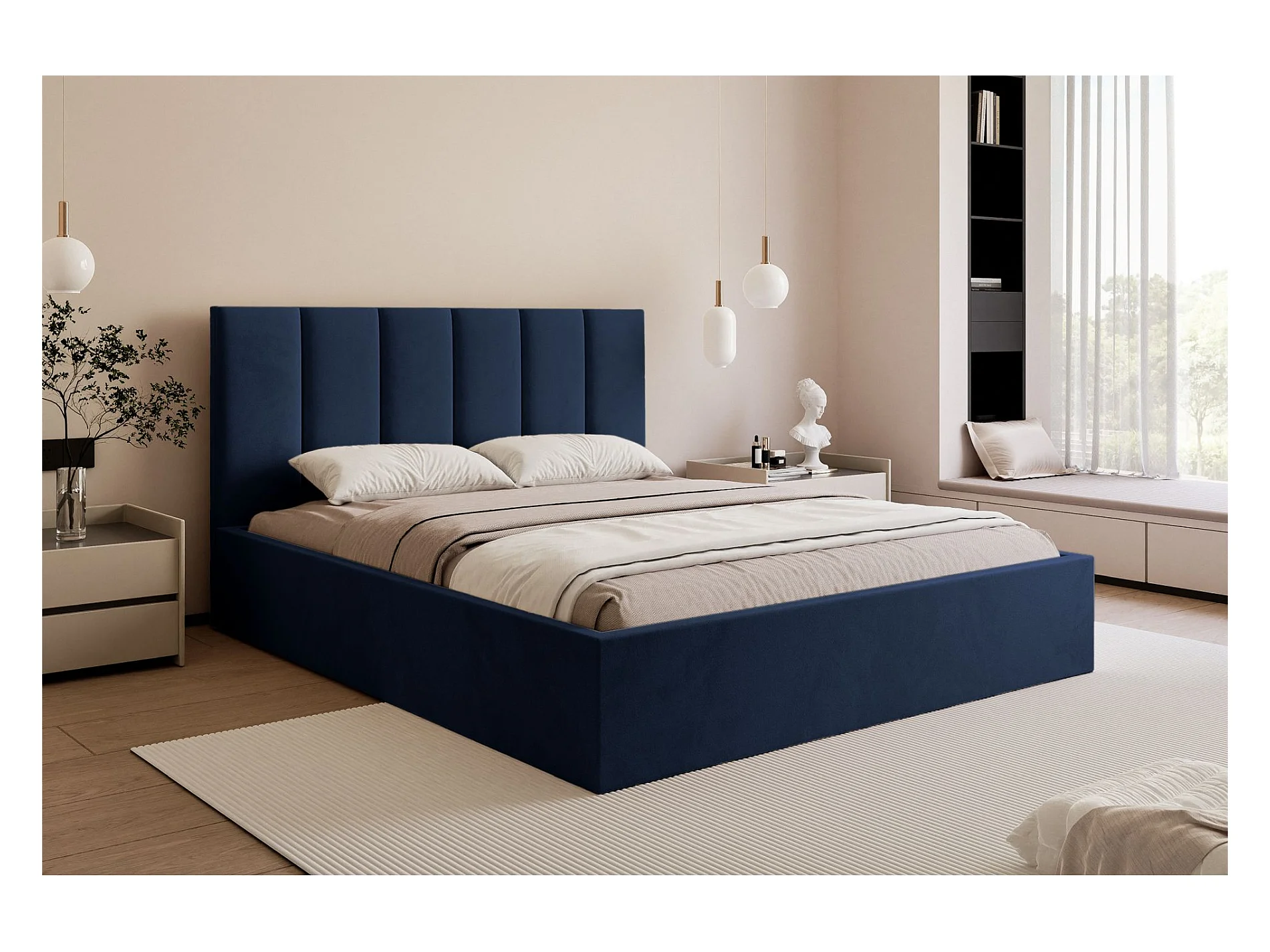 Lit coffre - 180x200 cm - en tissu velours marine - MASEGO