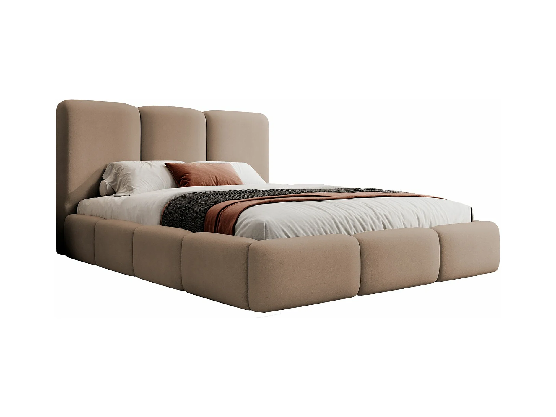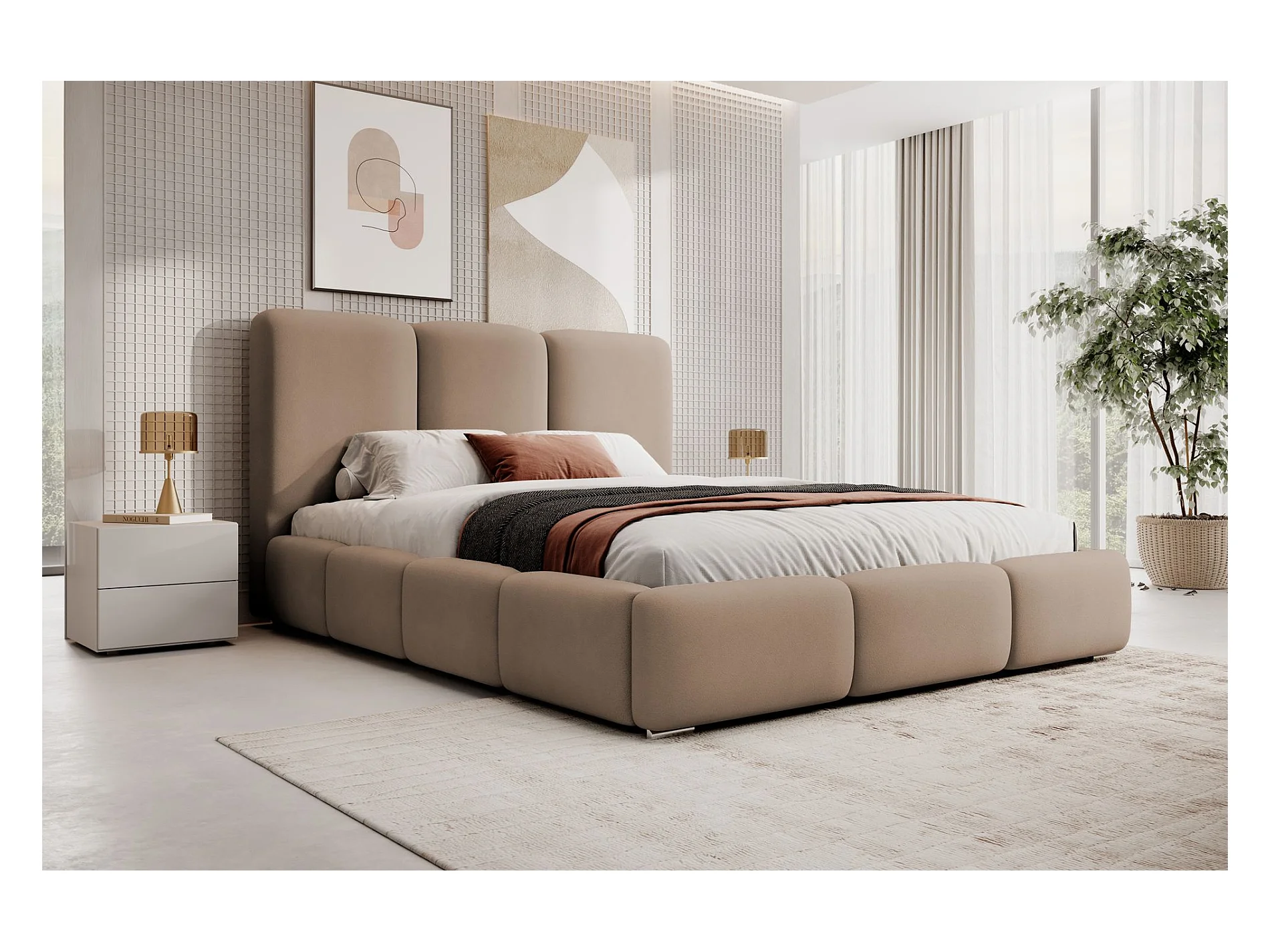 Lit coffre - 180x200 cm - en tissu velours marron clair - BAURO