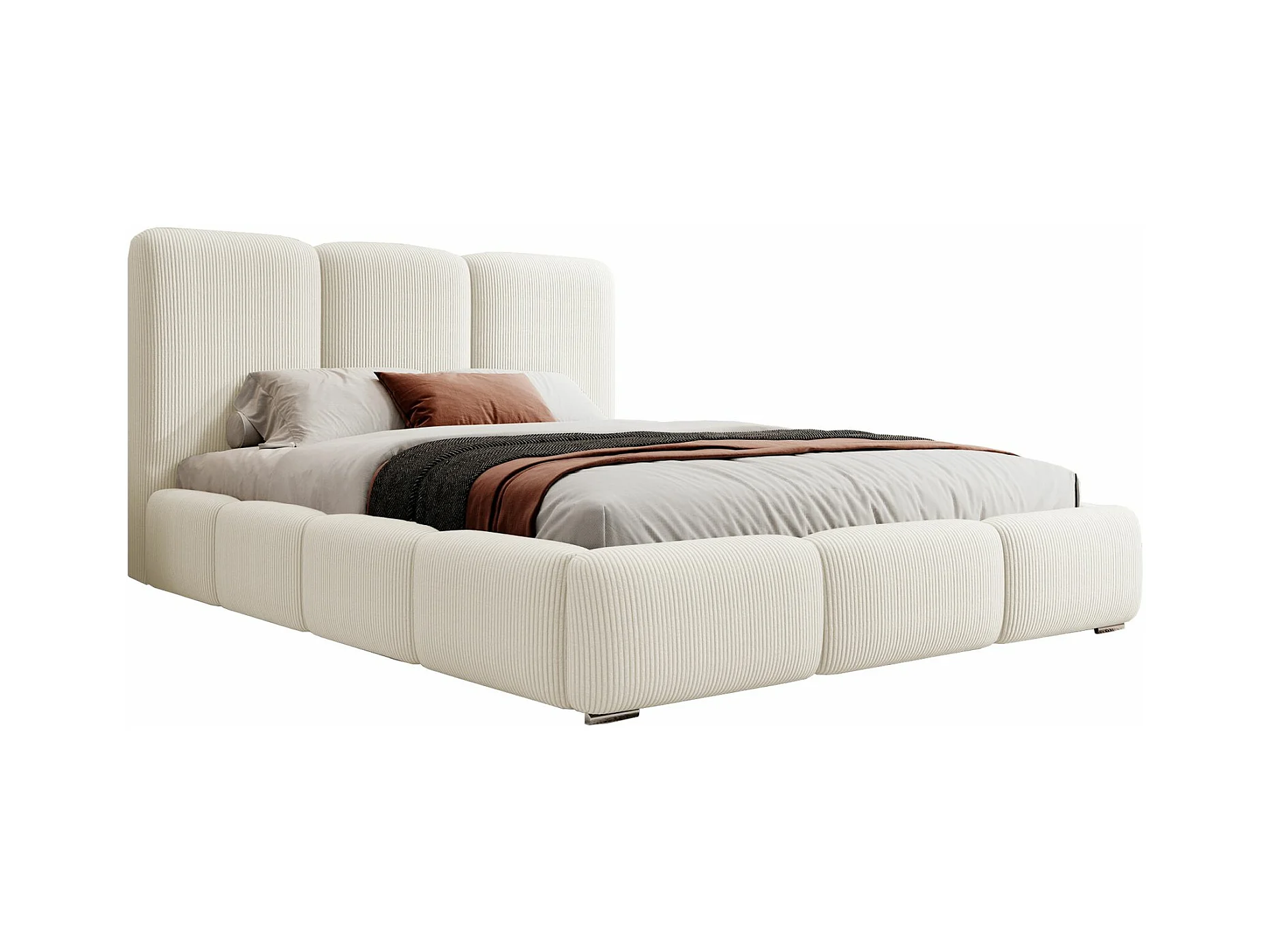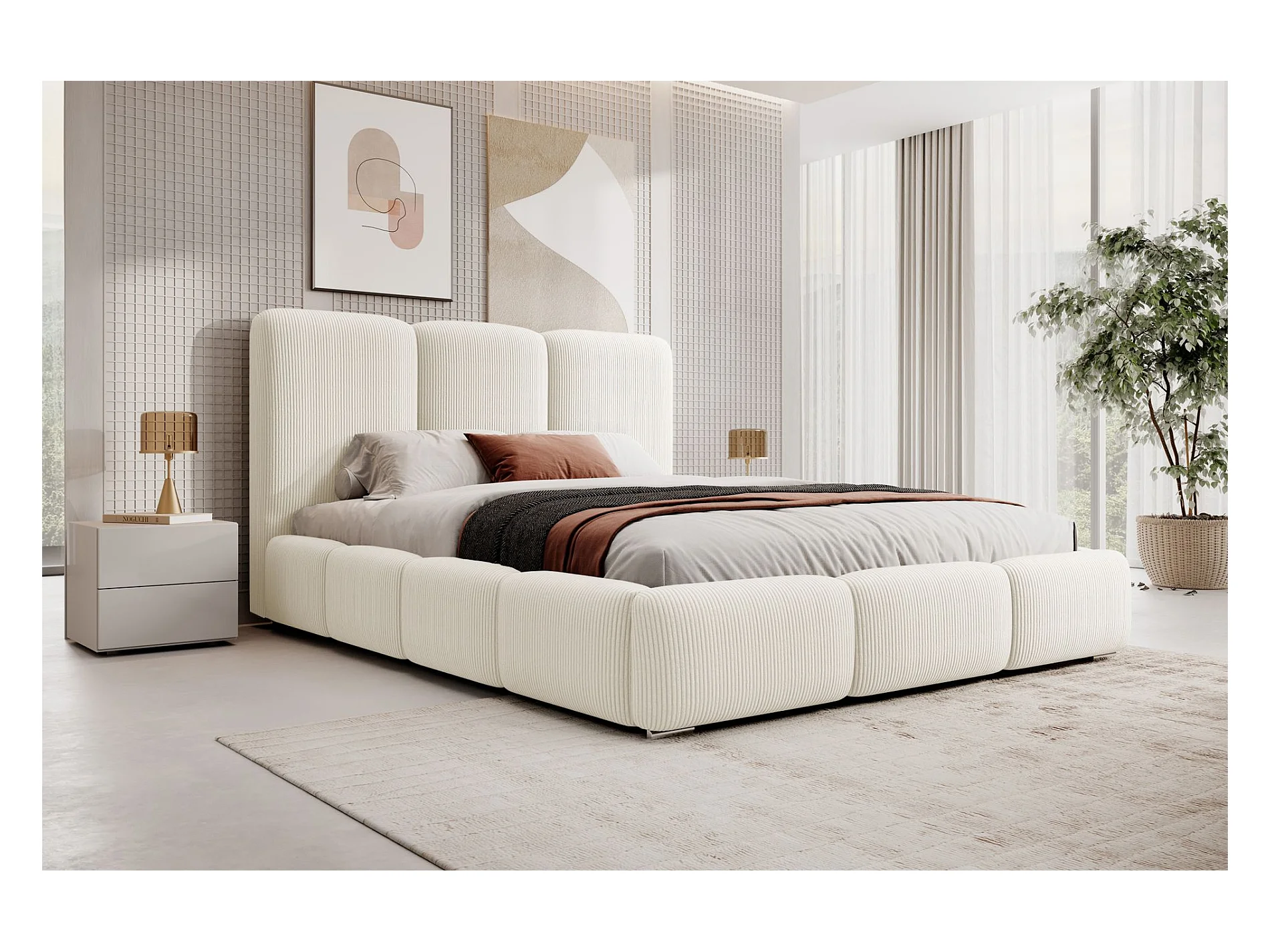Lit coffre - 180x200 cm - en velours côtelé créme - BAURO