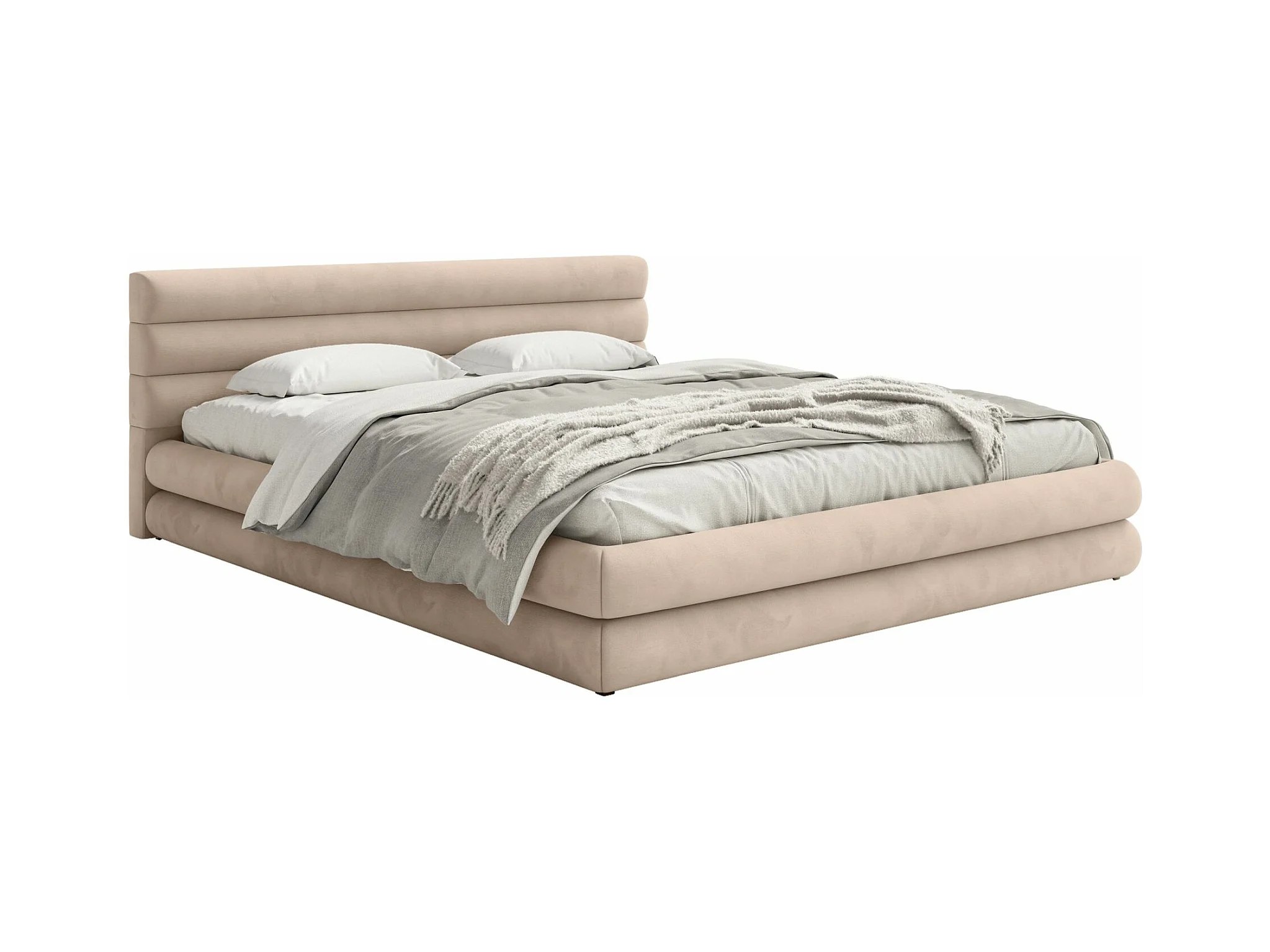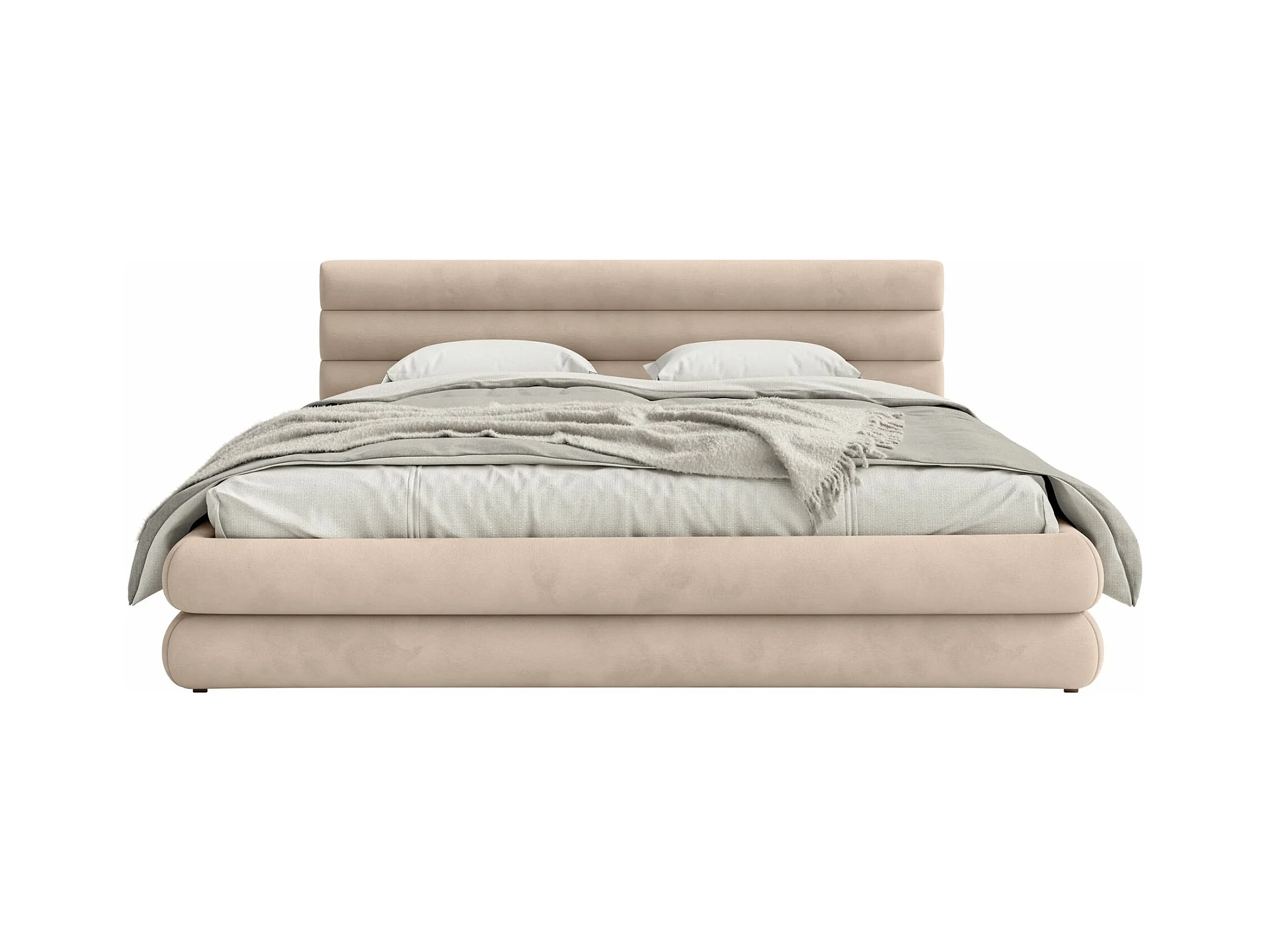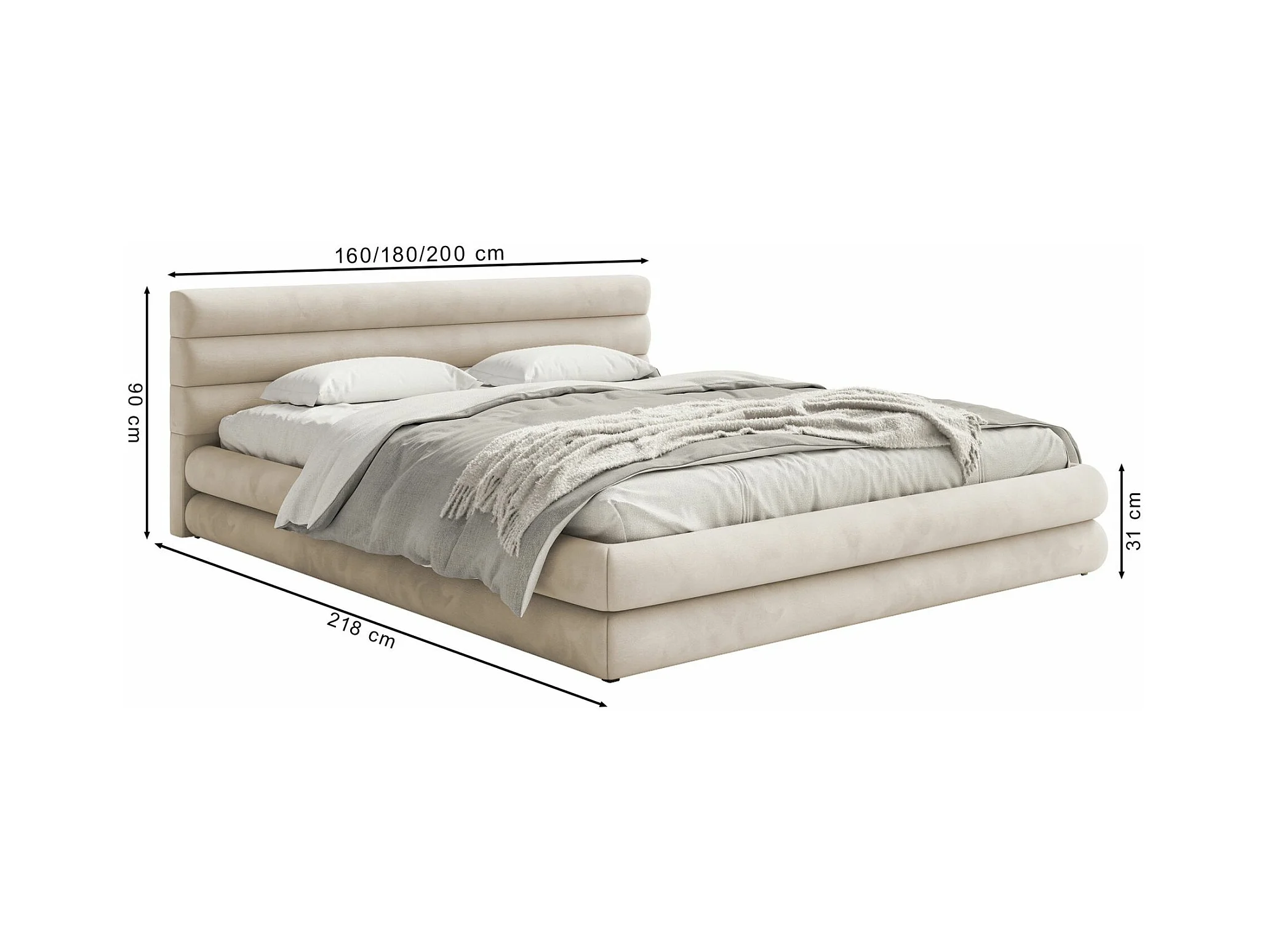 Lit coffre - 180x200 cm - en velours déperlant beige - ALEGRE
