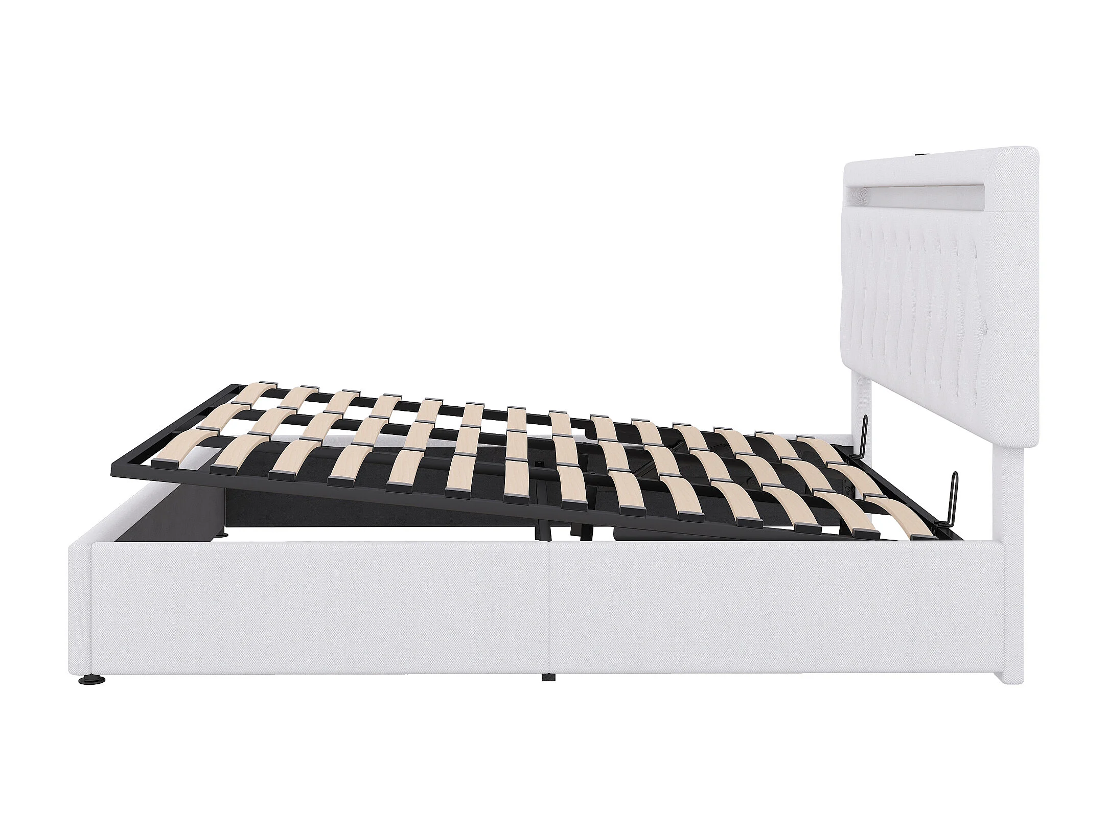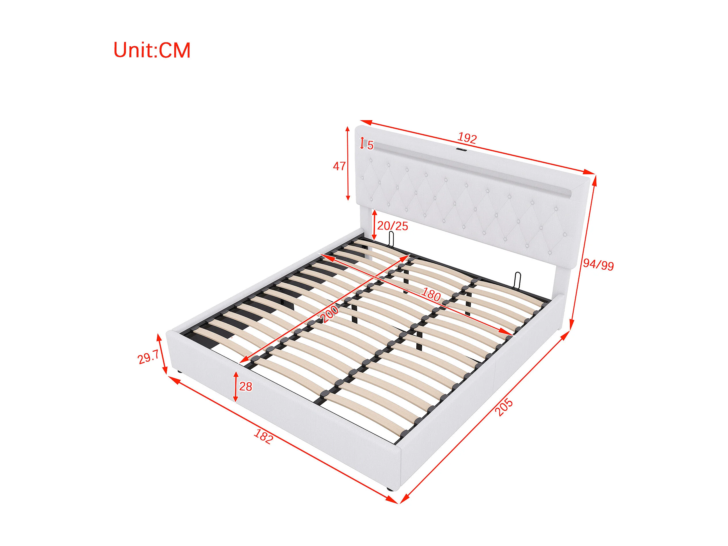 Lit coffre 180x200 cm - Lin blanc - Lit double avec lumière LED et chargement USB - san fond