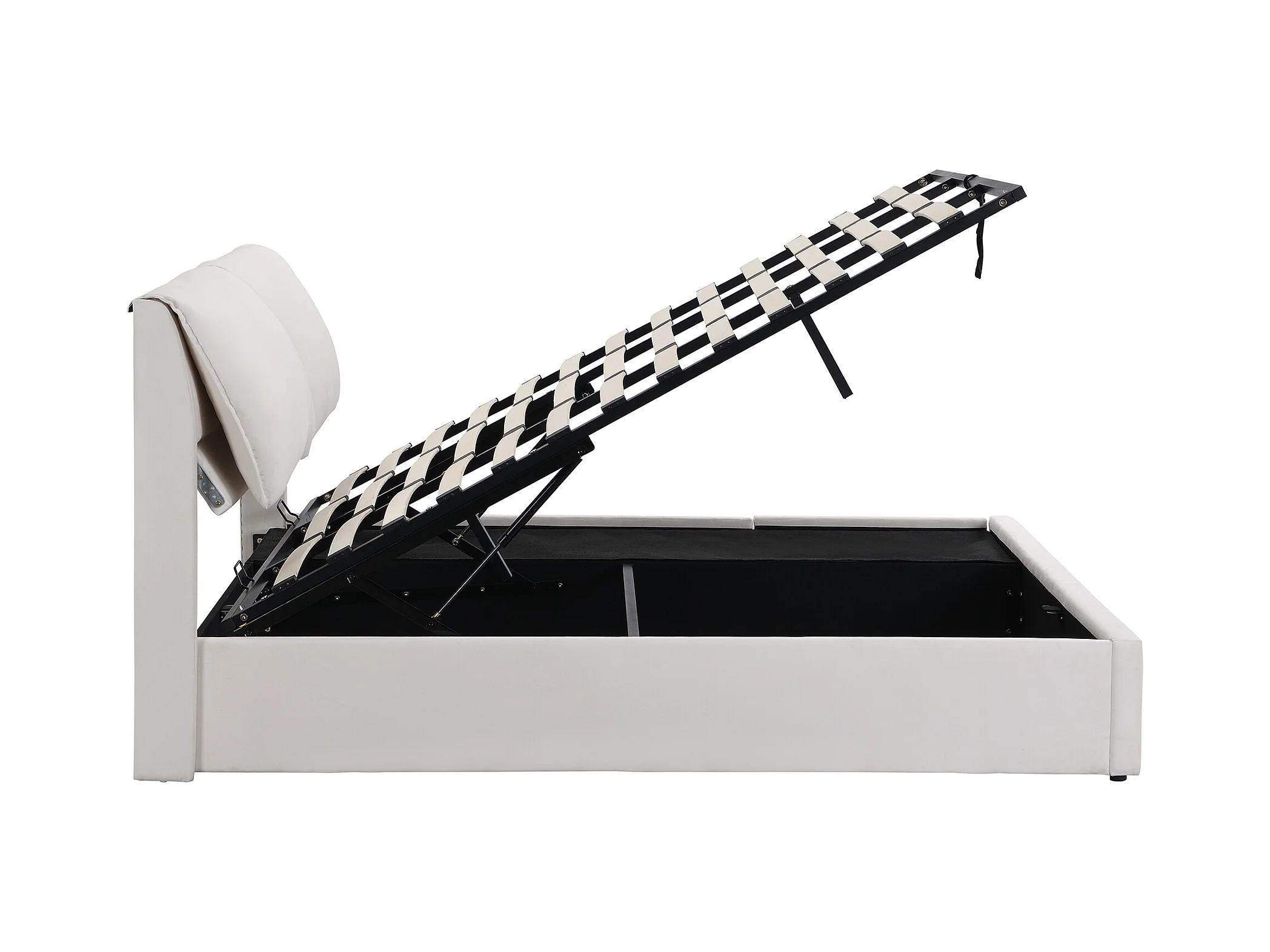 Lit coffre 180x200 cm - Lit adulte avec 3 tiroirs, coffres de rangement et tête de lit - Velours - beige-blanc