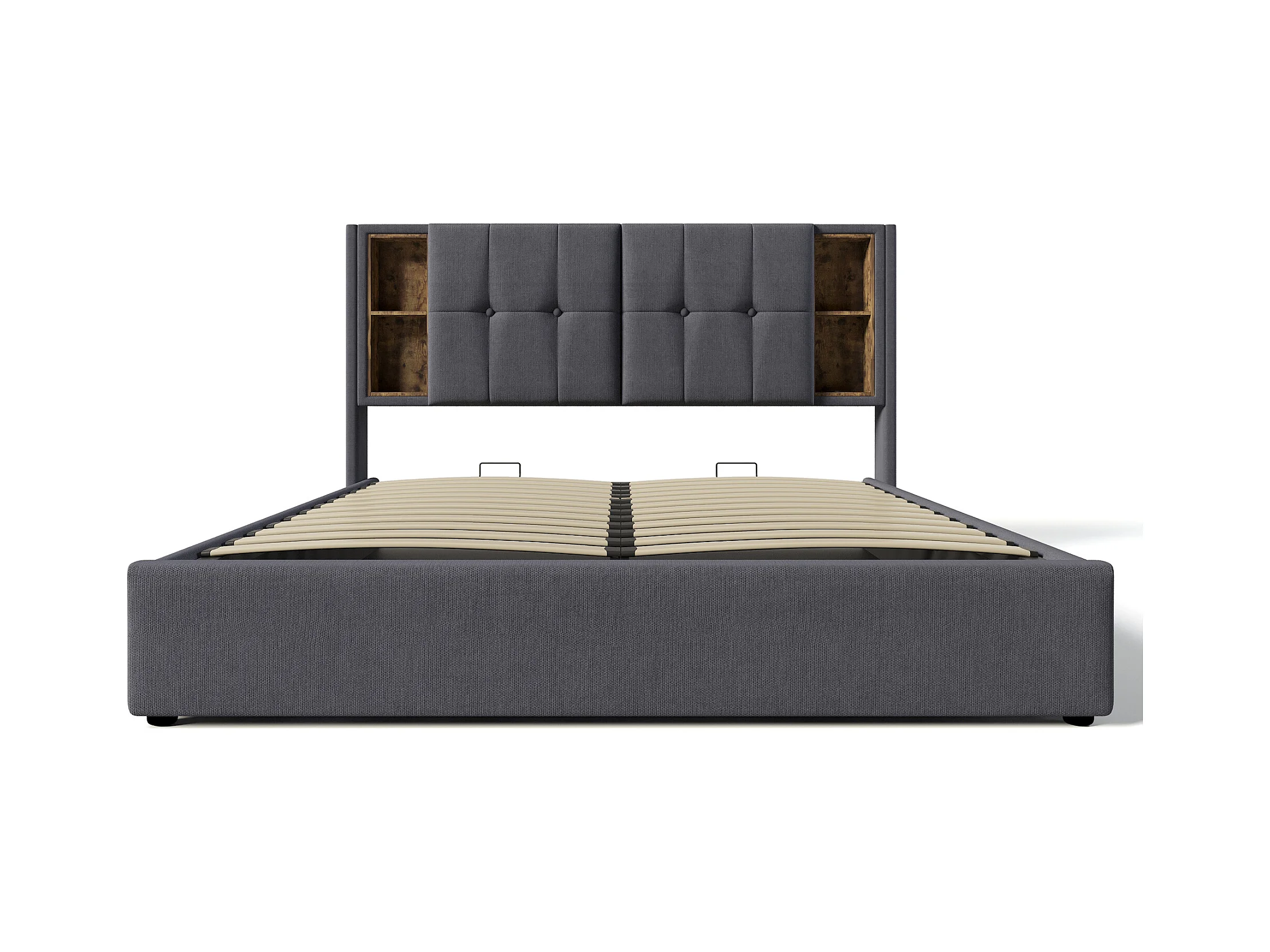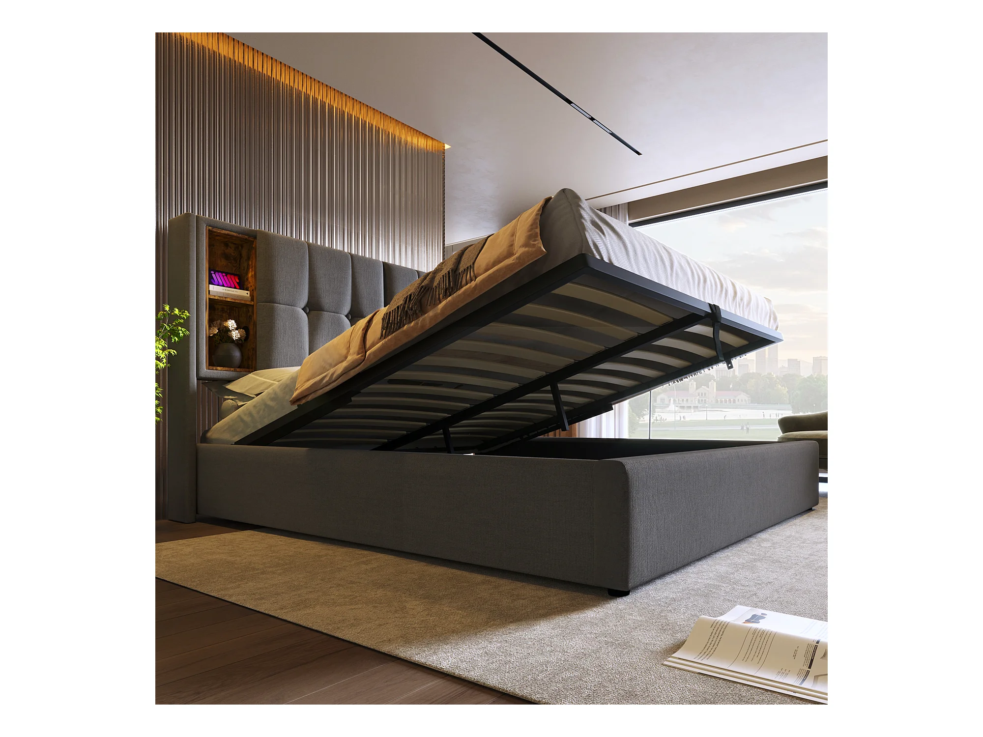 Lit coffre 180x200 cm - lit adulte avec recharge sans fil USB C - coton - gris