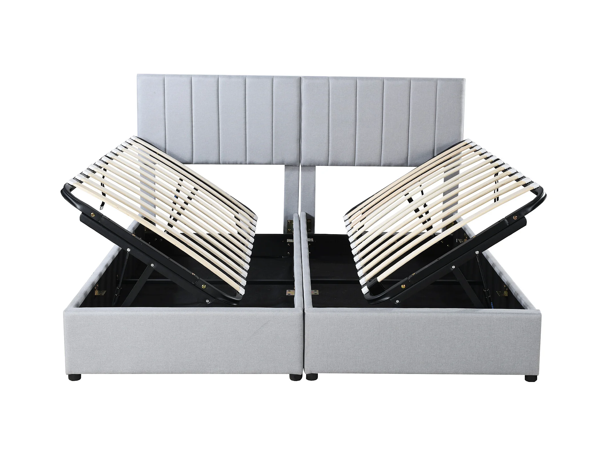 Lit coffre 180x200 cm - Lit adulte avec tête de lit réglable et sommier à lattes - lin gris - sans matelas