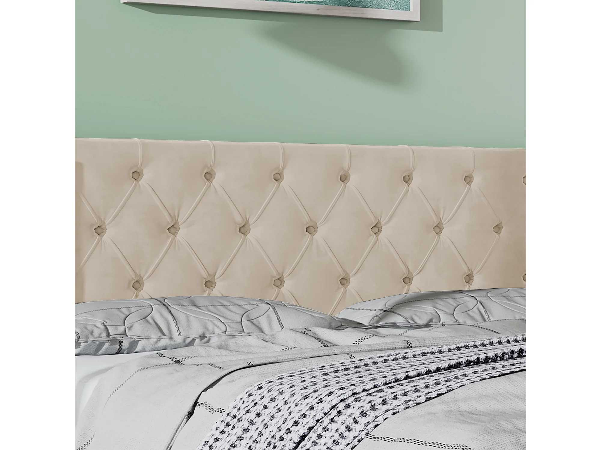 Lit coffre 180x200 cm - lit adulte en forme d'oreille double rangée de rivets - lit double - velours - beige