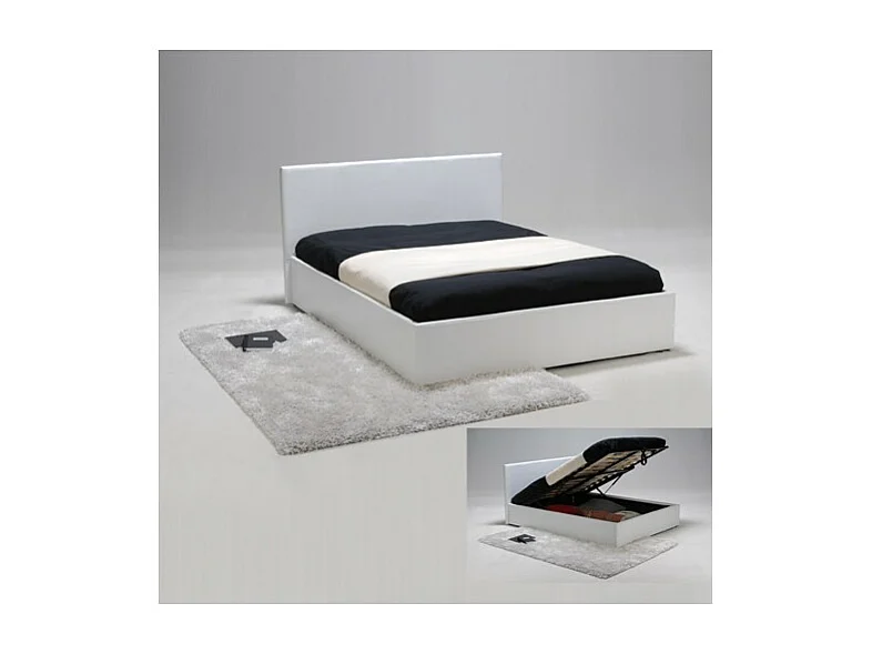 Lit coffre 2 places 140x190cm blanc avec sommier BACELAN