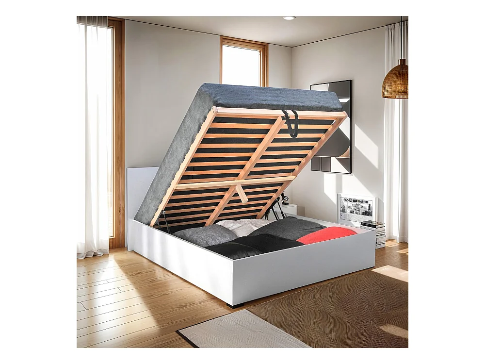 Lit coffre 2 places 140x190cm Blanc avec sommier MARO
