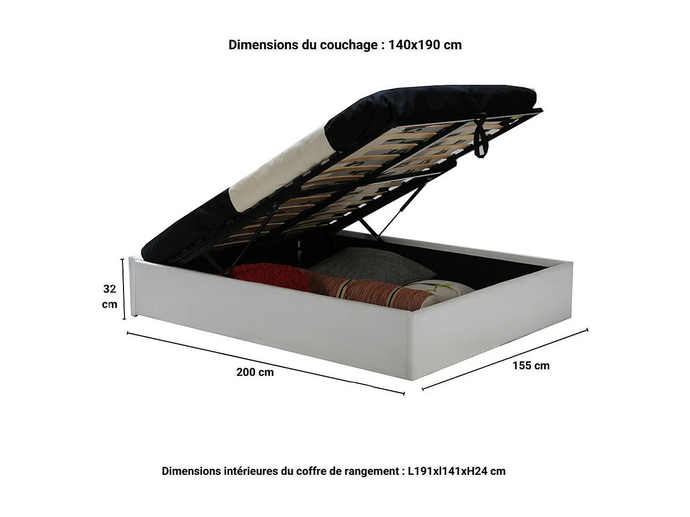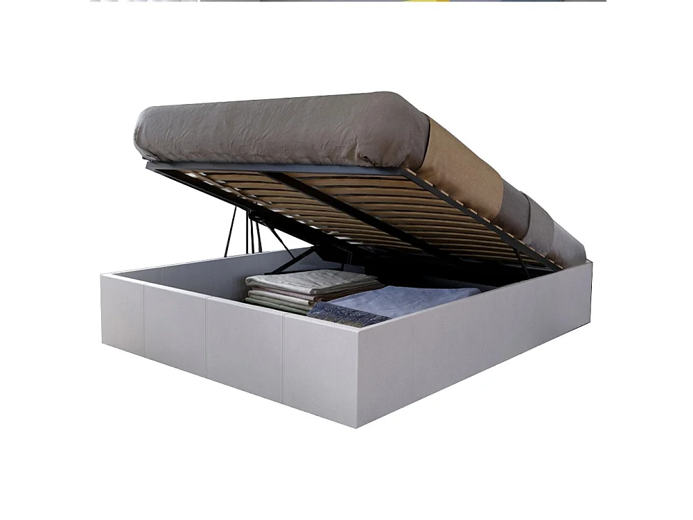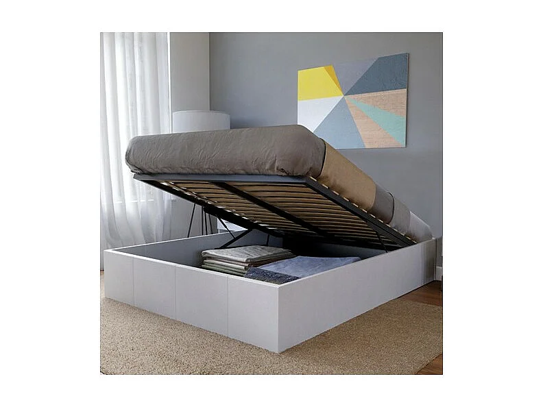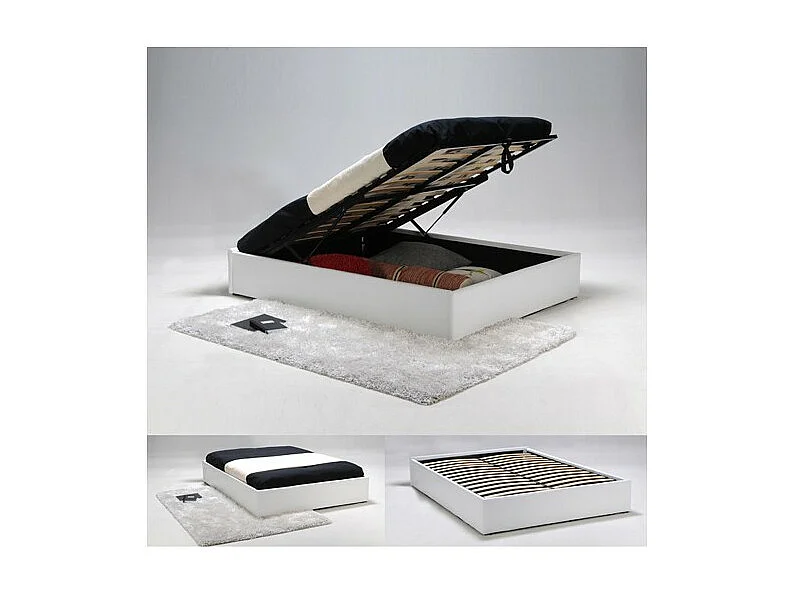 Lit coffre 2 places 140x190cm blanc avec sommier TURIN