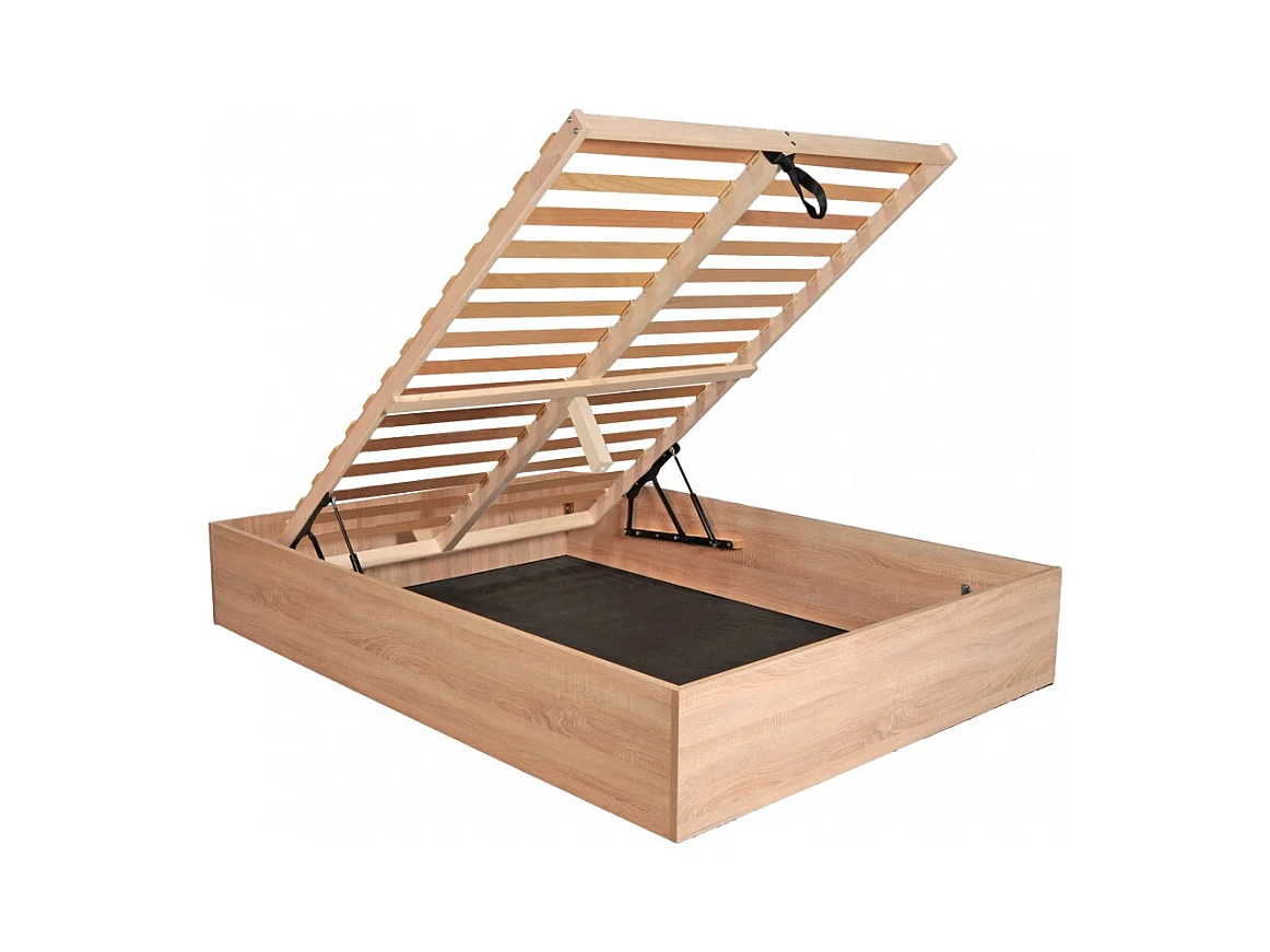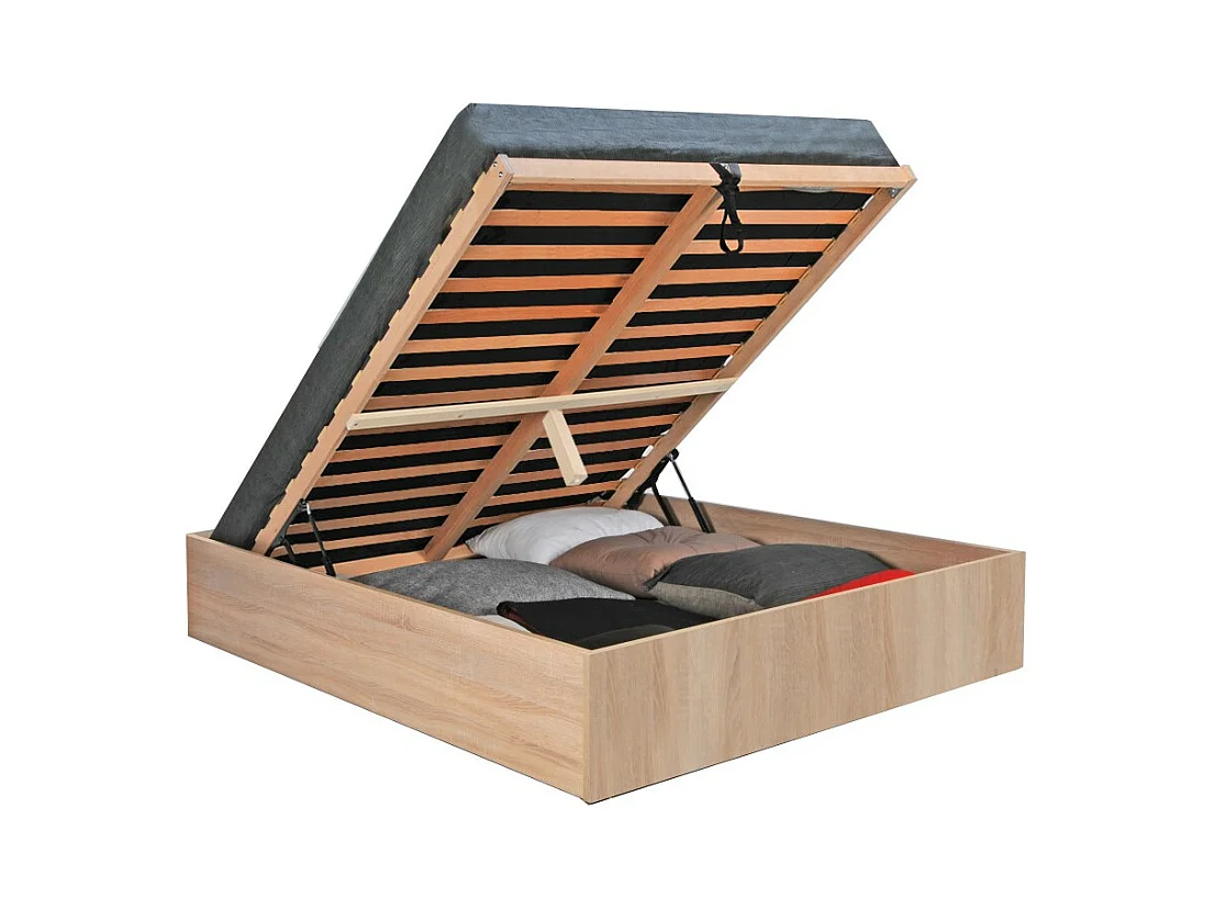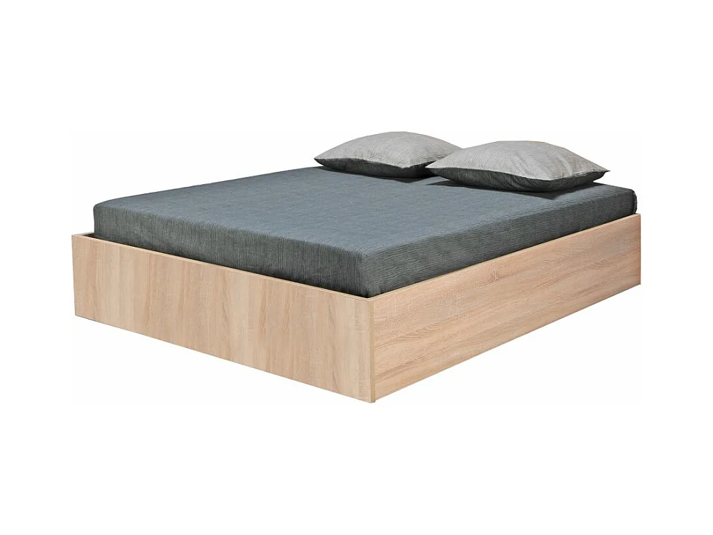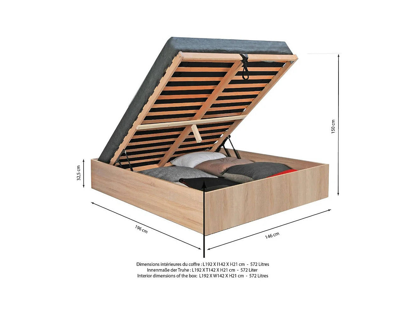 Lit coffre 2 places 140x190cm couleur chêne avec sommier BILYBA