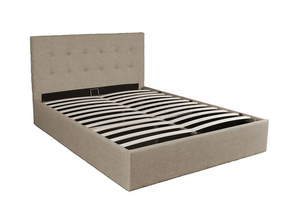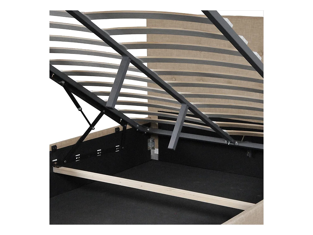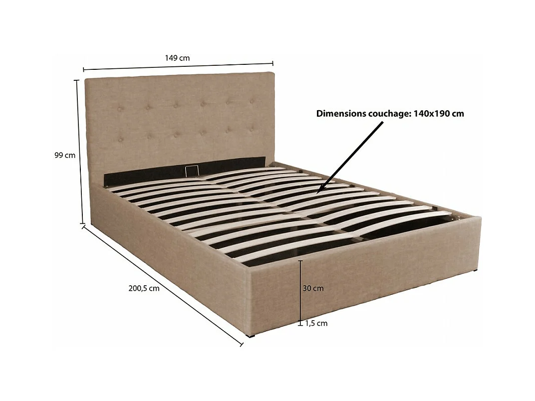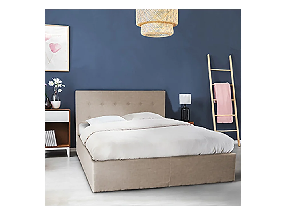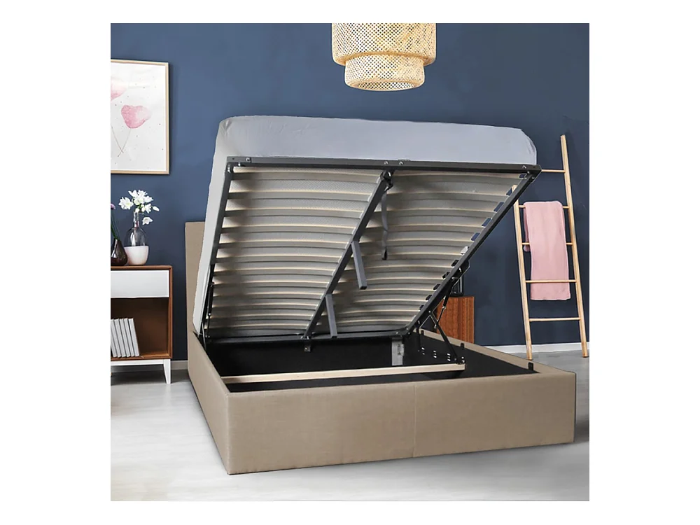 Lit coffre 2 places 140x190cm tissu Beige avec sommier PAMA