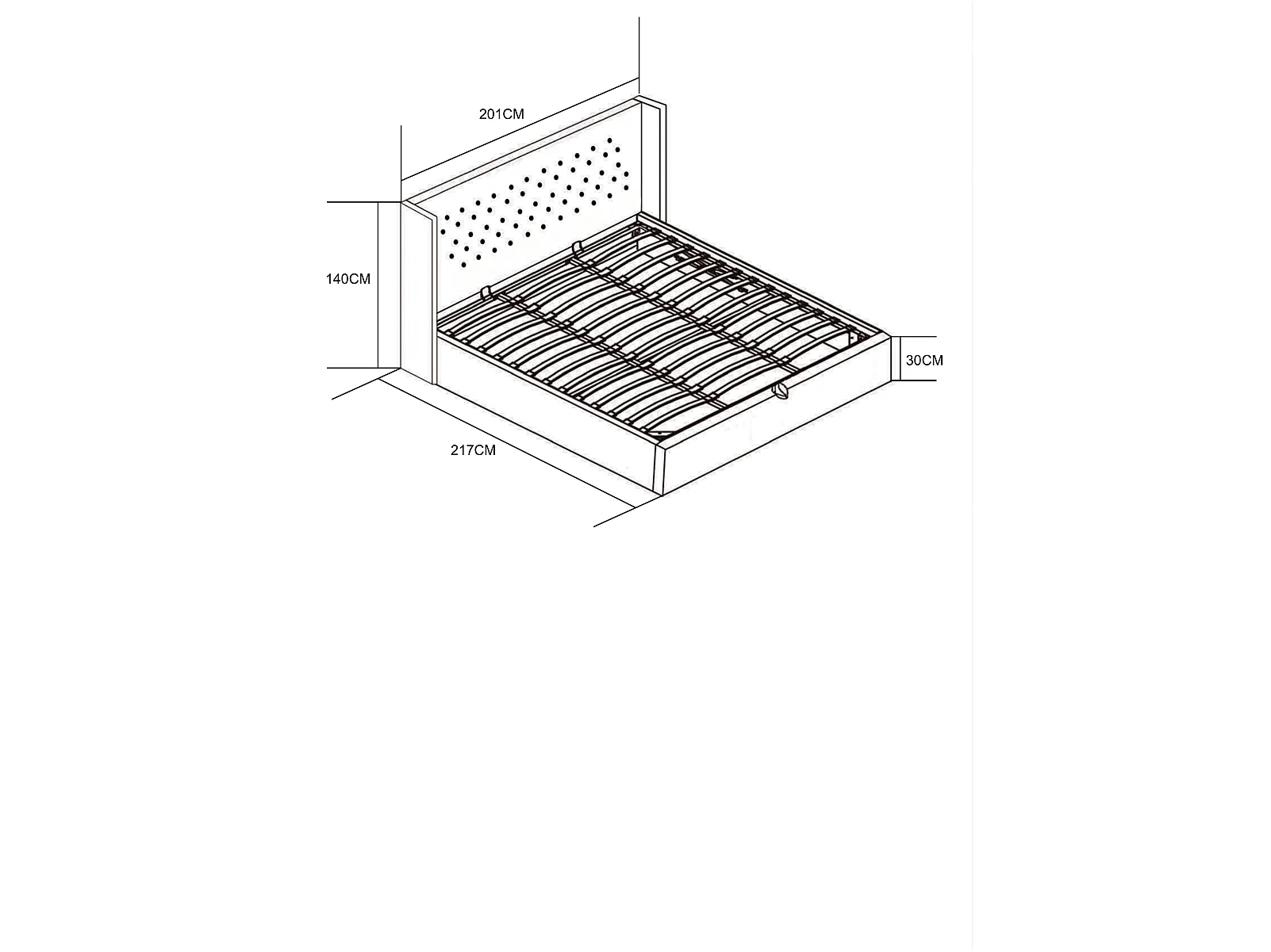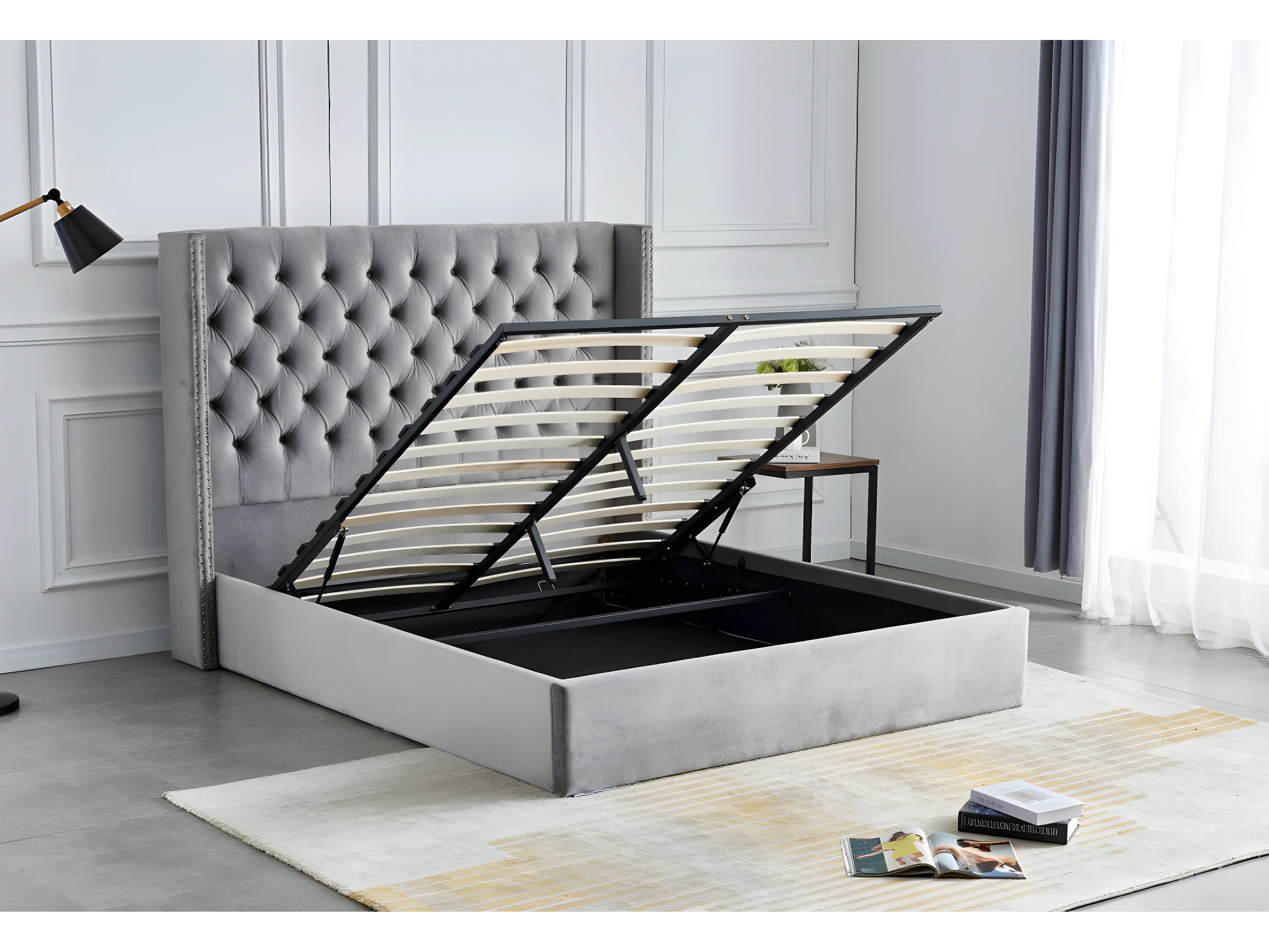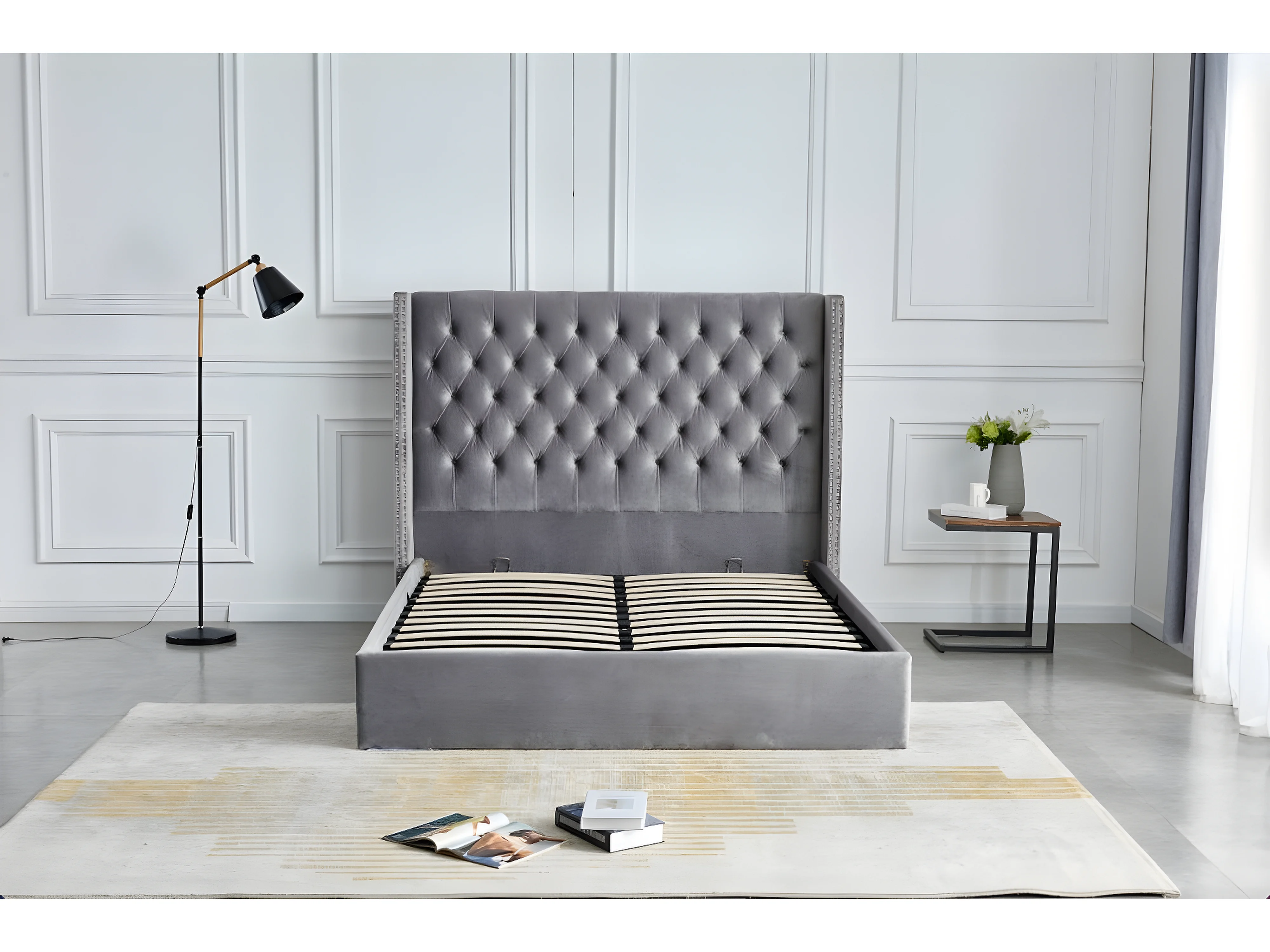 Lit COFFRE 2 places 180X200 cm CLOUTE velours GRIS