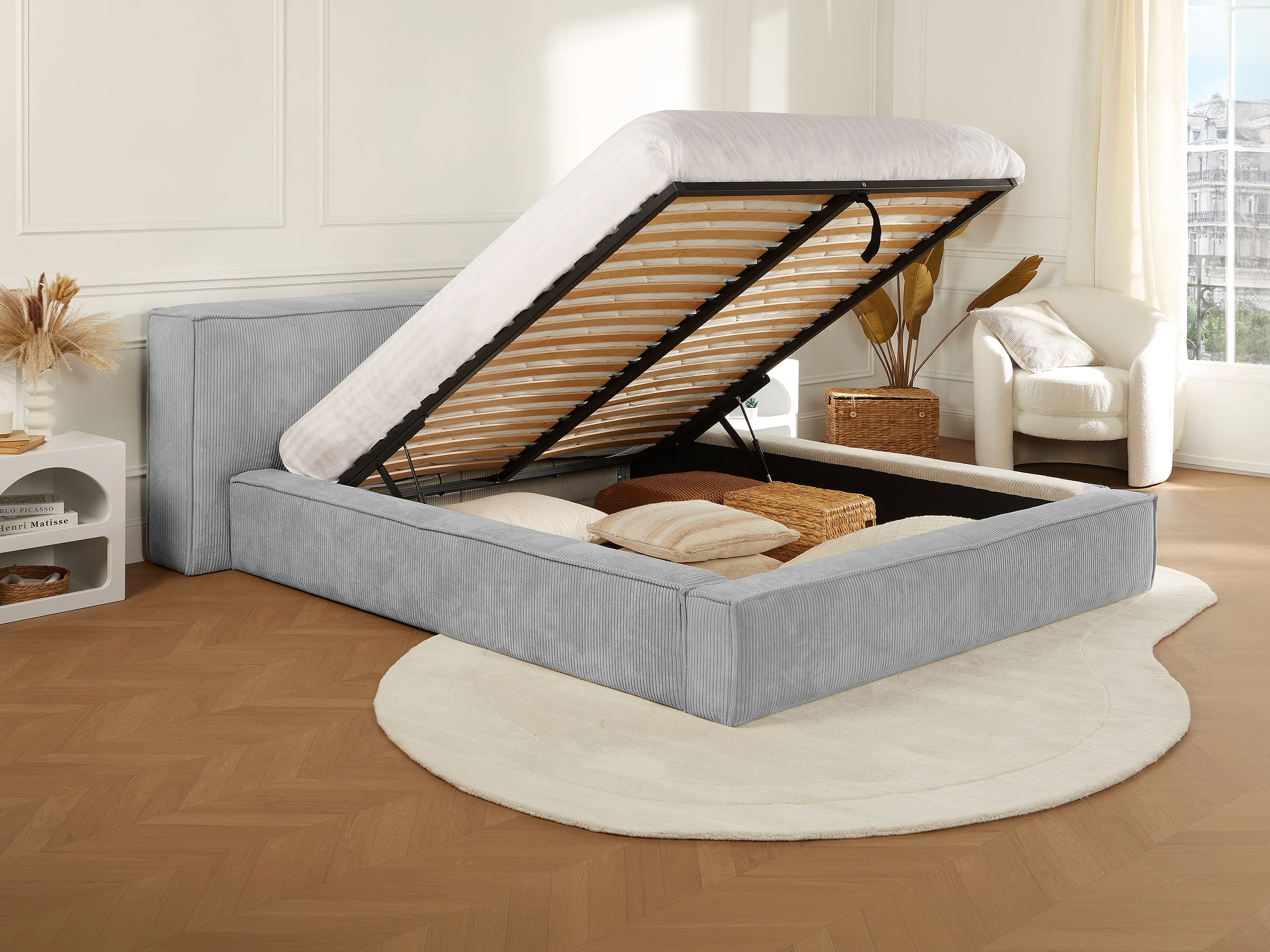Lit coffre 200 x 200 cm - Velours côtelé - Gris clair - TIMANO de Pascal Morabito