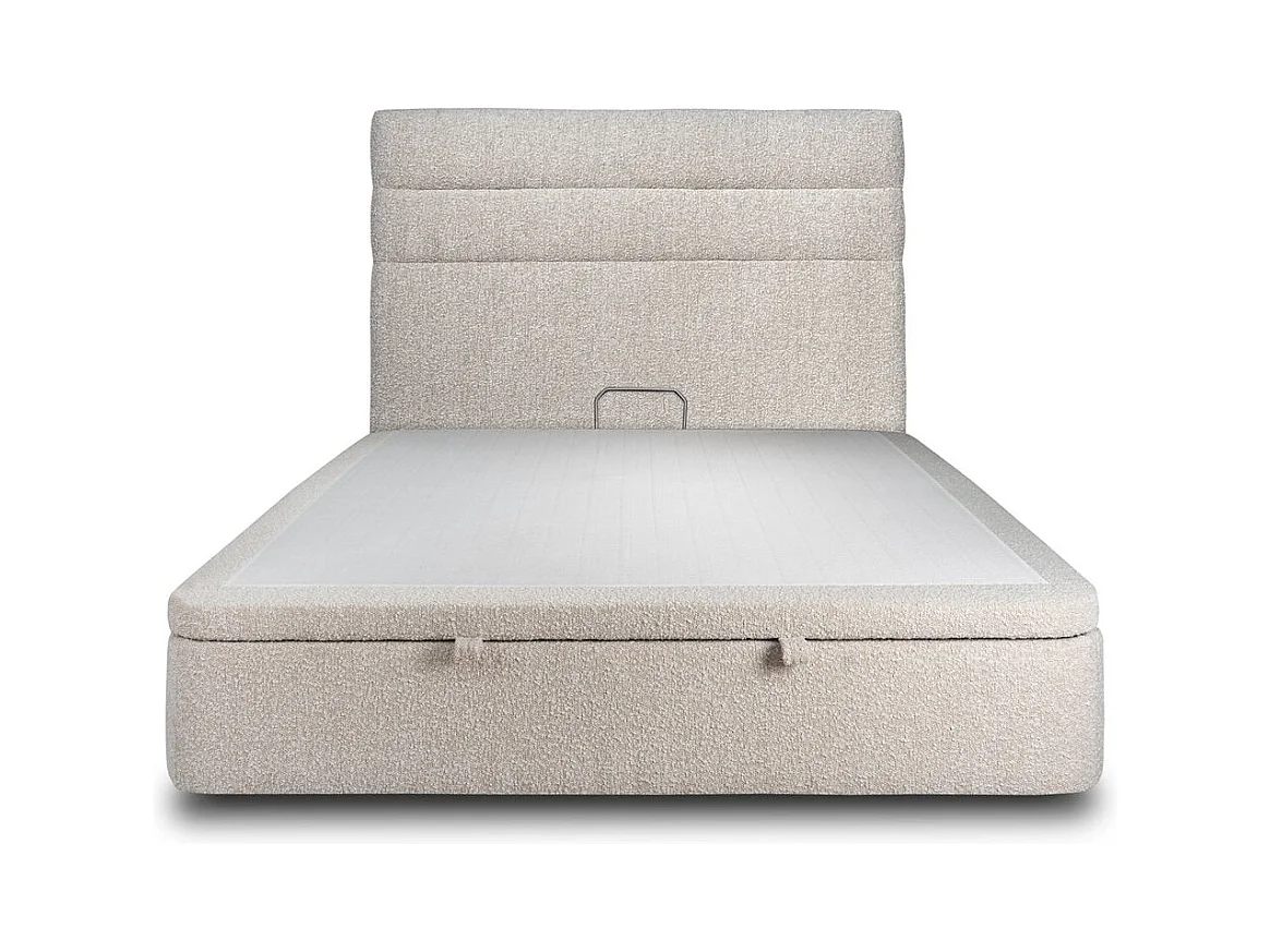 Lit coffre 200x200cm avec tête de lit lignes Bouclette Beige - Hauteur totale : 39cm
