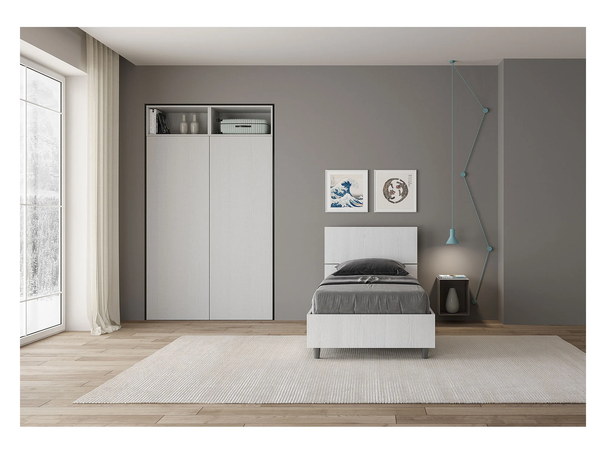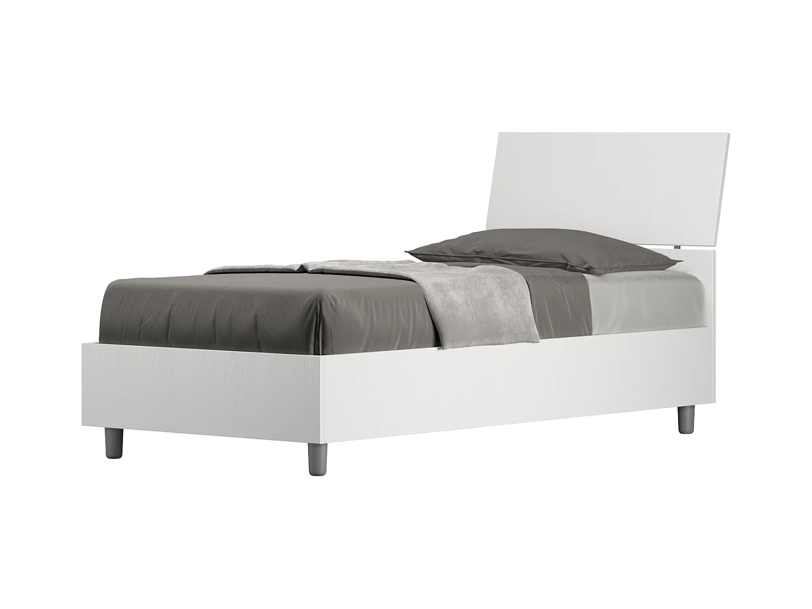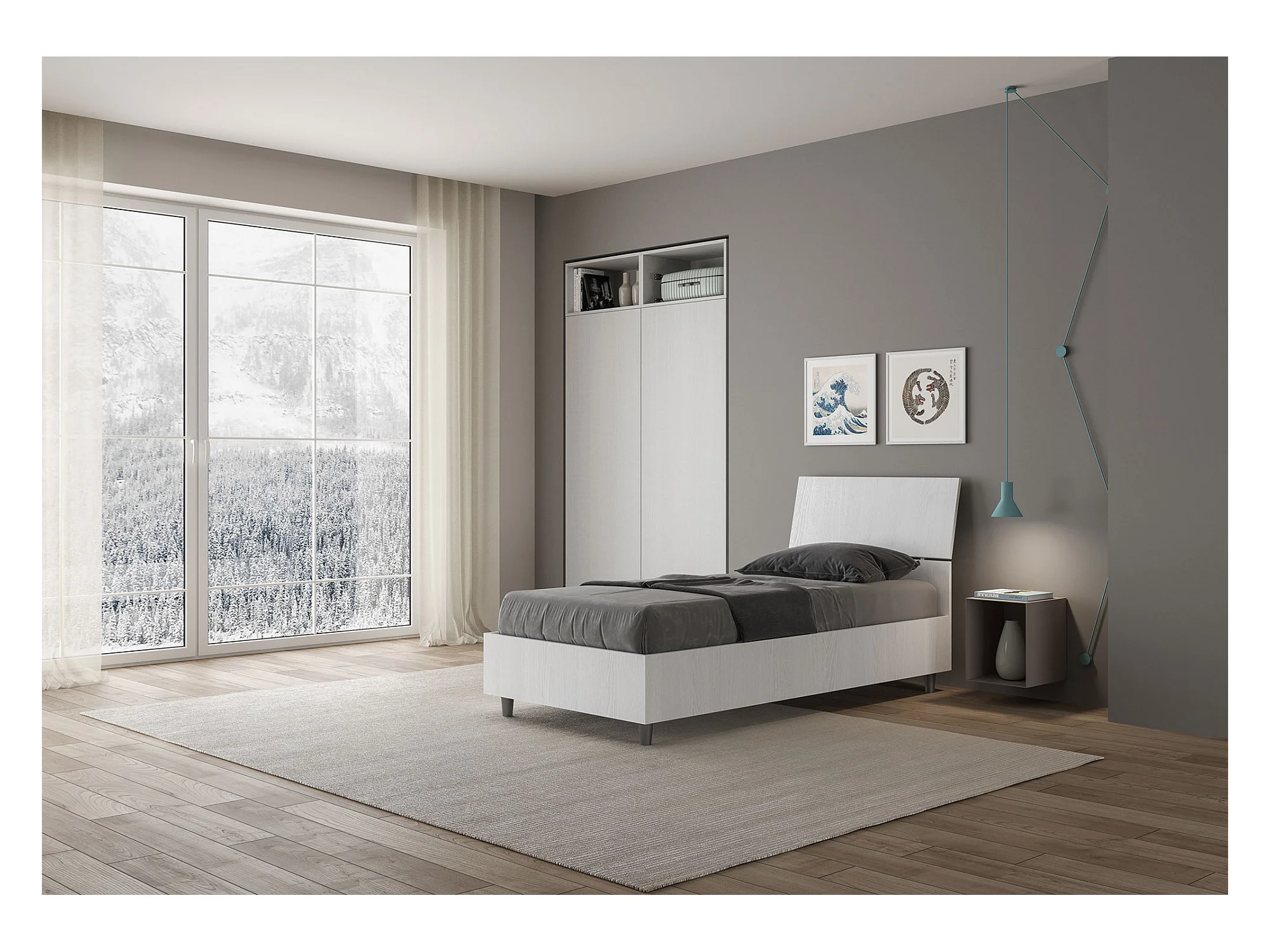 Lit coffre 80x190 avec tête de lit inclinée en frêne blanc Demas
