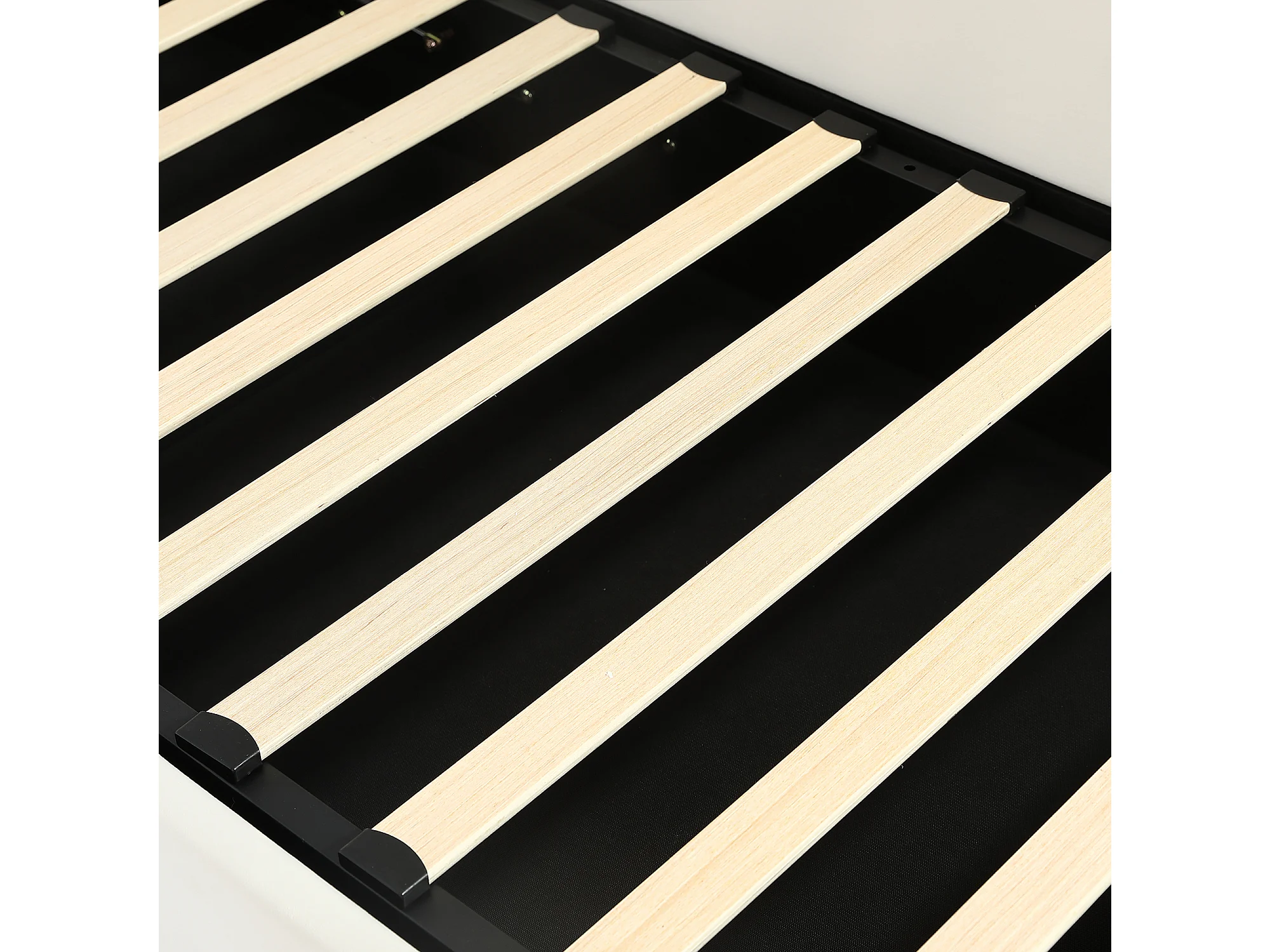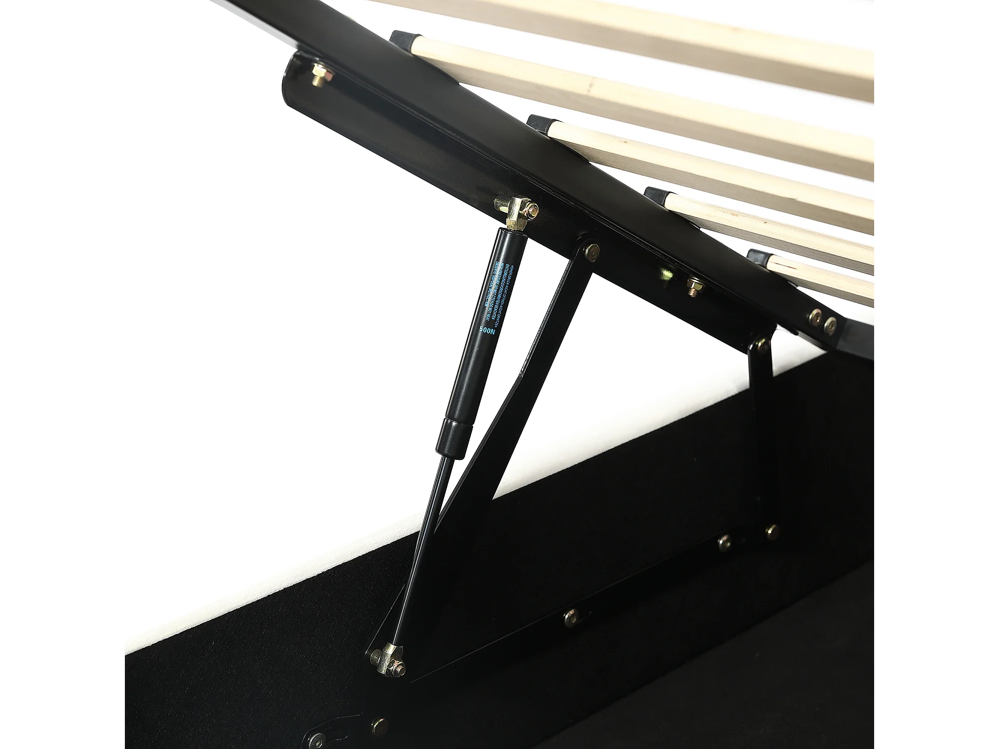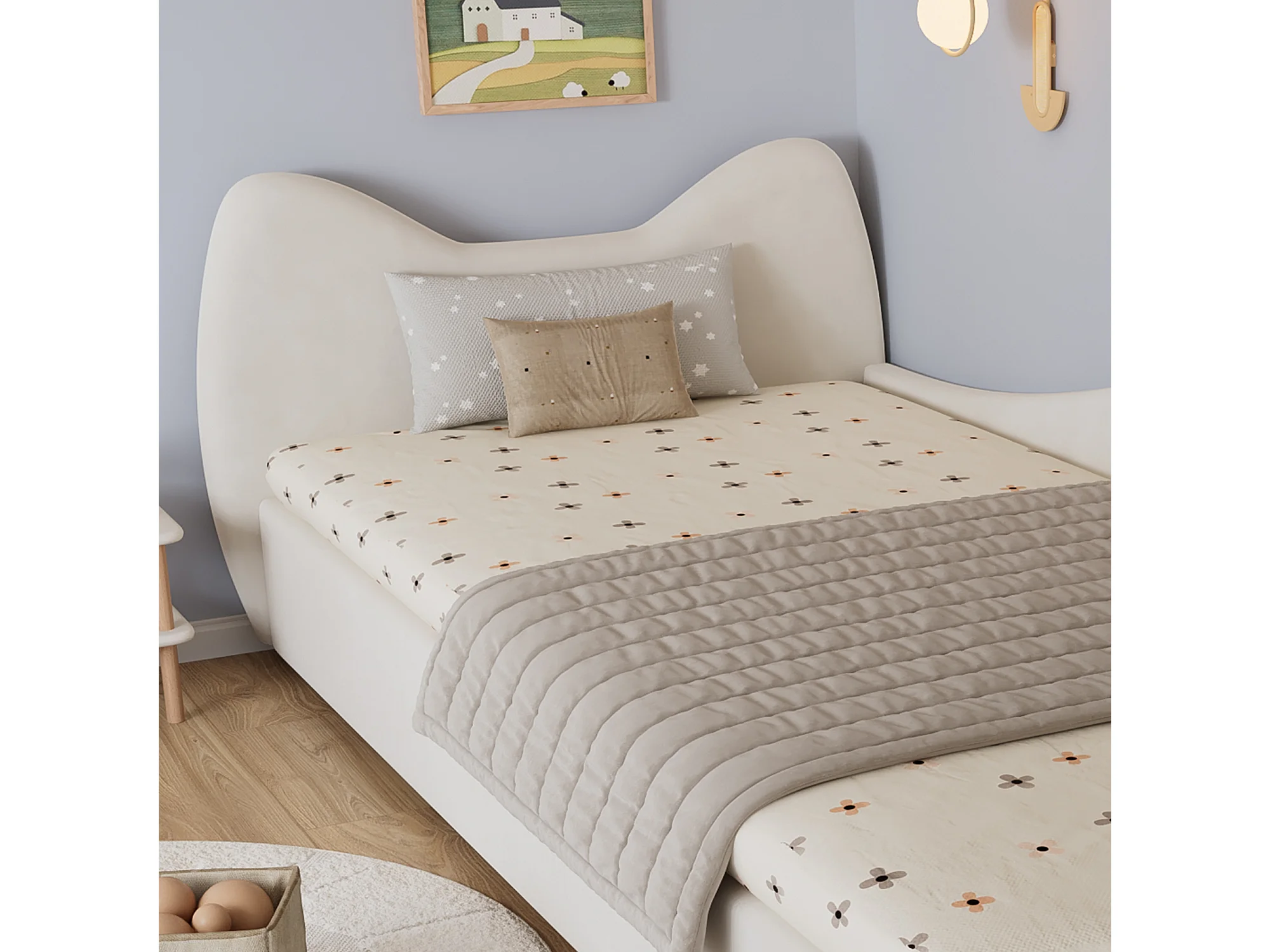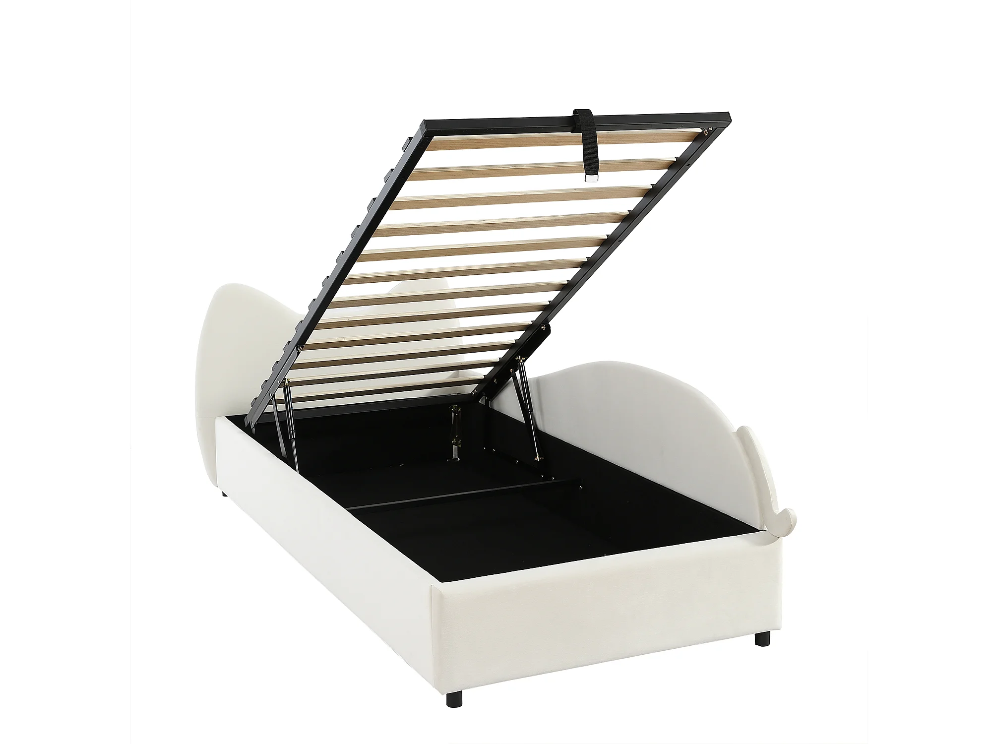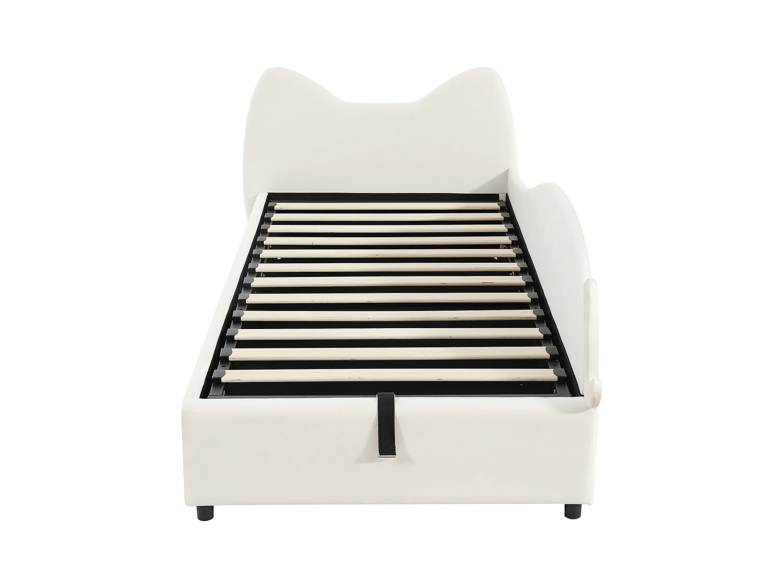 Lit coffre 90 x 200 cm - Lit simple avec tête de lit chat et panneau latéral droit - velours beige