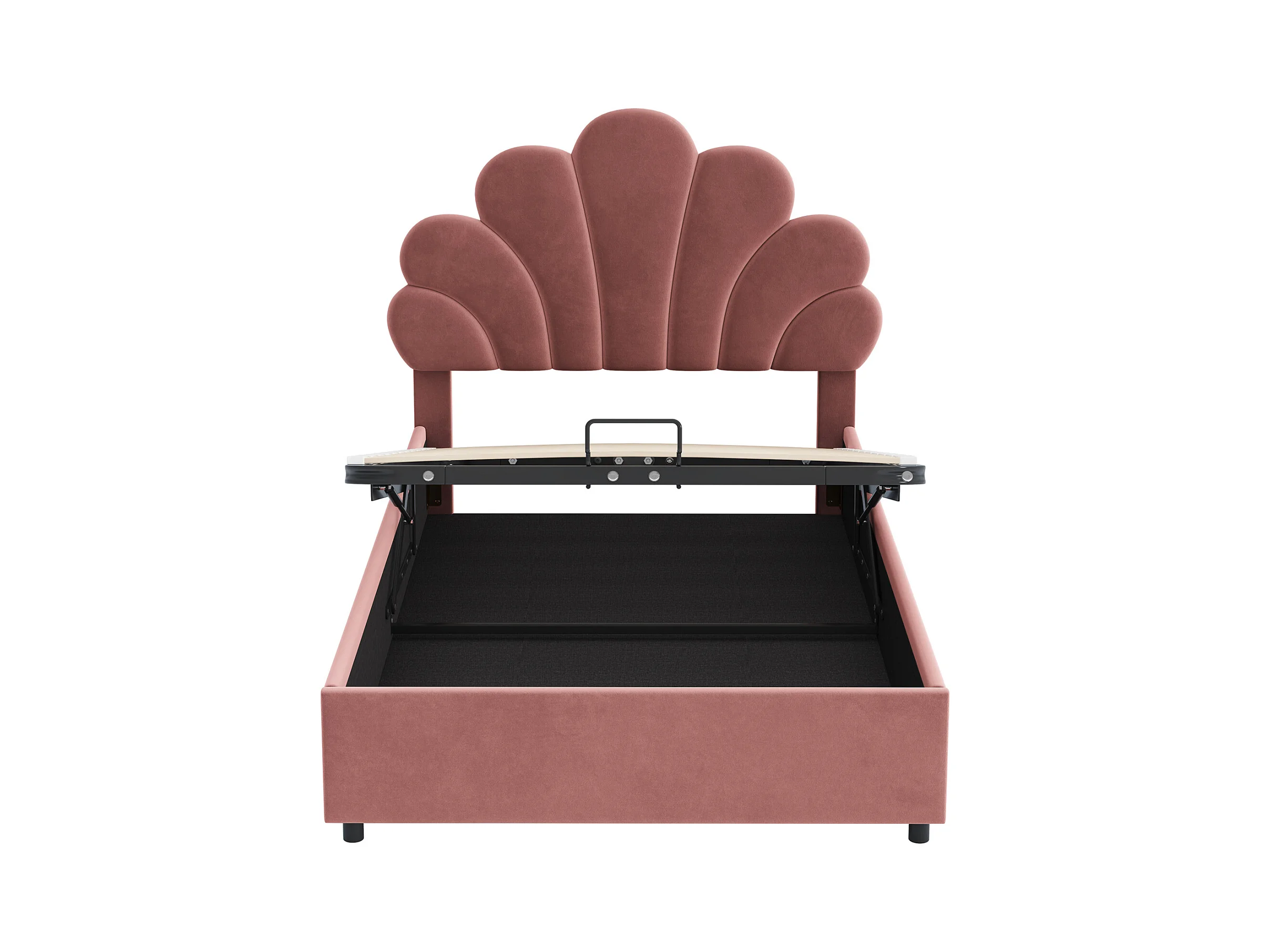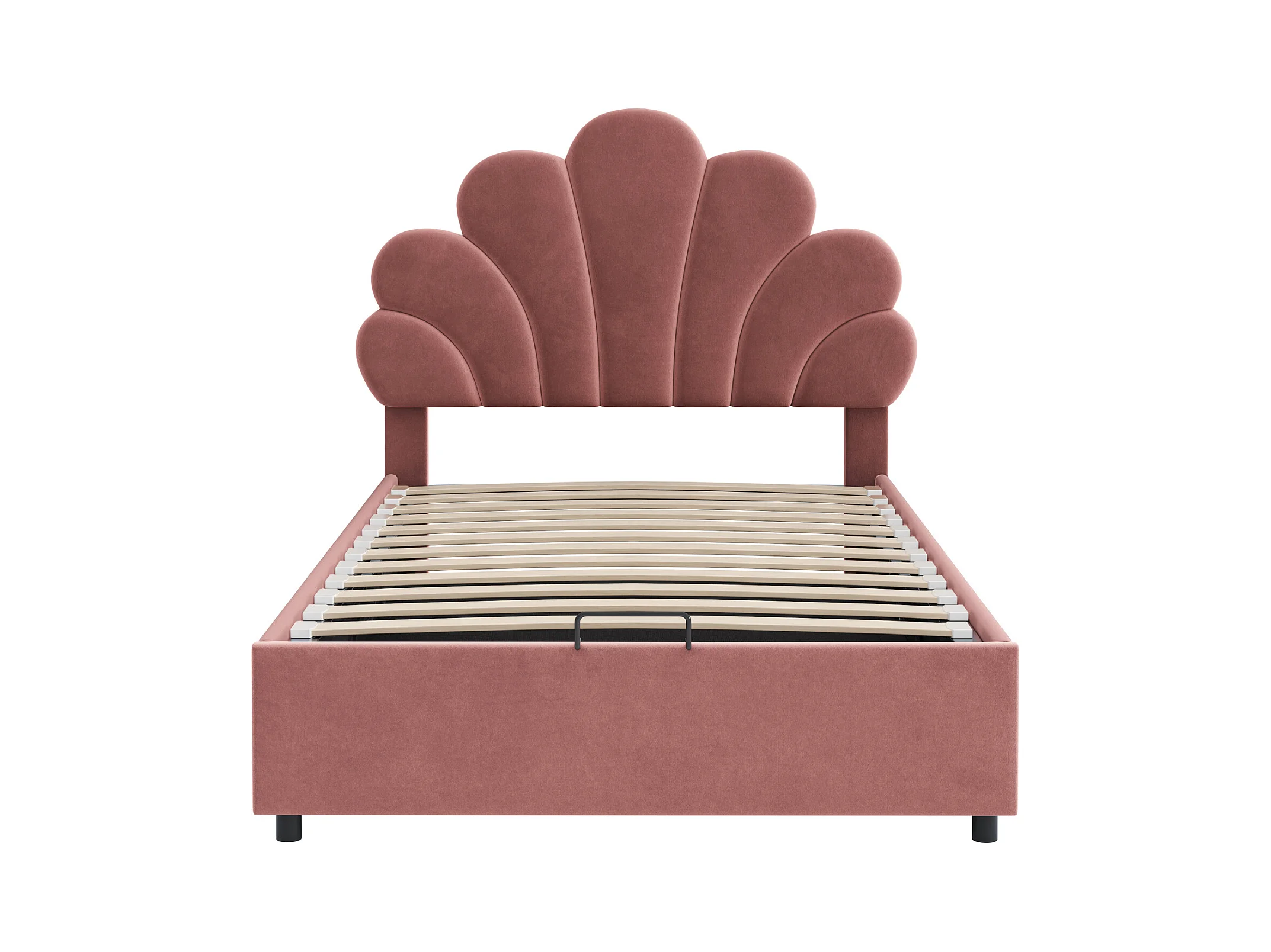 Lit coffre 90 x 200 cm - velours rose - Lit enfant avec tête de lit réglable et sommier à lattes - sans matelas