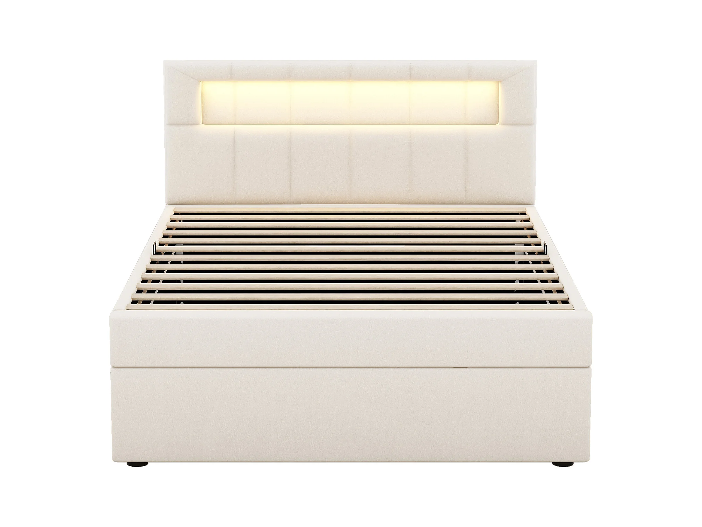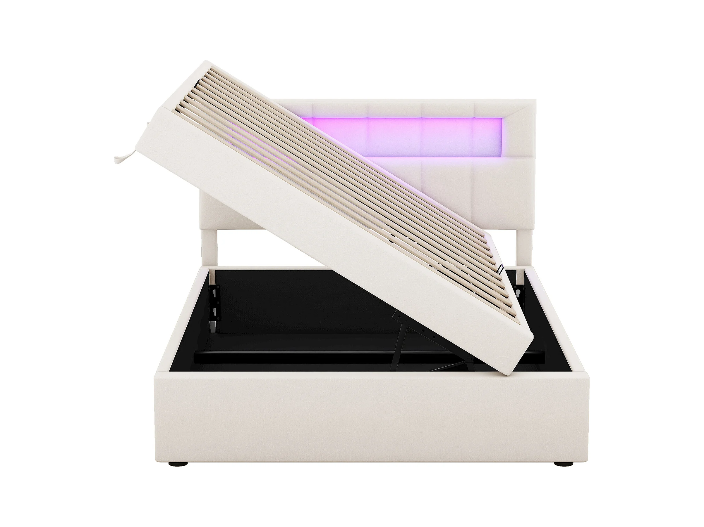 Lit coffre 90x200 cm - Lit enfant avec éclairage LED - tête de lit réglable - velours beige - sans matelas