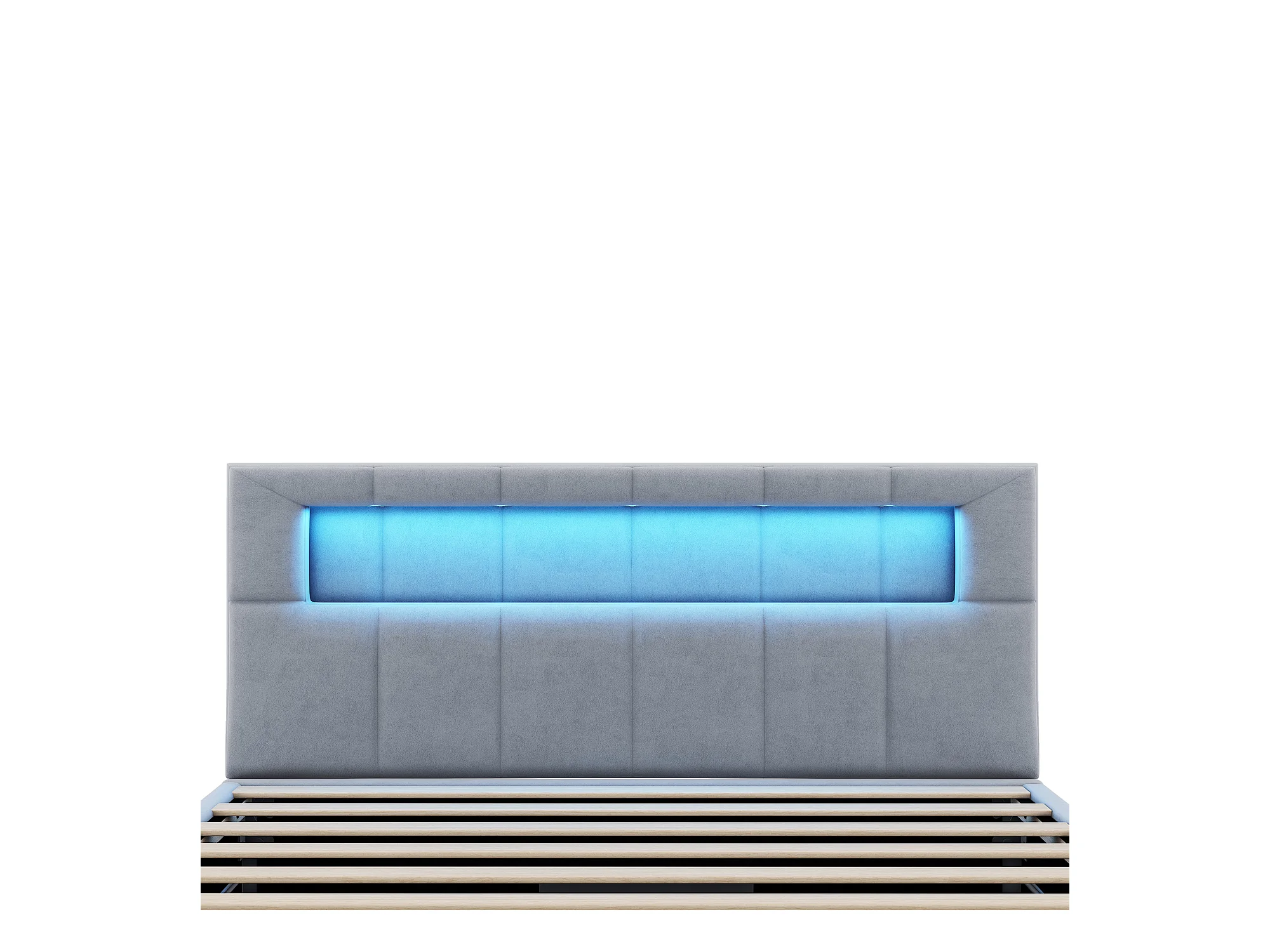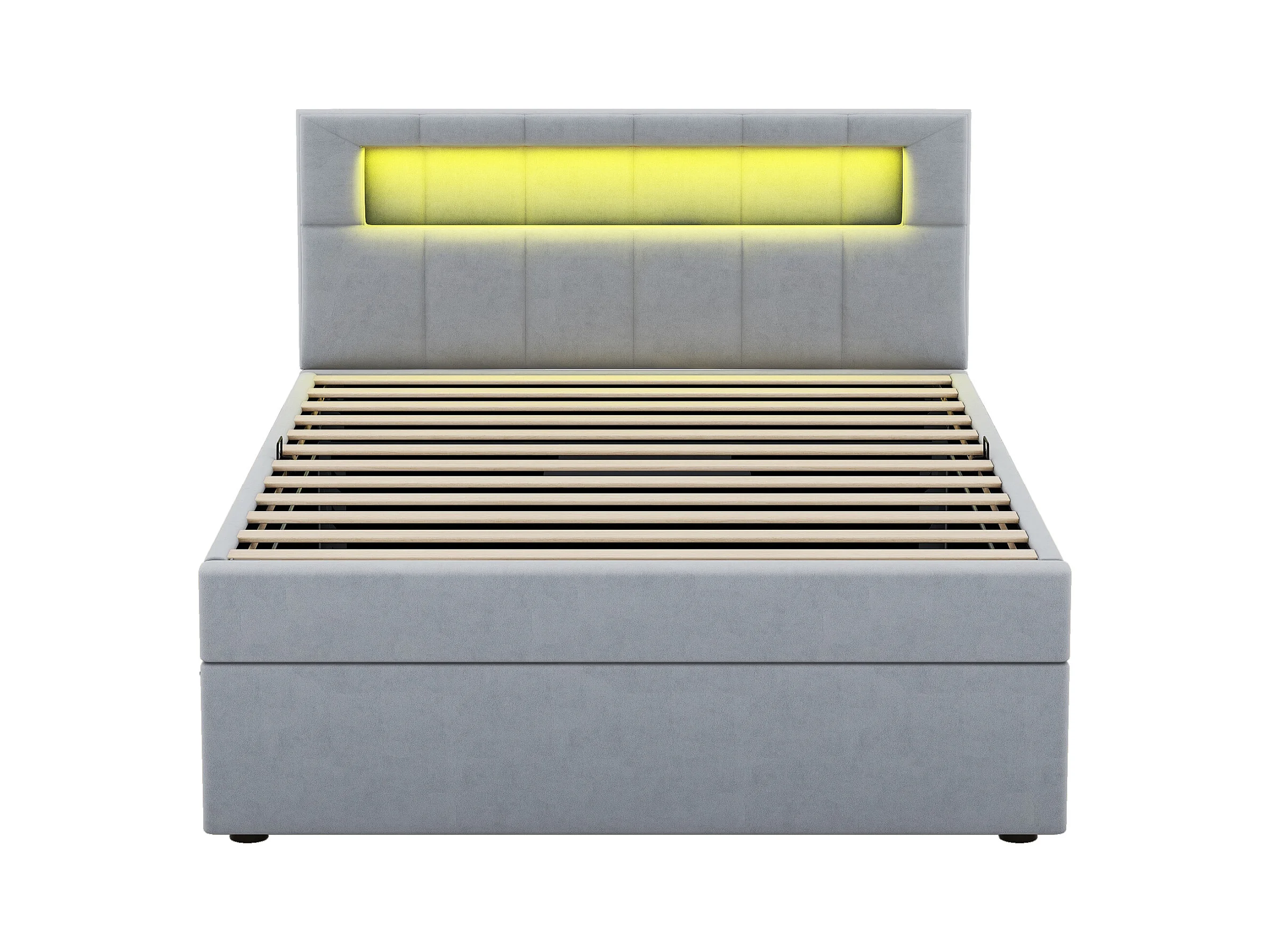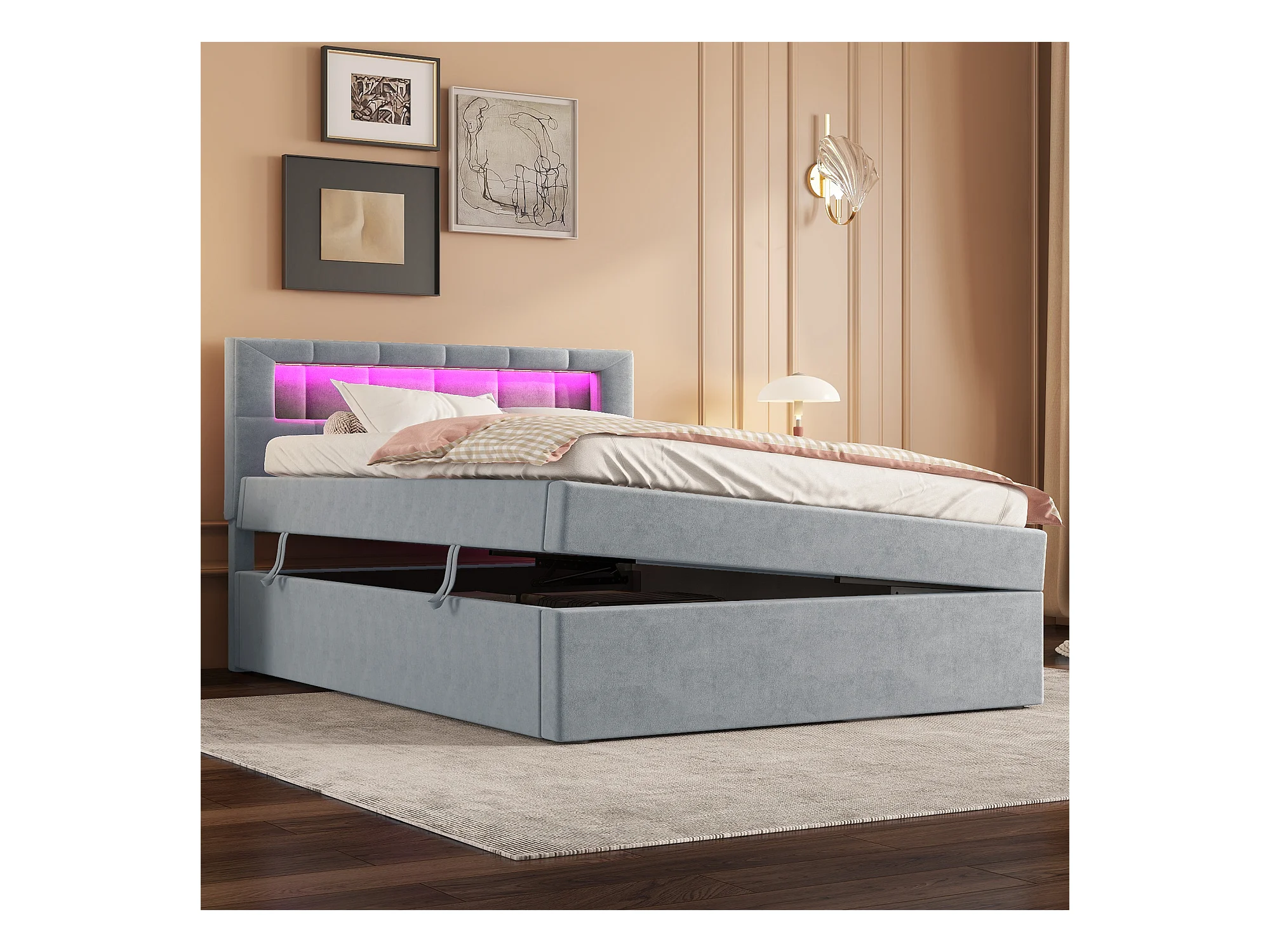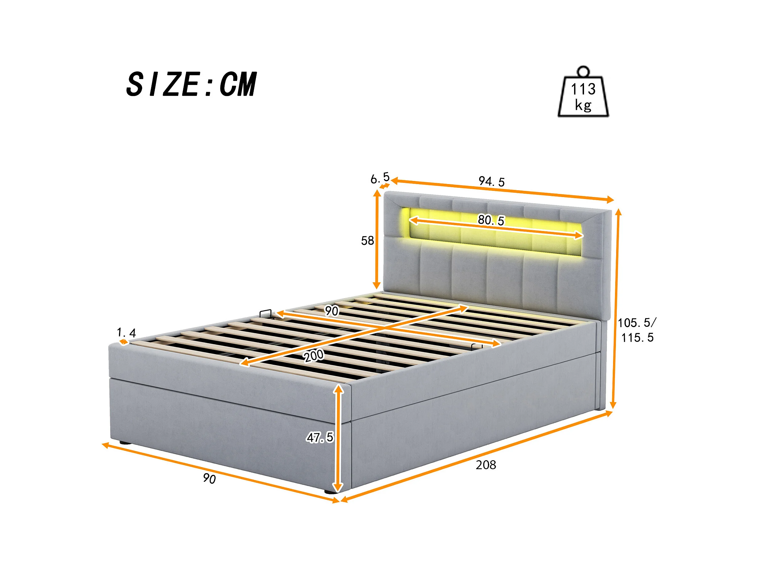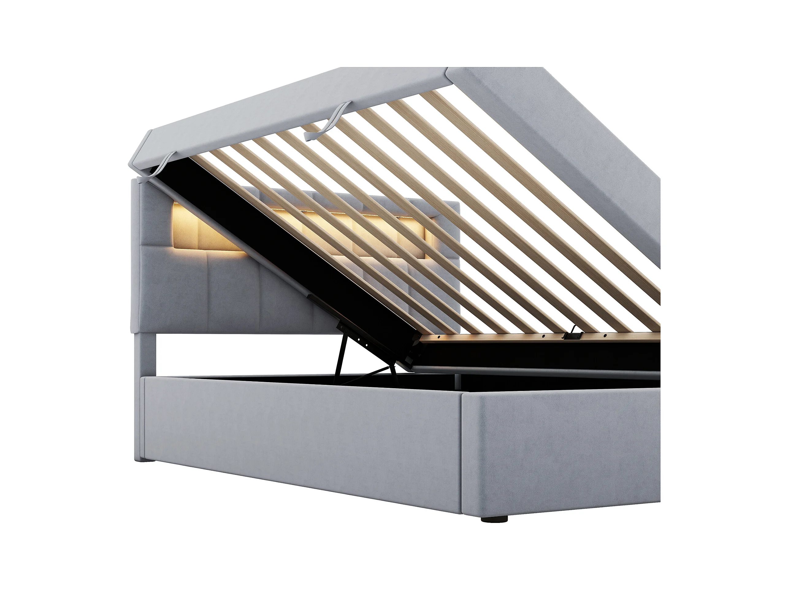 Lit coffre 90x200 cm - Lit enfant avec éclairage LED - tête de lit réglable - velours gris - sans matelas