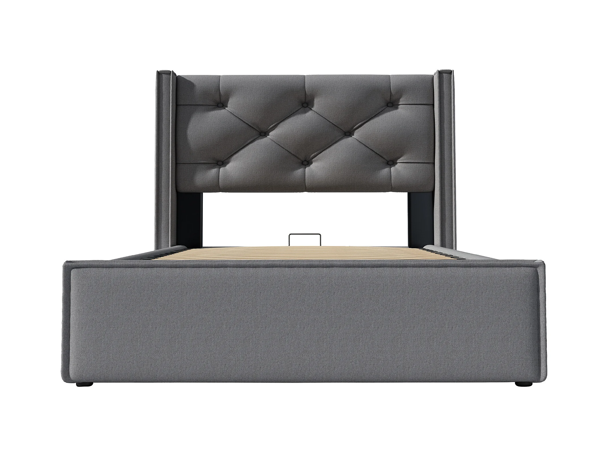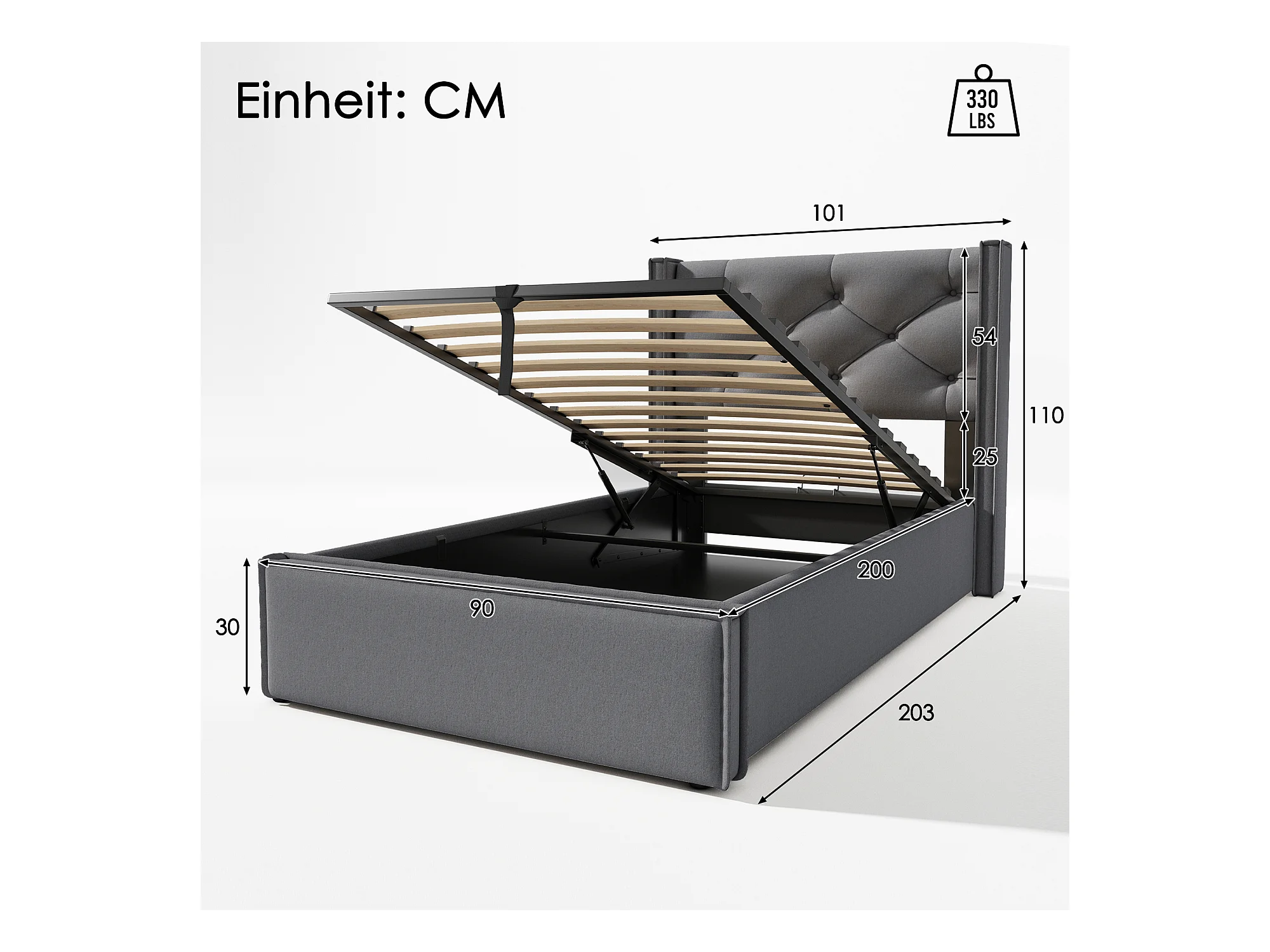 Lit coffre 90x200 cm - Lit simple avec sommier à lattes métalliques - gris - coton - sans matelas