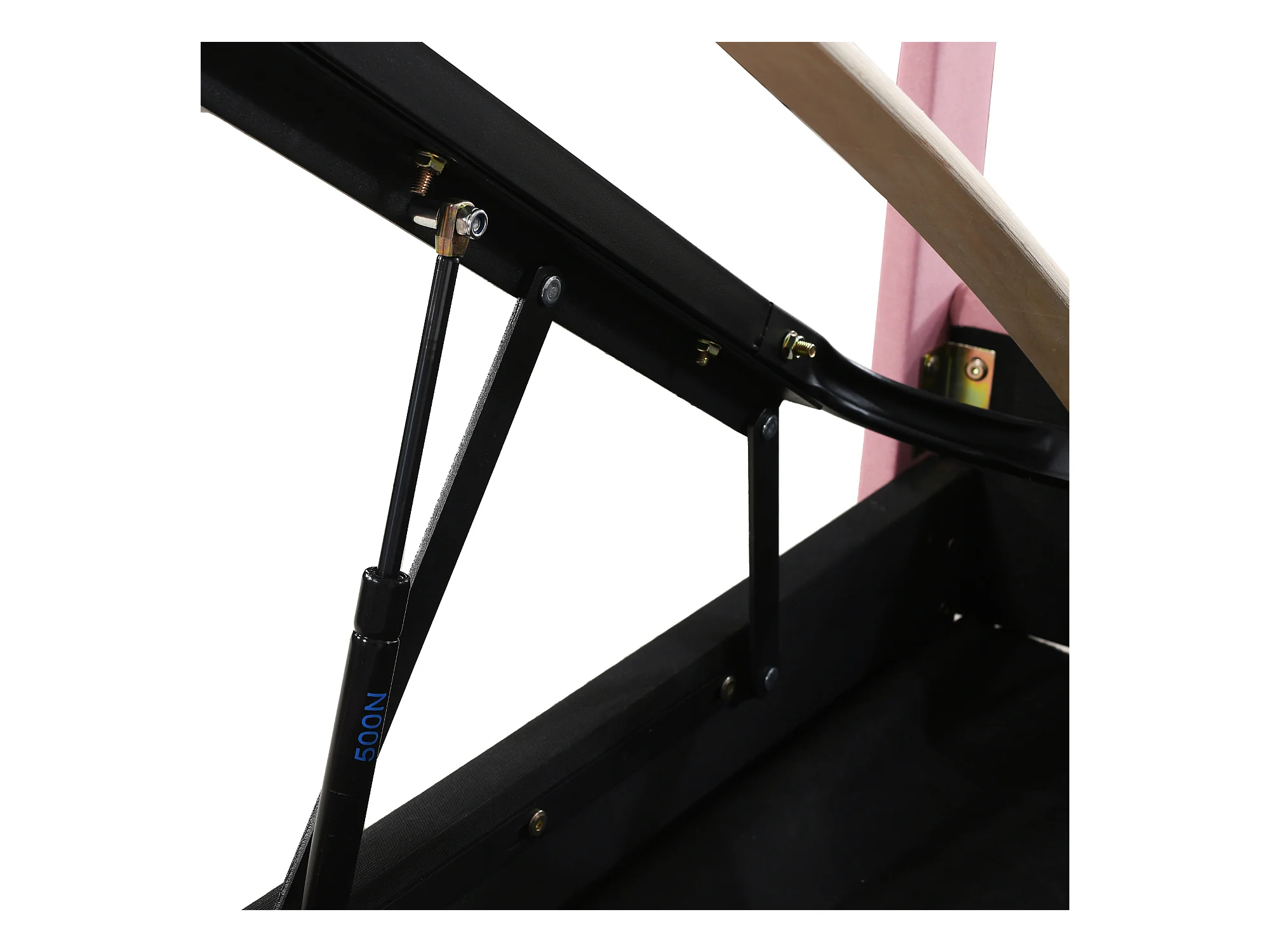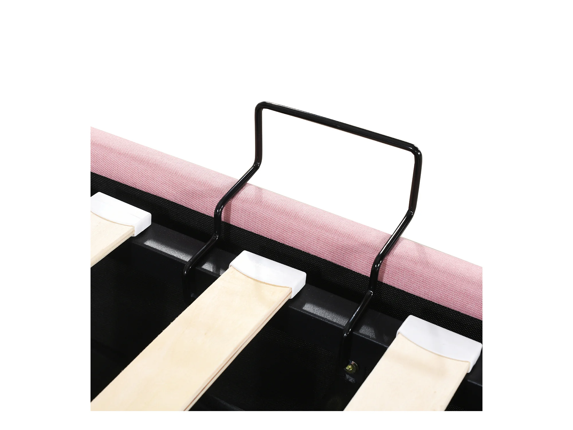 Lit coffre 90x200cm, lit capitonné d'enfant en lin, avec sommier à lattes et tête de lit, rose