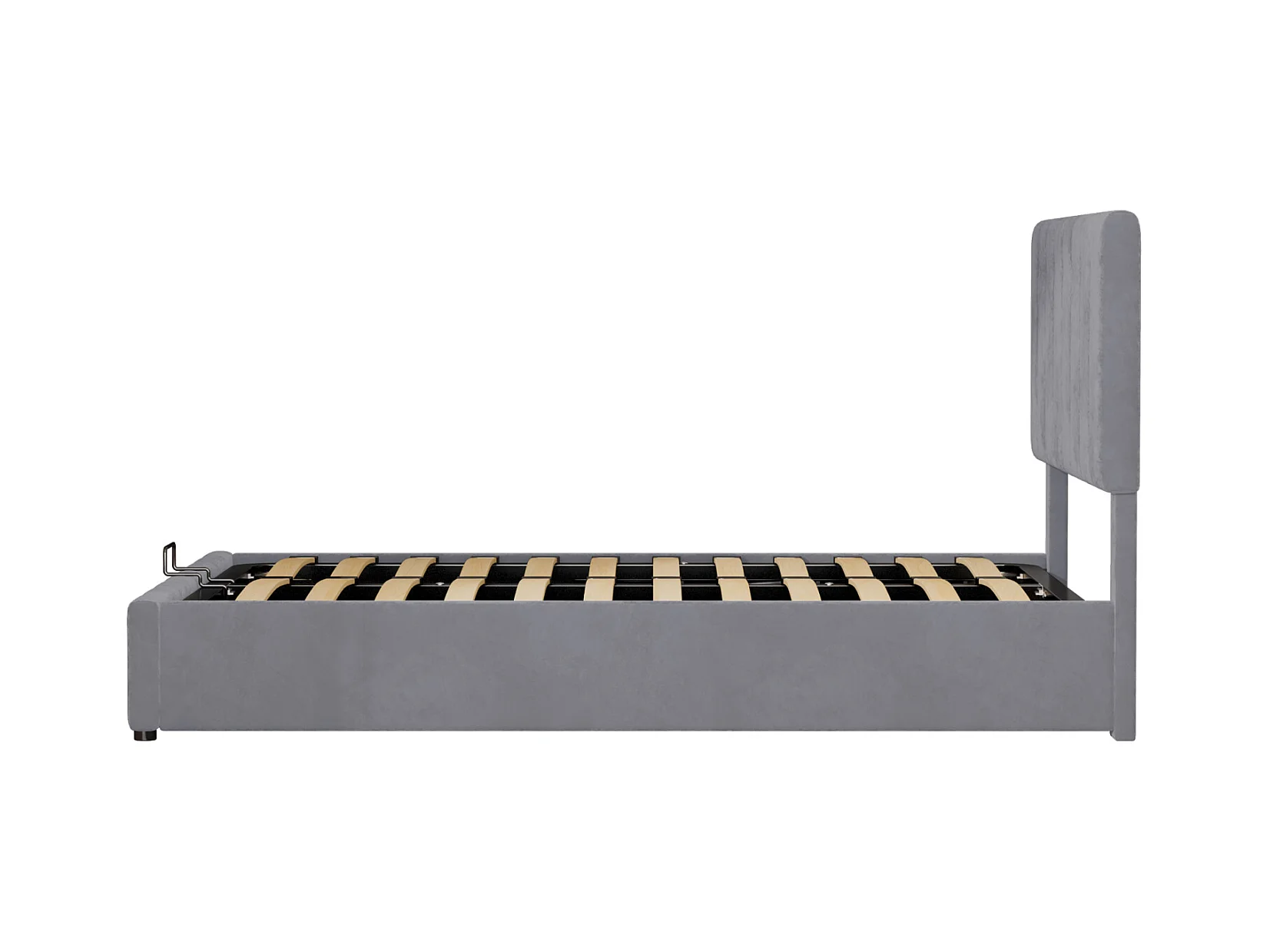 Lit coffre adulte 140 x 200cm - lit double en velours avec sommier à lattes en métal et tête de lit réglable en hauteur - Gris