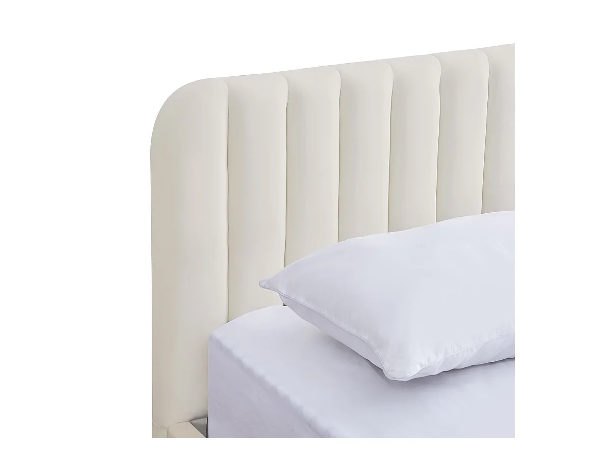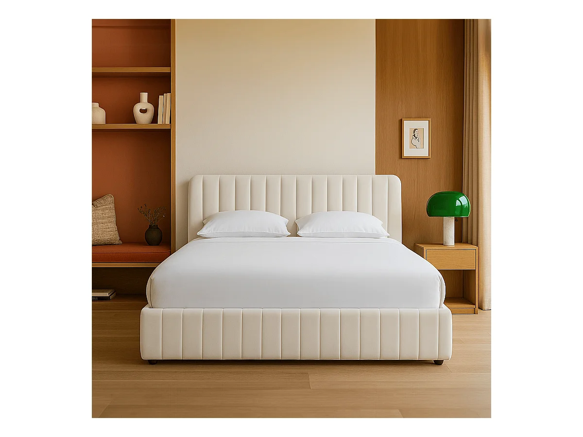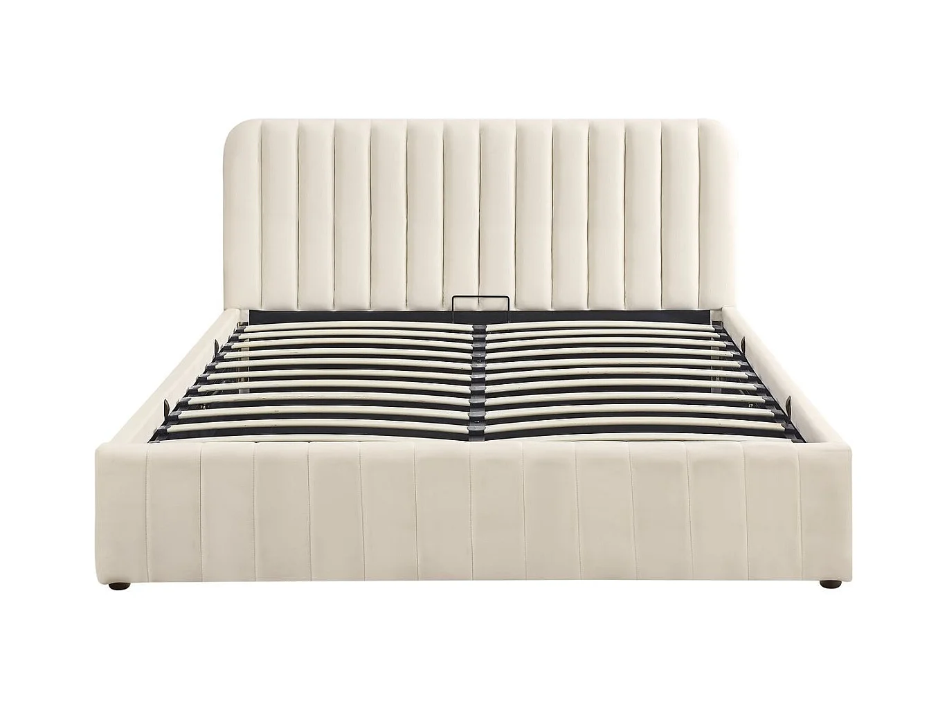 Lit coffre adulte 140x190 cm avec tête de lit capitonnée en velours beige - Ava