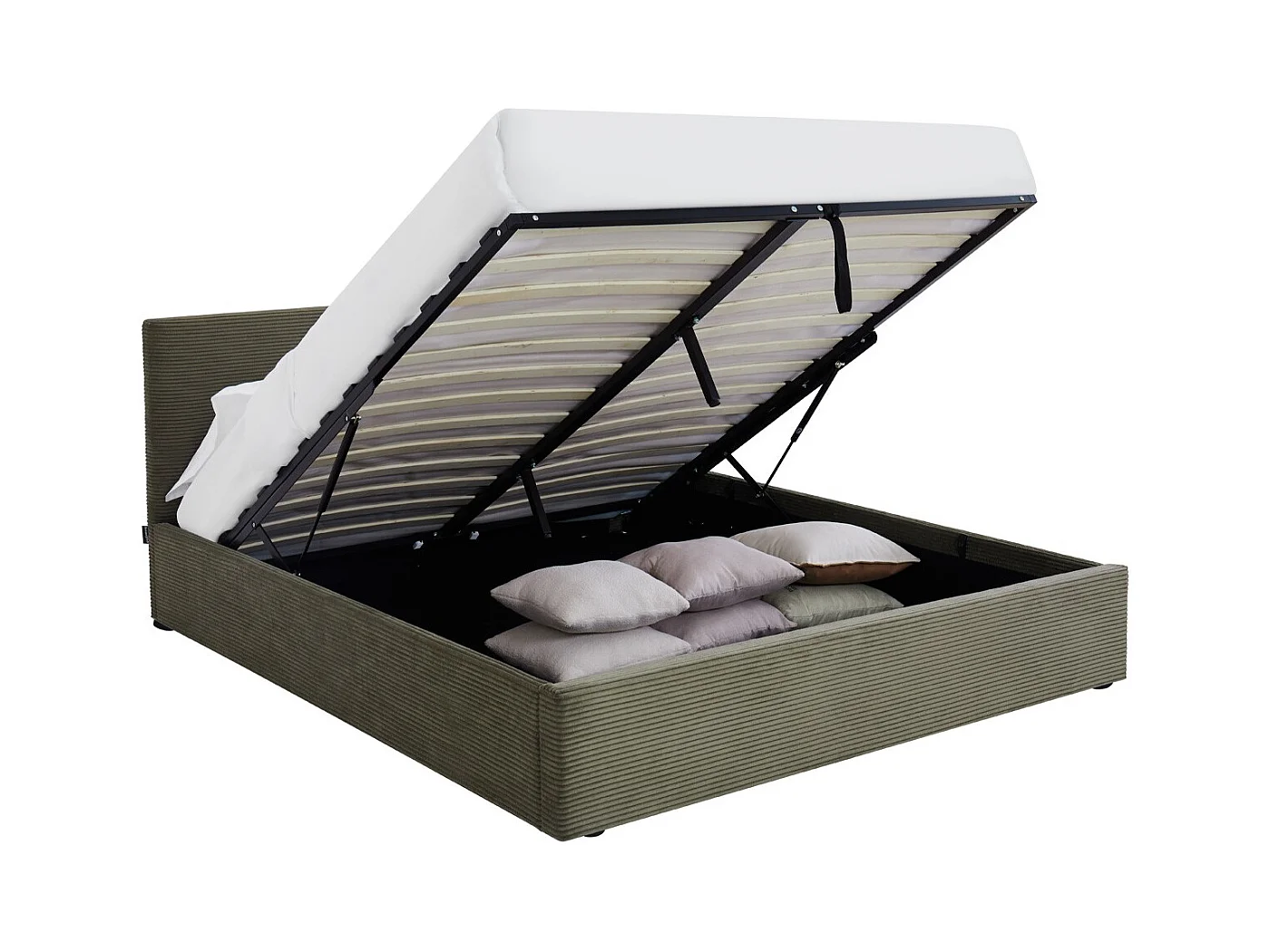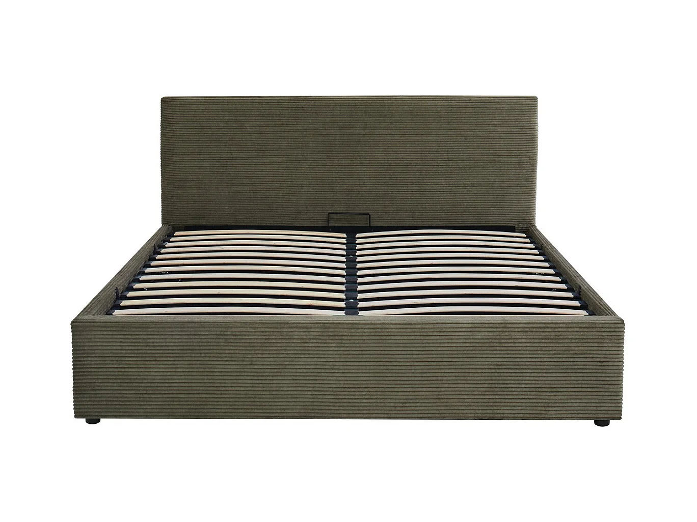 Lit coffre adulte 140x190 cm avec tête de lit matelassée en velours côtelé vert et sommier - Tina