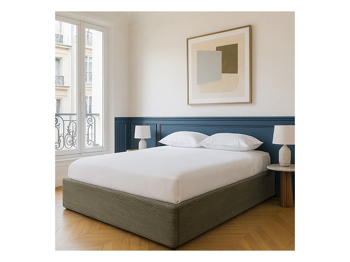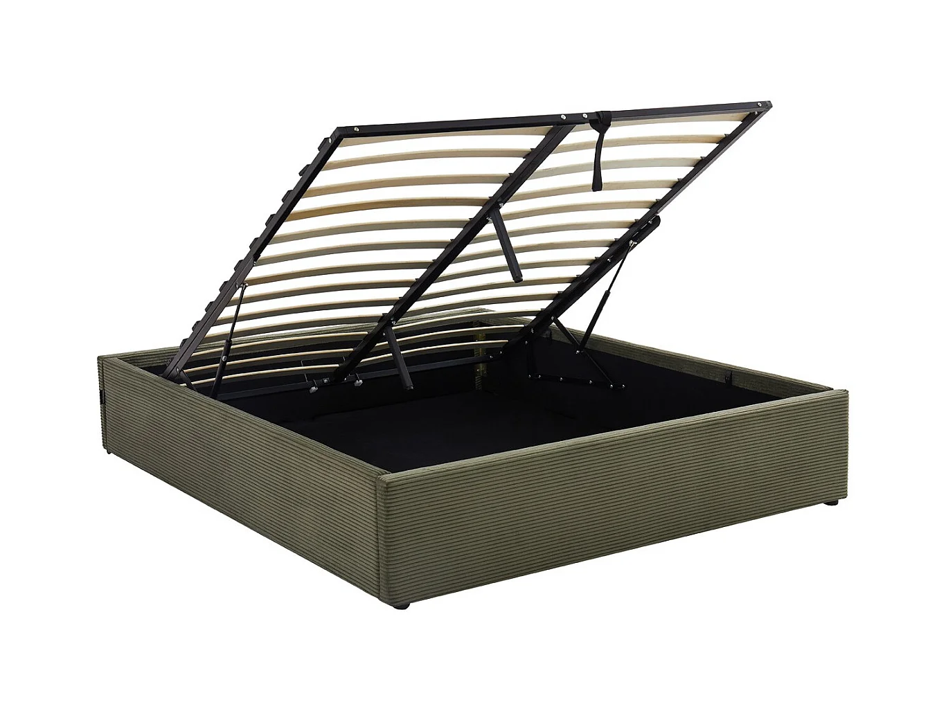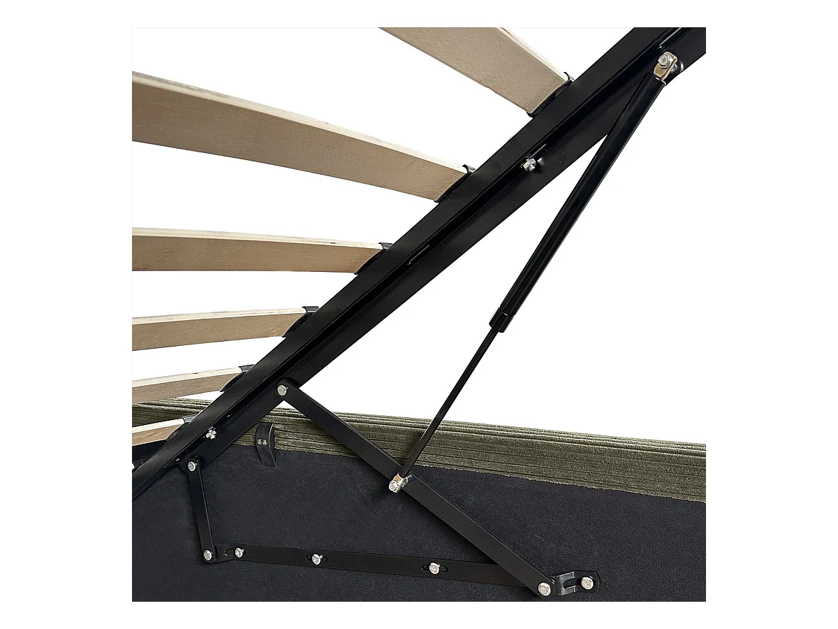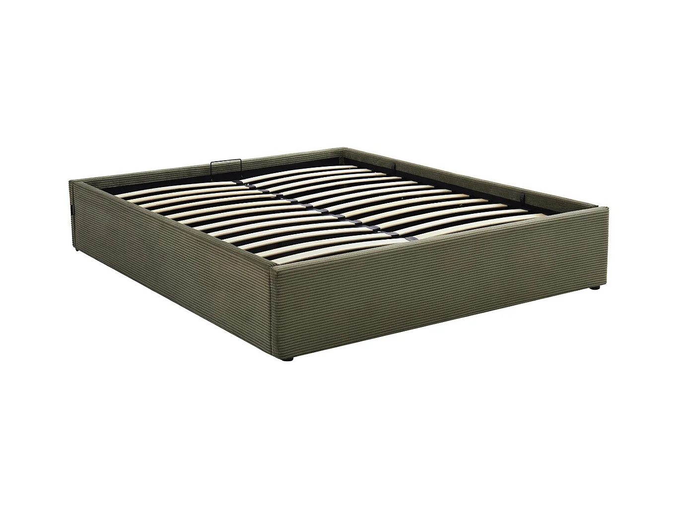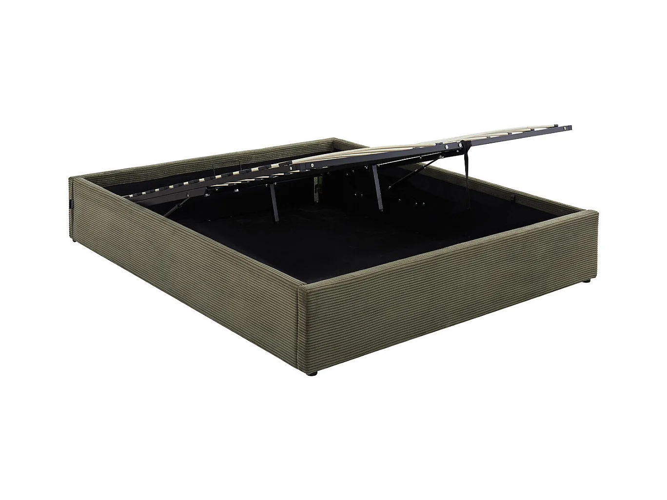 Lit coffre adulte 140x190 cm en velours côtelé vert avec sommier - Handy