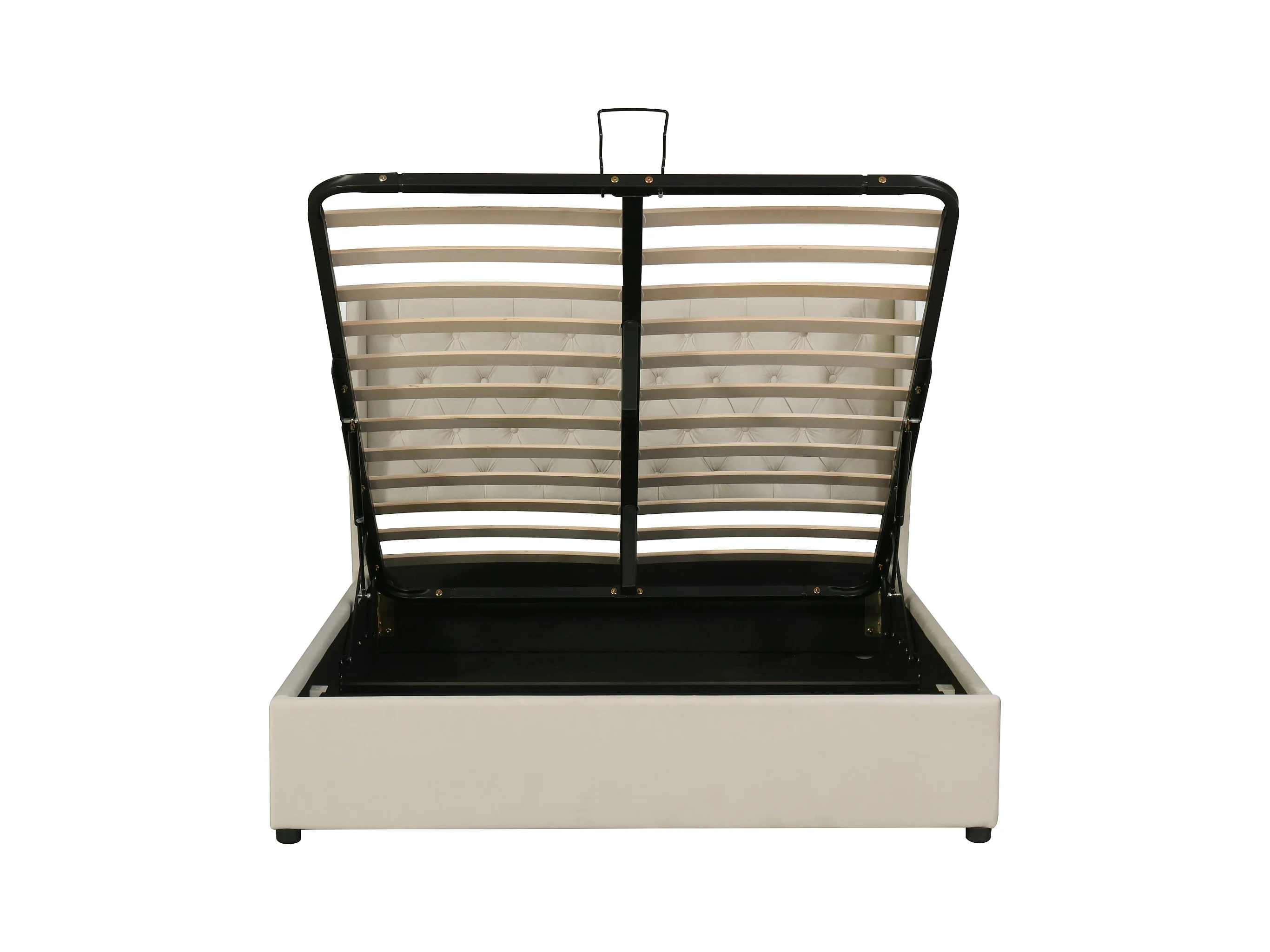 Lit coffre 140x190 cm avec sommier et tête de lit en forme d'oreillel - beige velours (sans matelas)