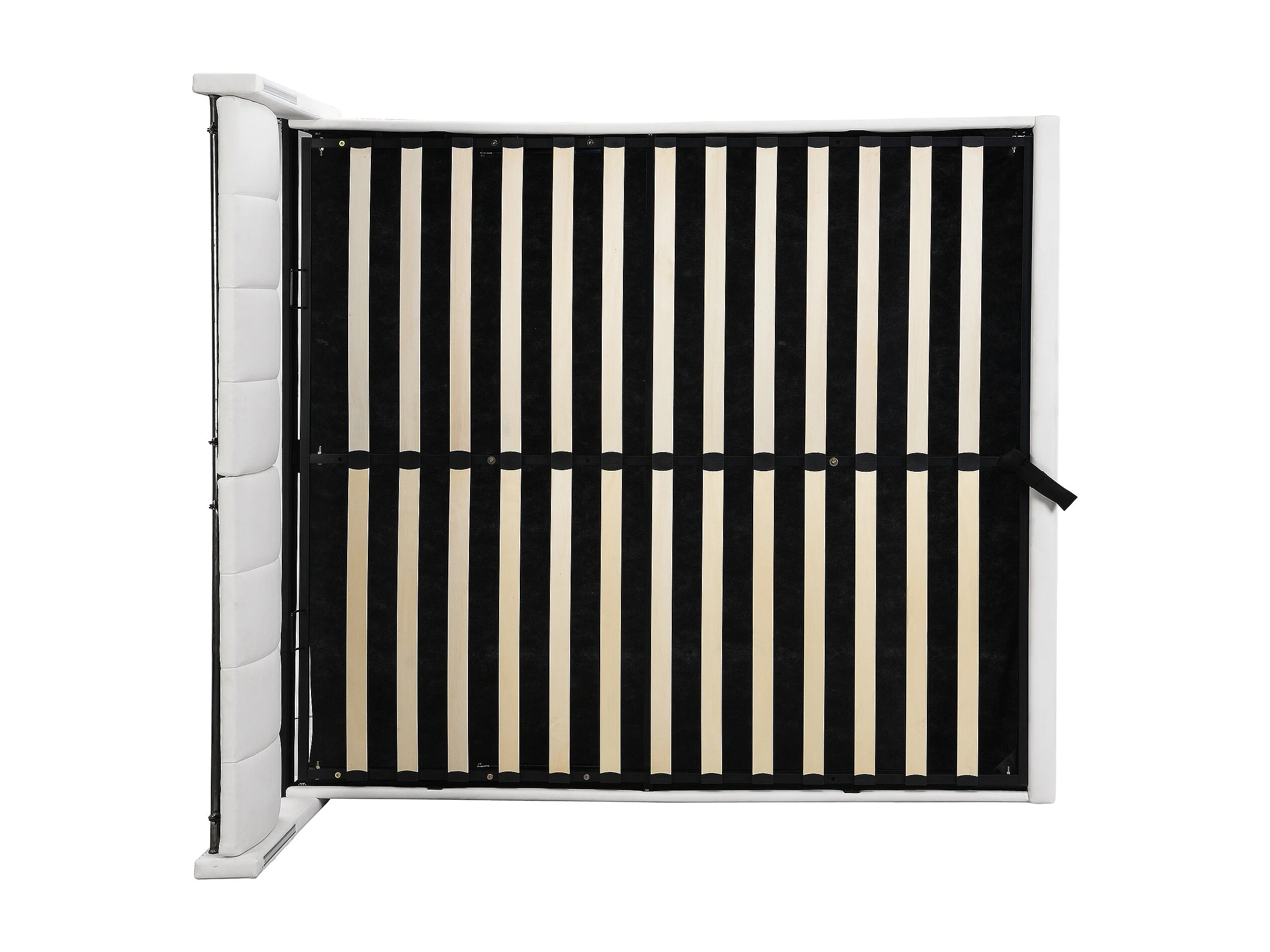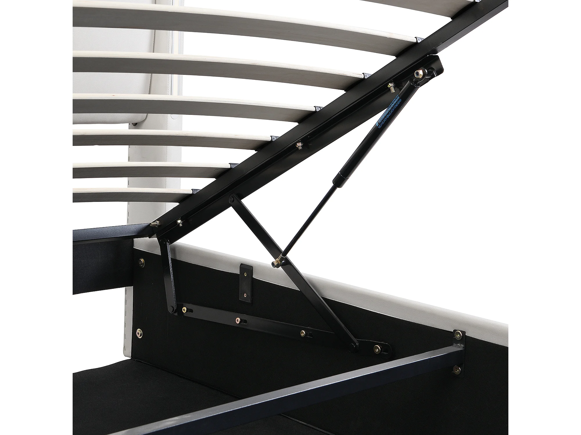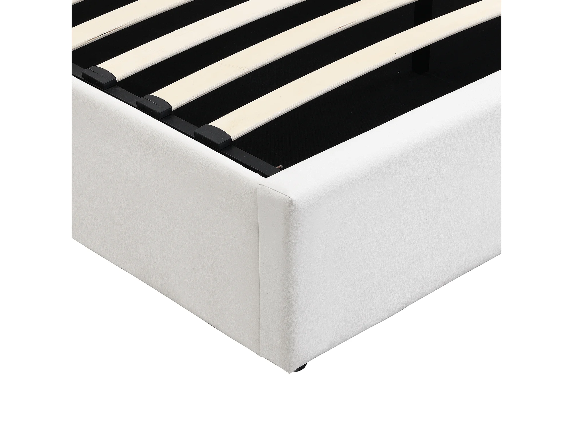 Lit coffre 140x200 cm avec sommier - tête de lit capitonnée avec LED et USB - similicuir - blanc (sans matelas)