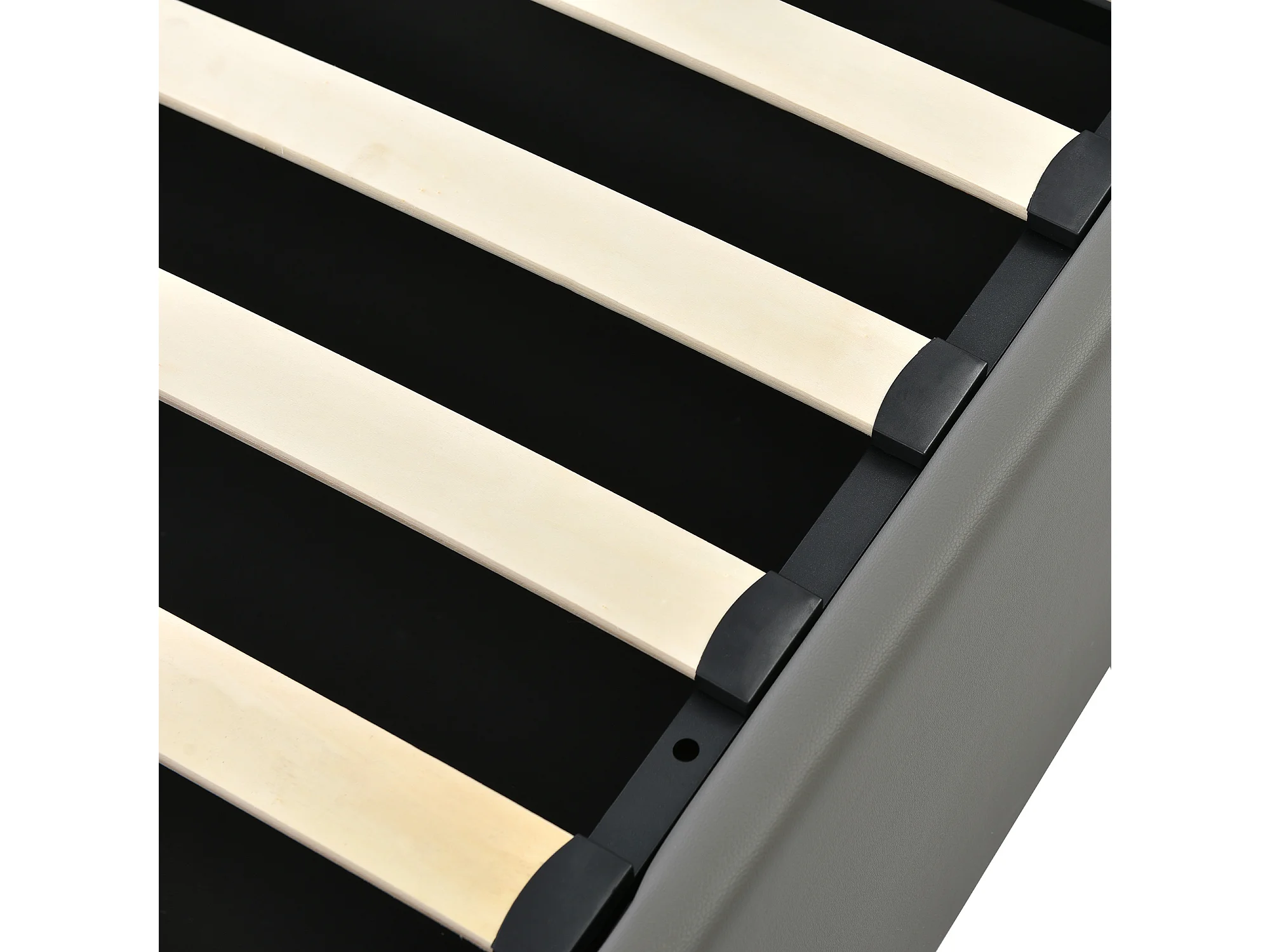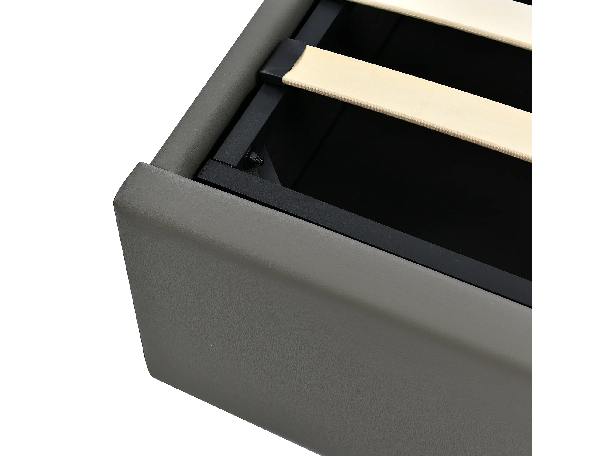 Lit coffre 140x200 cm avec sommier - tête de lit rembourrée avec LED - similicuir gris (sans matelas)