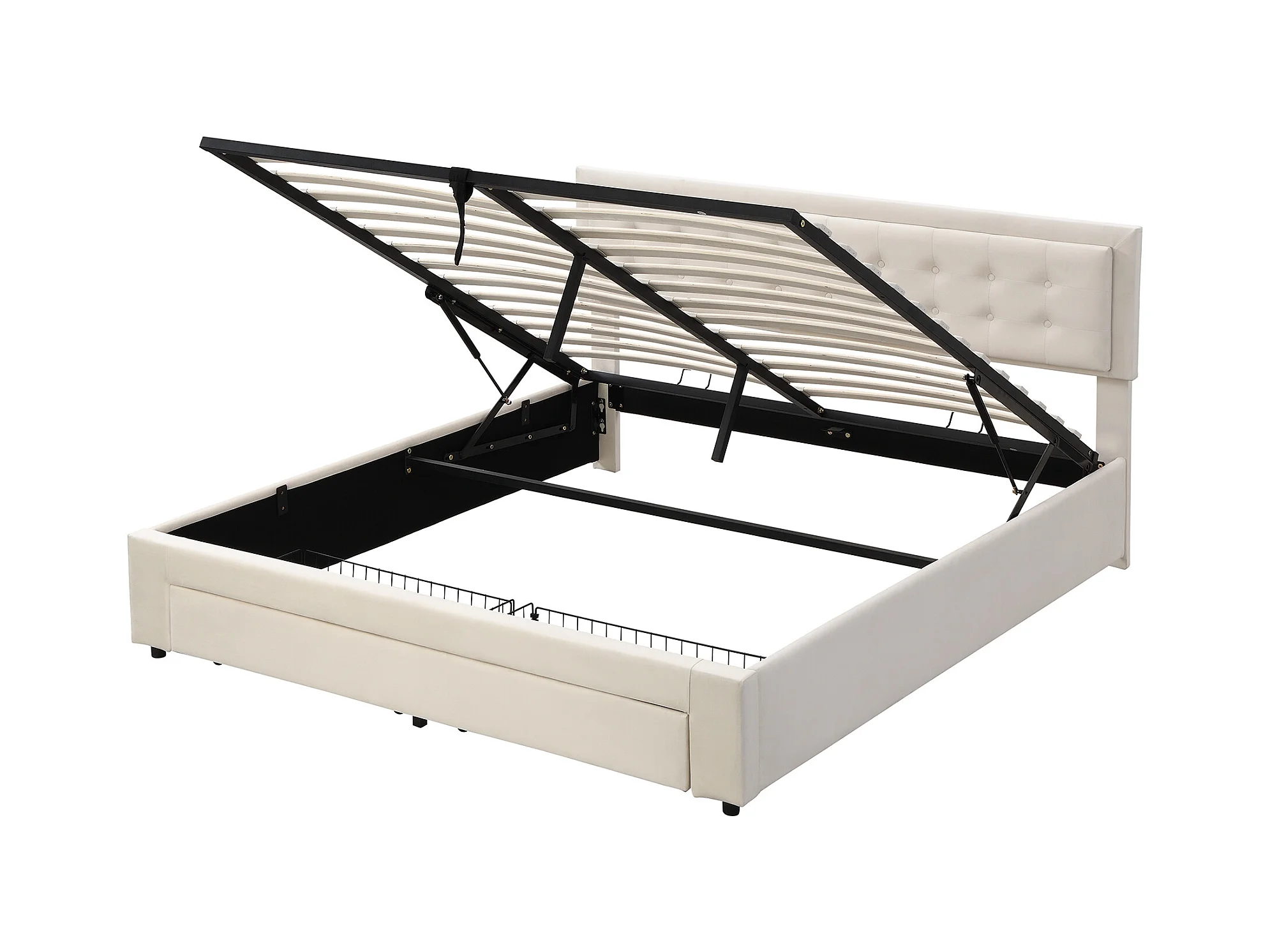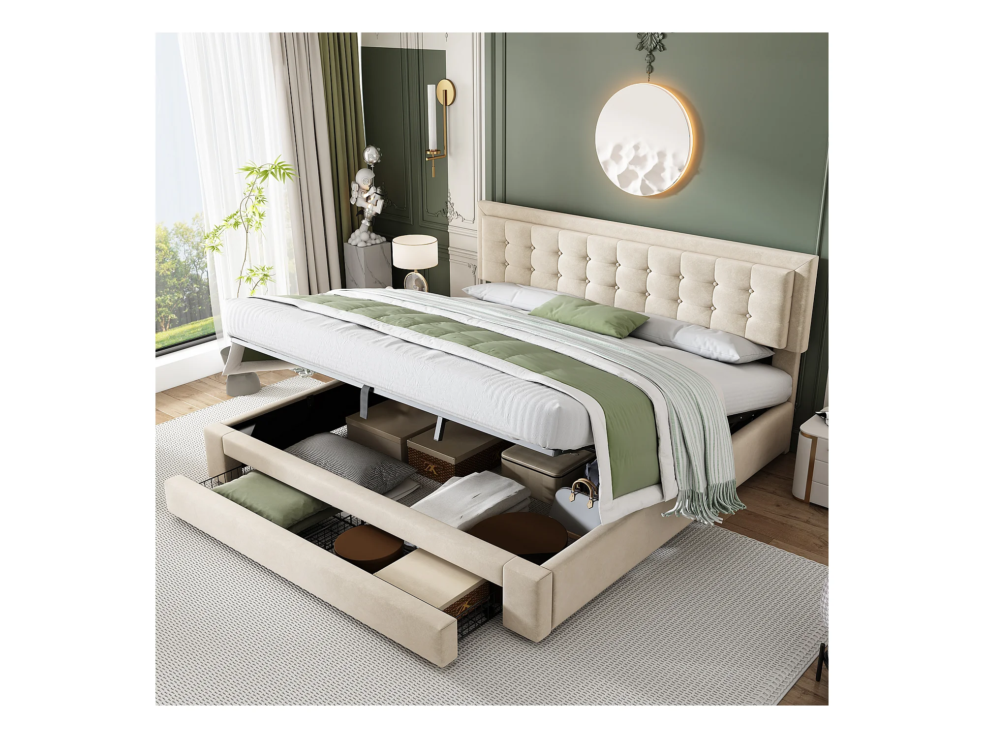 Lit coffre 160x200 cm avec sommier - 2 tiroirs et tête de lit réglable en hauteur - velours - beige (sans matelas)
