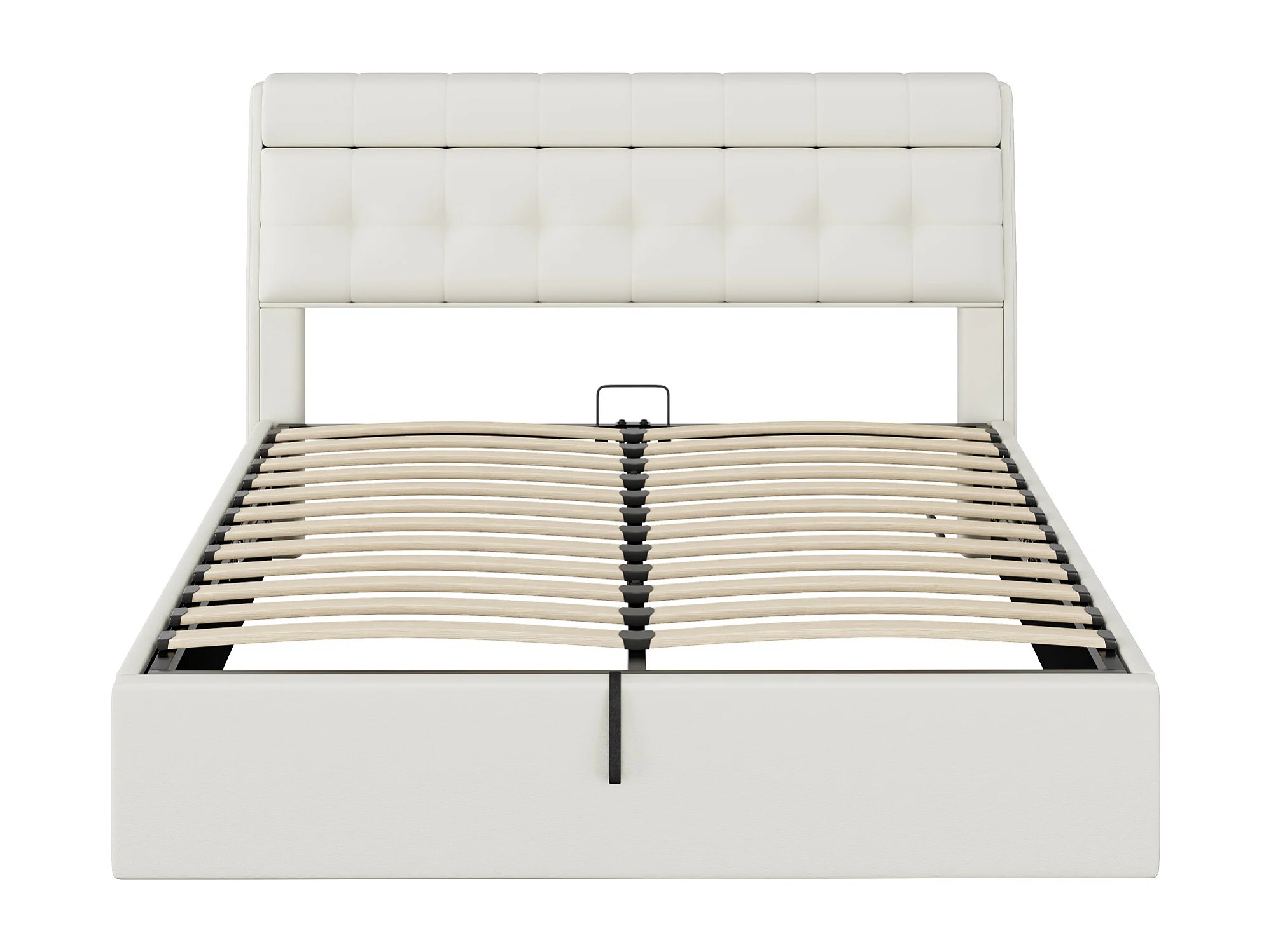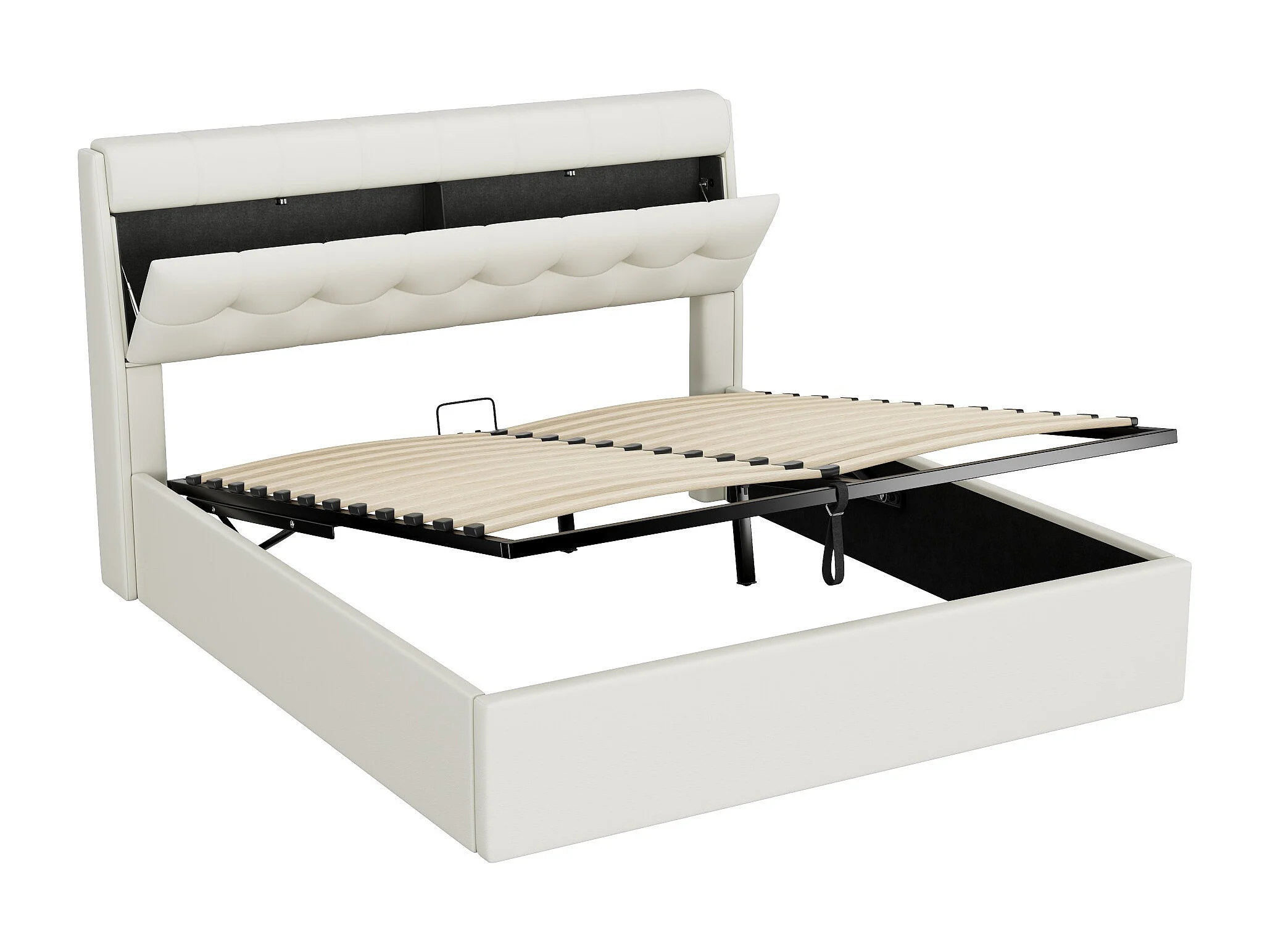 Lit coffre 160x200 cm avec sommier à lattes - tête de lit avec rangement - similicuir - blanc (sans matelas)