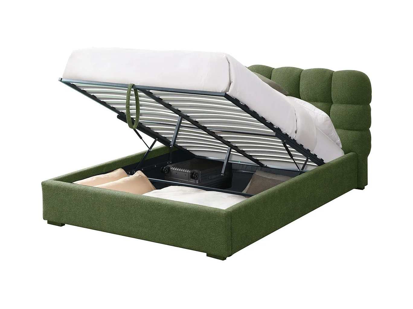 Lit coffre adulte 160x200 cm avec sommier et tête de lit capitonnée en tissu bouclé vert - Lola
