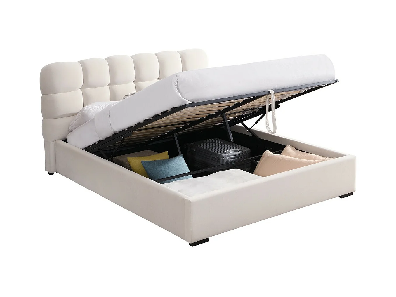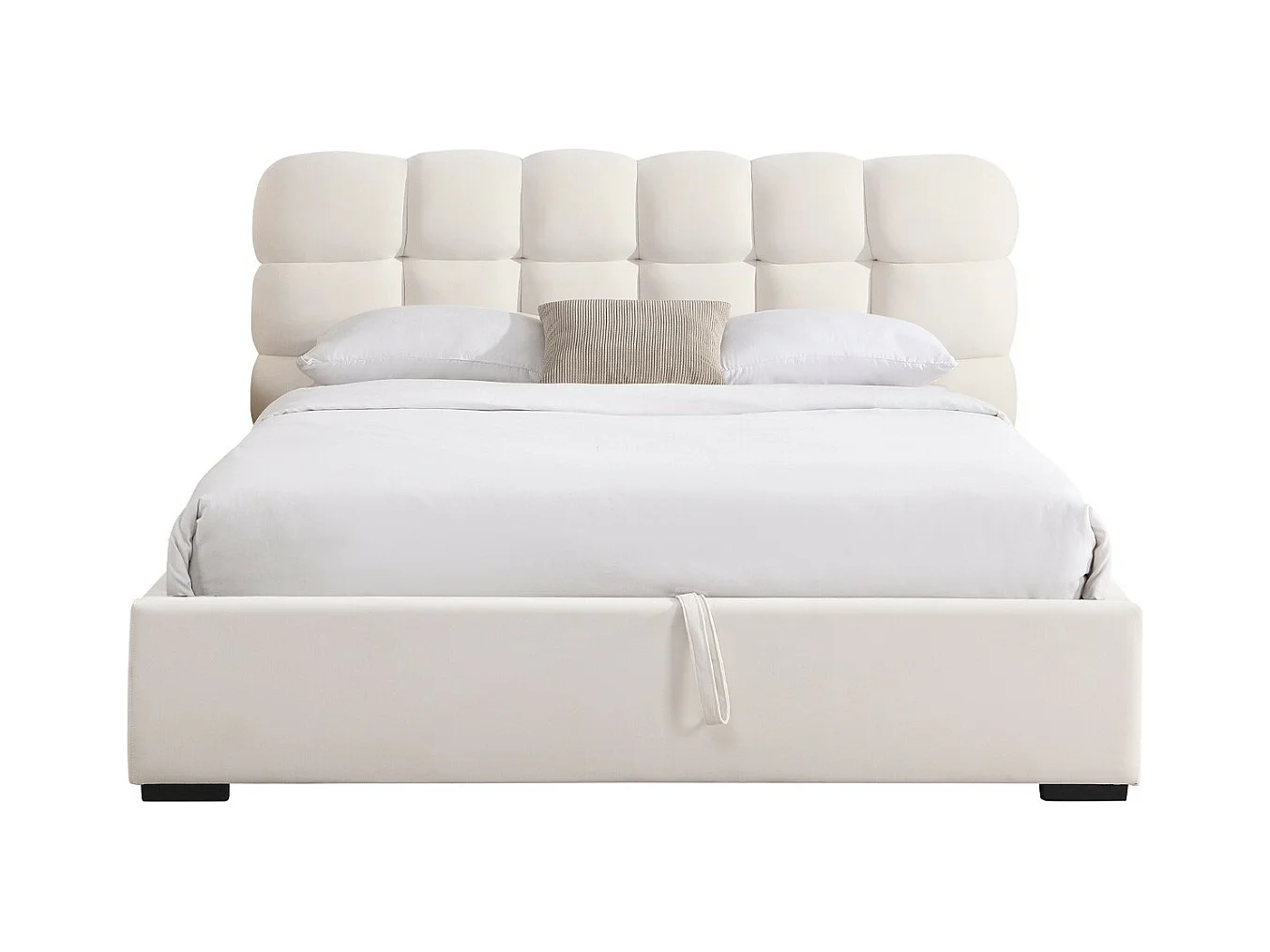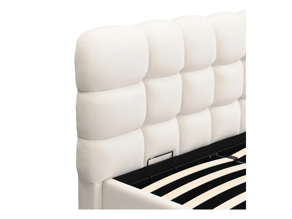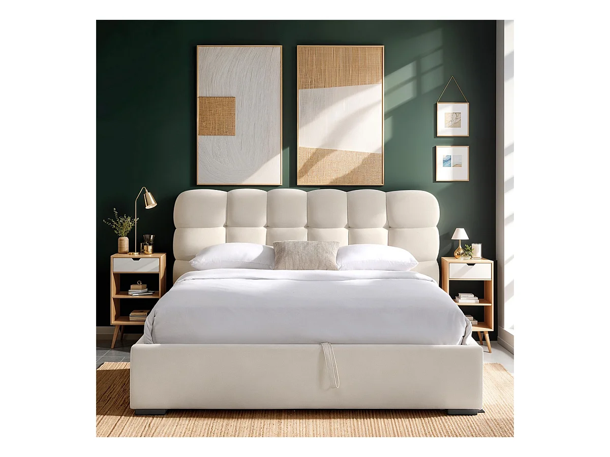 Lit coffre adulte 160x200 cm avec sommier et tête de lit capitonnée en velours beige - Lola