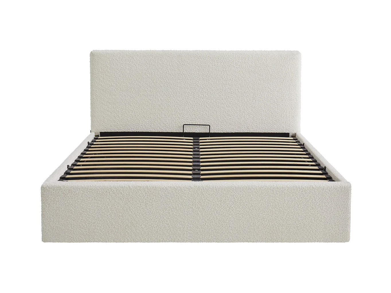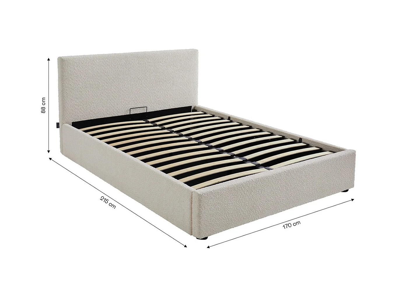Lit coffre adulte 160x200 cm avec tête de lit matelassée en tissu bouclé beige et sommier - Tina