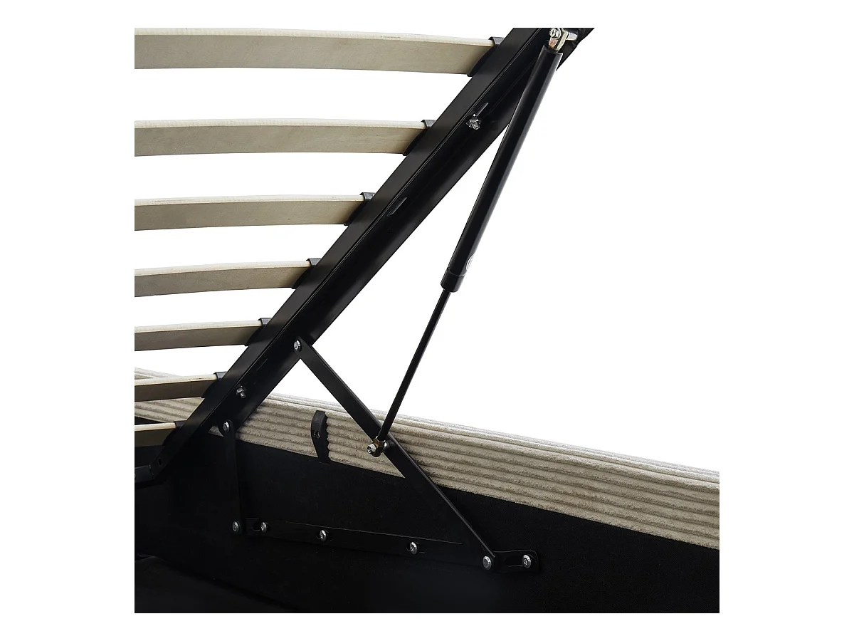 Lit coffre adulte 160x200 cm avec tête de lit matelassée en velours côtelé beige et sommier - Tina