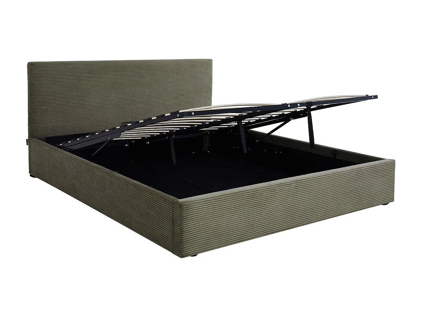 Lit coffre adulte 160x200 cm avec tête de lit matelassée en velours côtelé vert et sommier - Tina